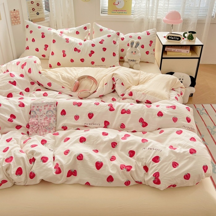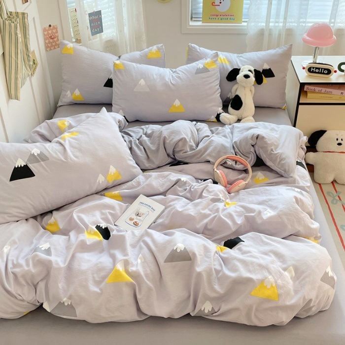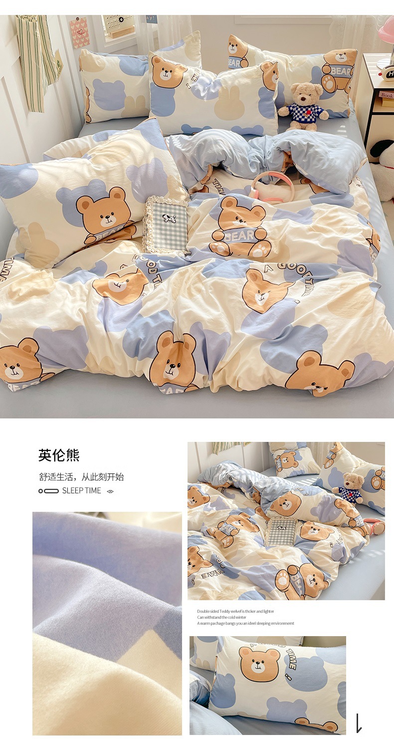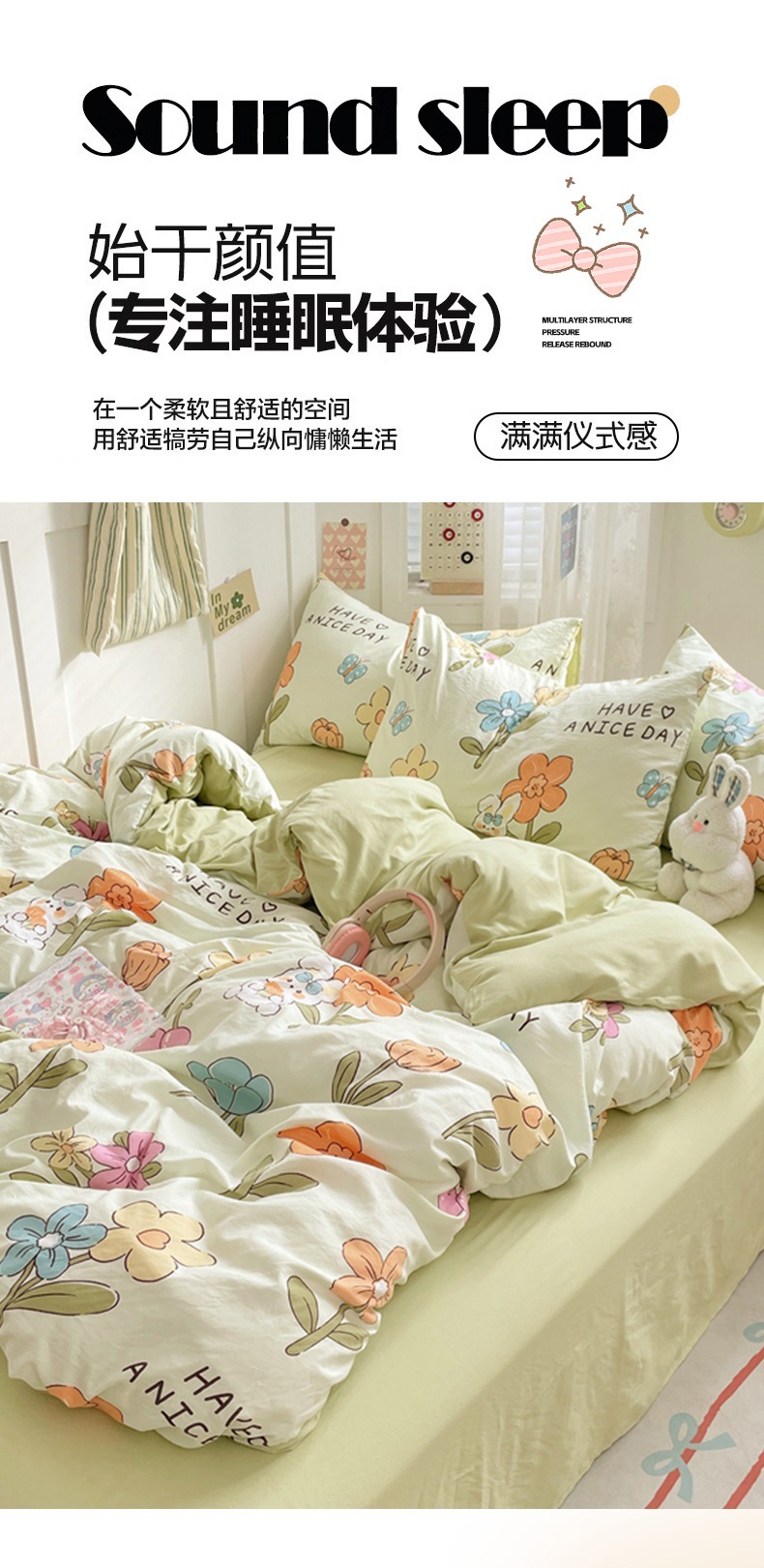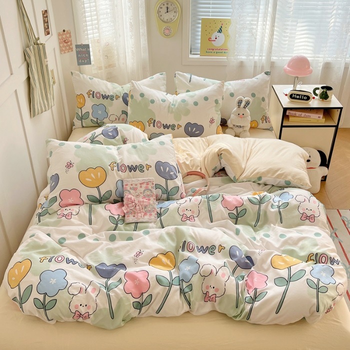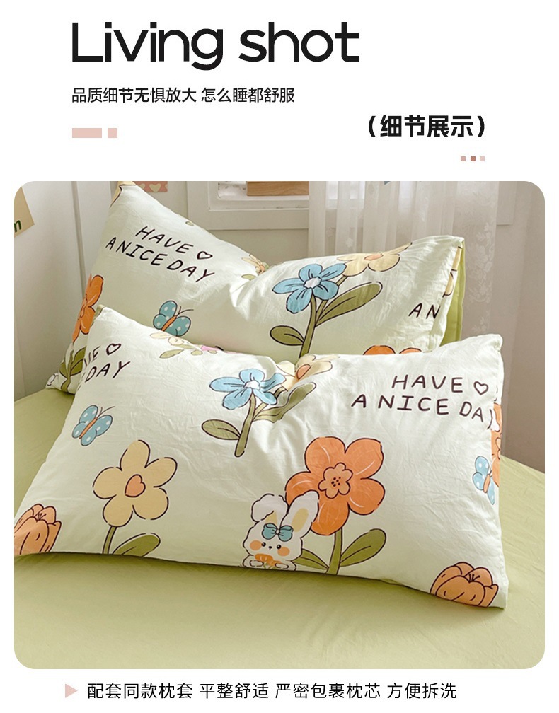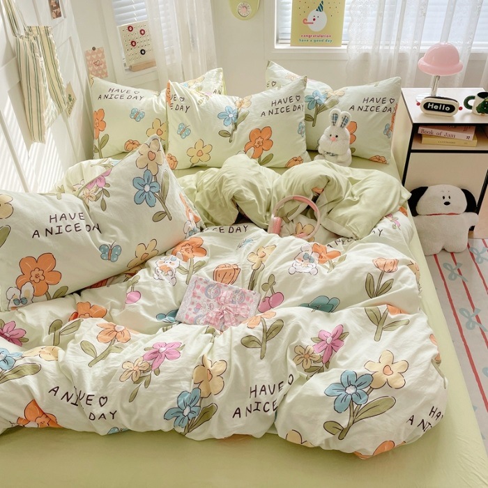 2025 봄과 여름 신선한 인쇄 만화 씻은 면화 4 피스 세트 사계절 유니버설 침구