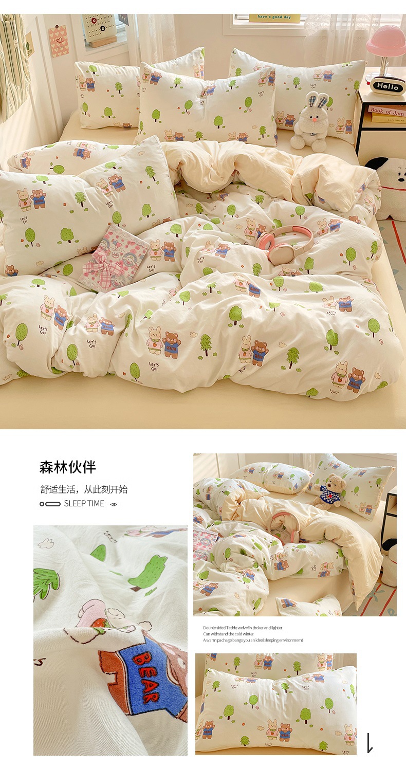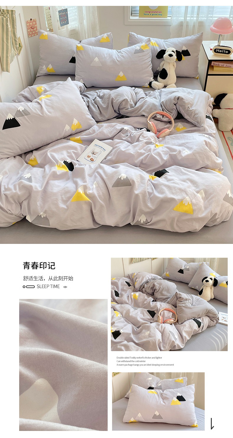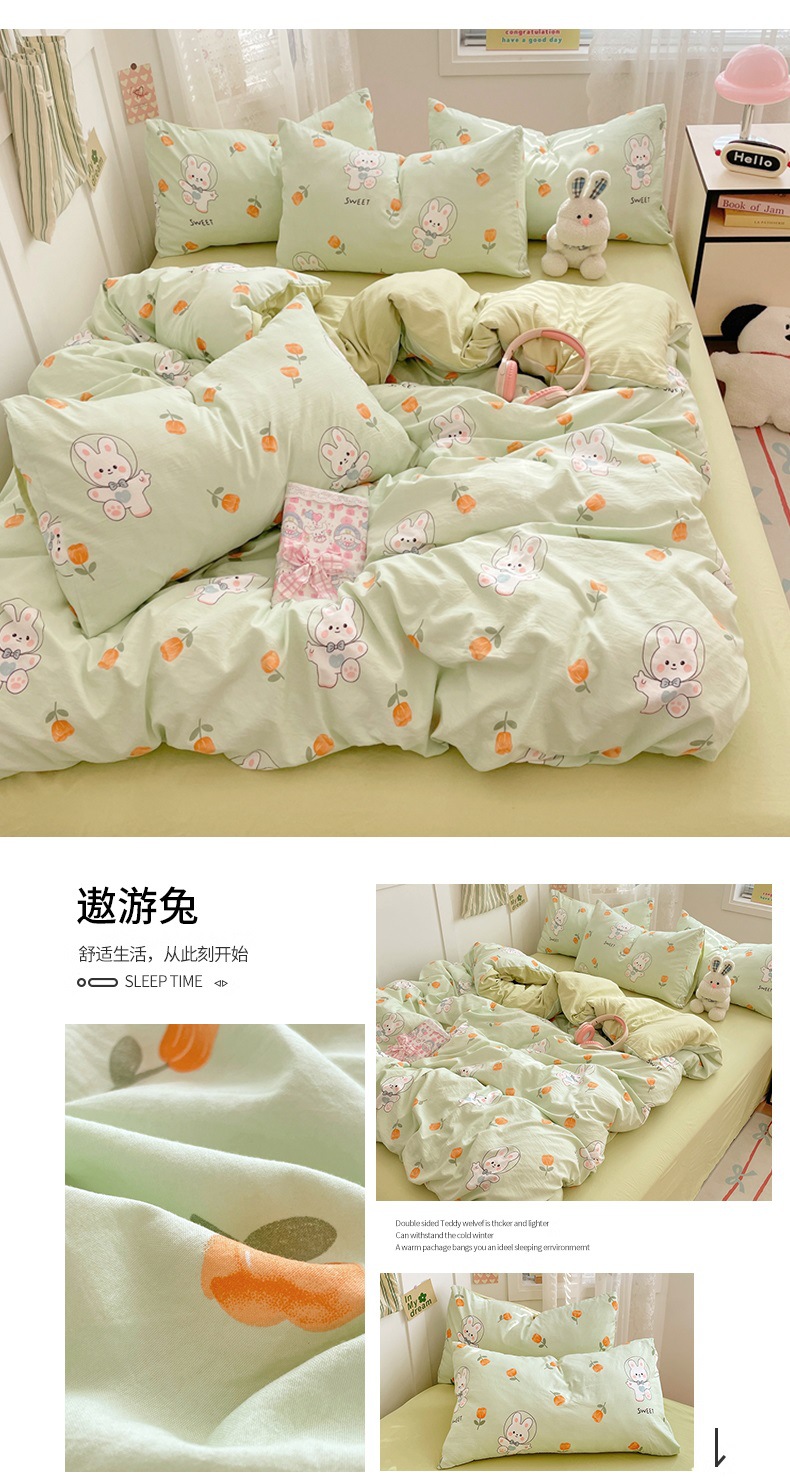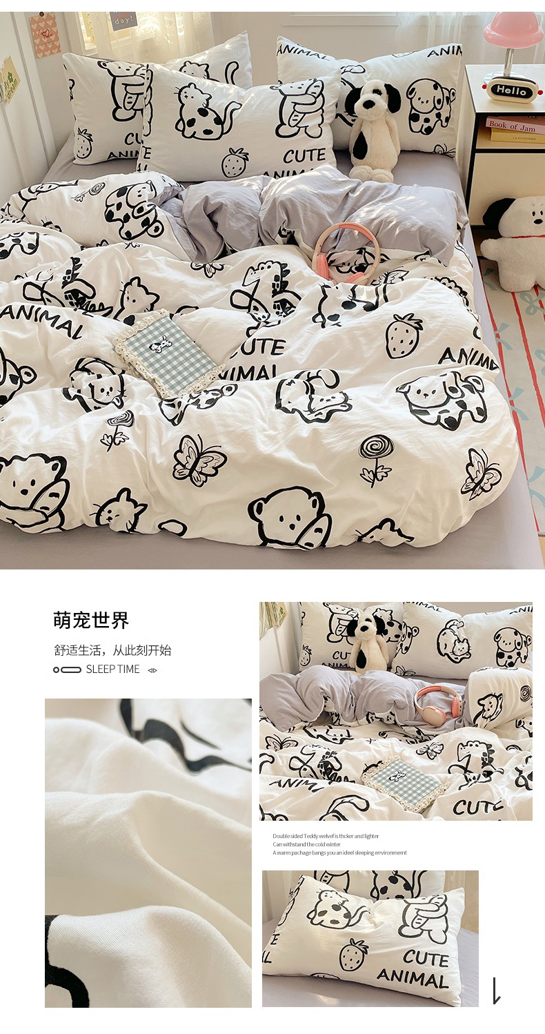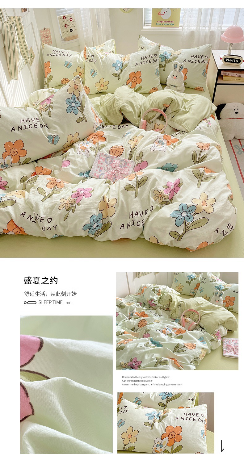 2025 봄과 여름 신선한 인쇄 만화 씻은 면화 4 피스 세트 사계절 유니버설 침구