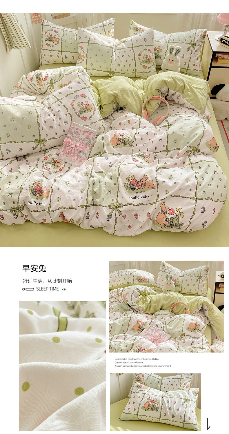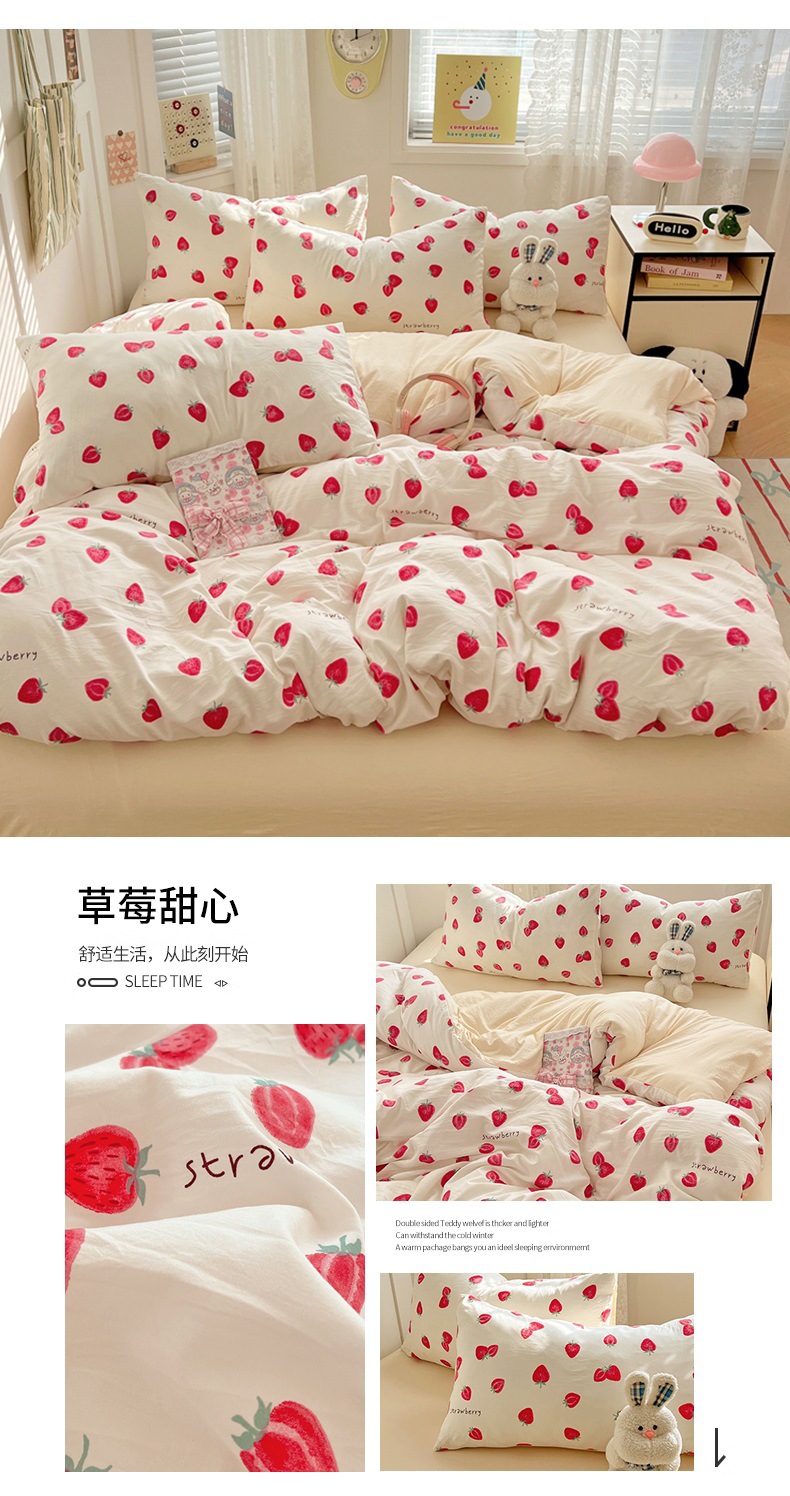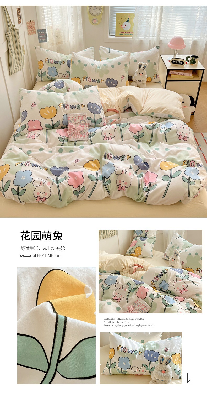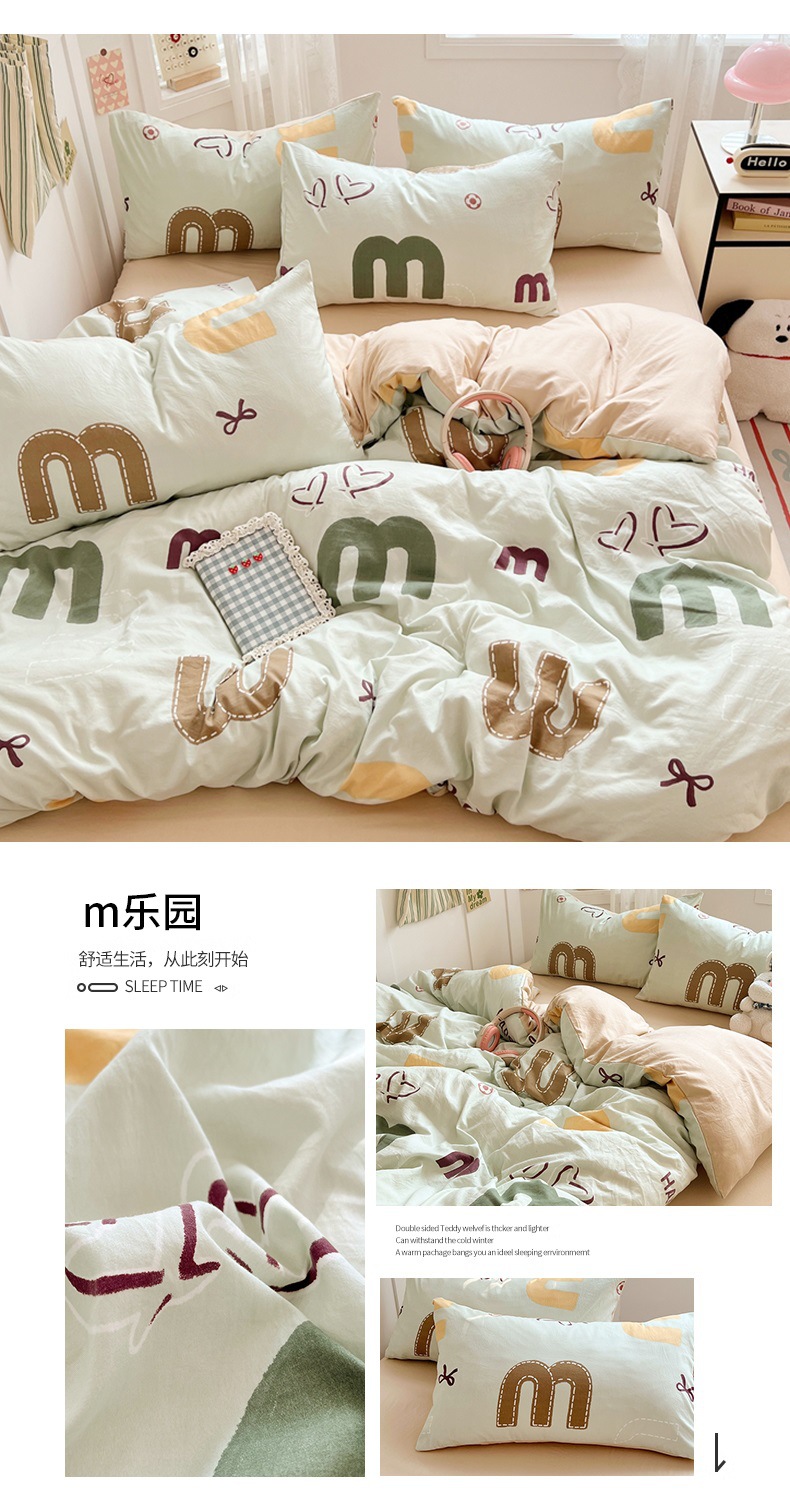 2025 봄과 여름 신선한 인쇄 만화 씻은 면화 4 피스 세트 사계절 유니버설 침구