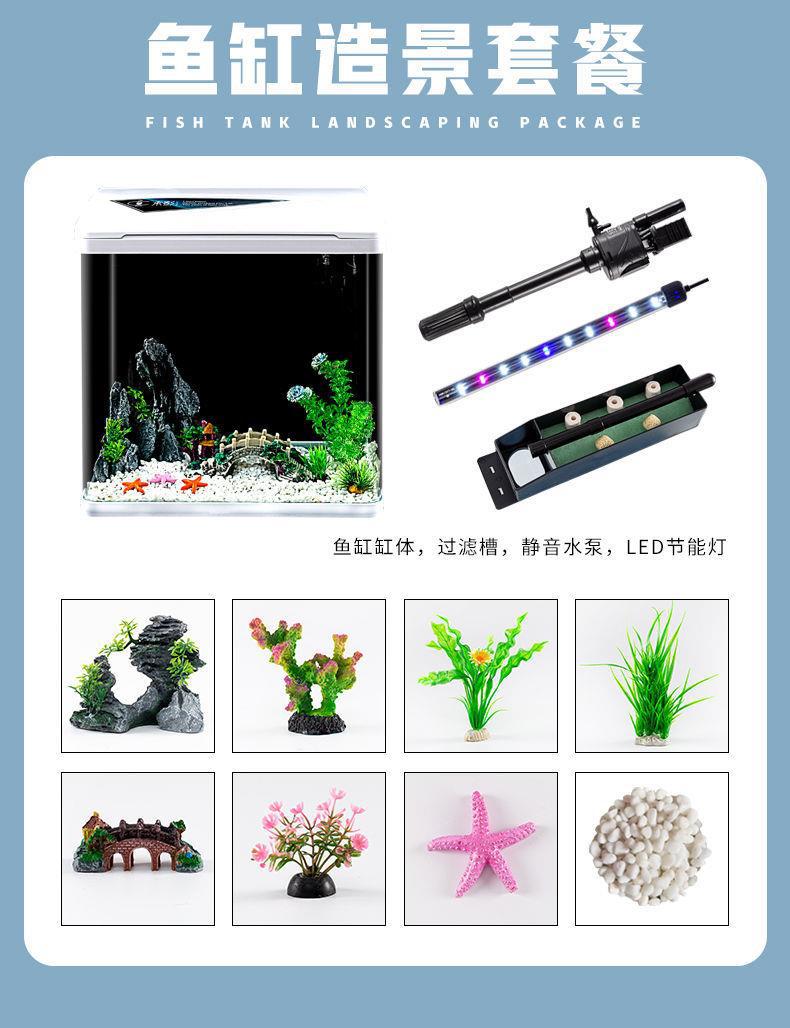 거실 작은 유리 금붕어 탱크 가정용 물없는 조경 음소거 에어로빅 데스크탑 물고기 탱크 사무실 수족관