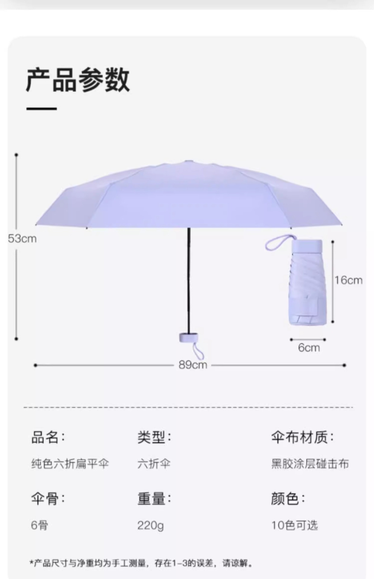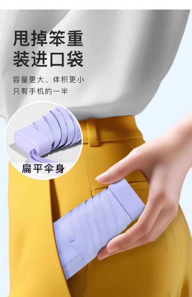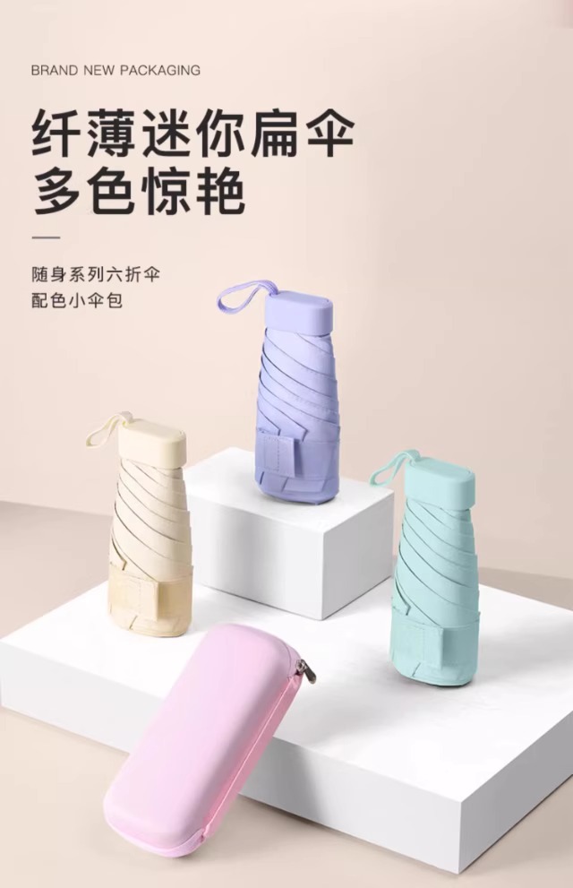태양 우산, 자외선 차단, 자외선 차단, 비 또는 빛 우산, 여성용 비닐, 소형, 휴대용, 접이식 및 견고한 캡슐