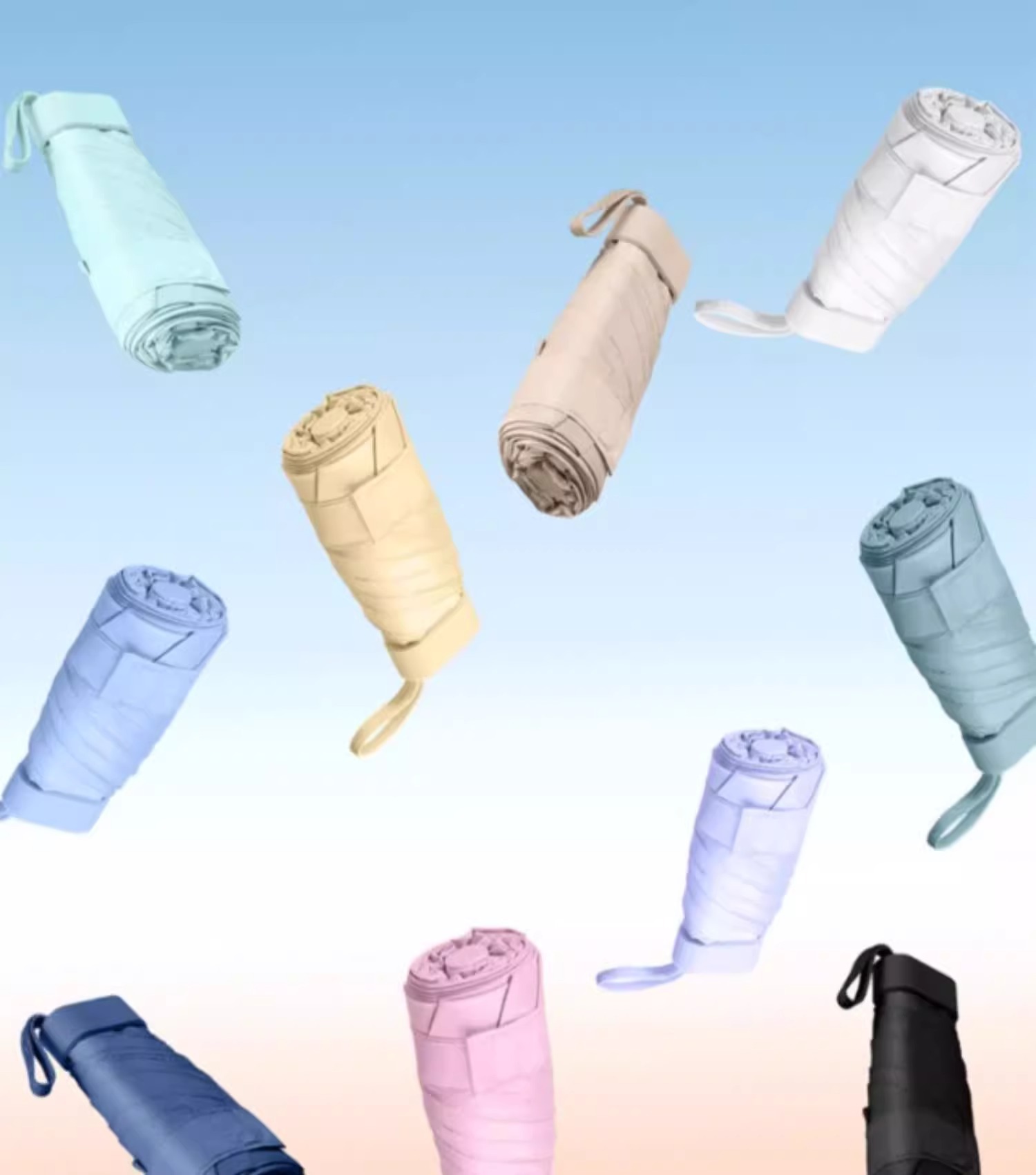 태양 우산, 자외선 차단, 자외선 차단, 비 또는 빛 우산, 여성용 비닐, 소형, 휴대용, 접이식 및 견고한 캡슐스토어 가기