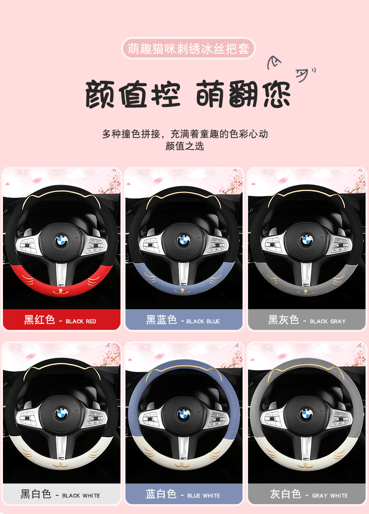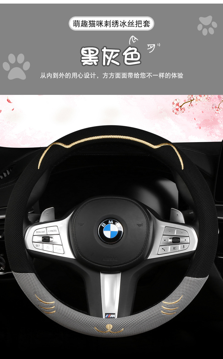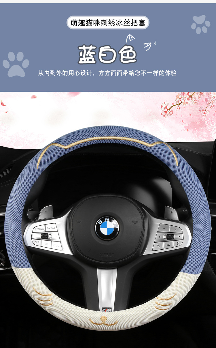 여름 핸들 커버, 아이스 실크 통기성 자동차 핸들 커버, 올 시즌 보편적, 미끄럼 방지, 땀 흡수, 귀여운 범용 핸들 커버, 도매스토어 가기