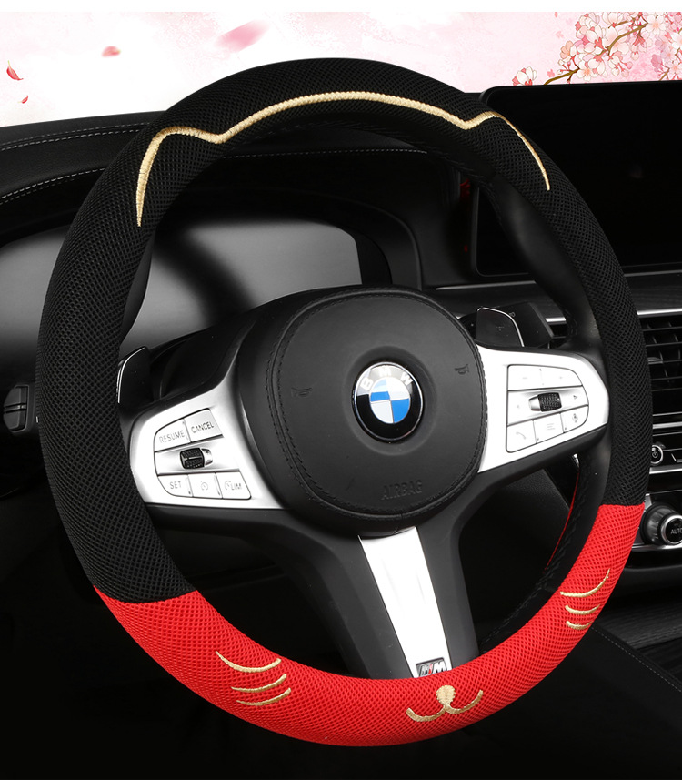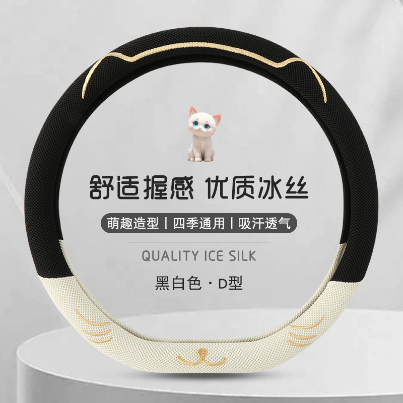 여름 핸들 커버, 아이스 실크 통기성 자동차 핸들 커버, 올 시즌 보편적, 미끄럼 방지, 땀 흡수, 귀여운 범용 핸들 커버, 도매