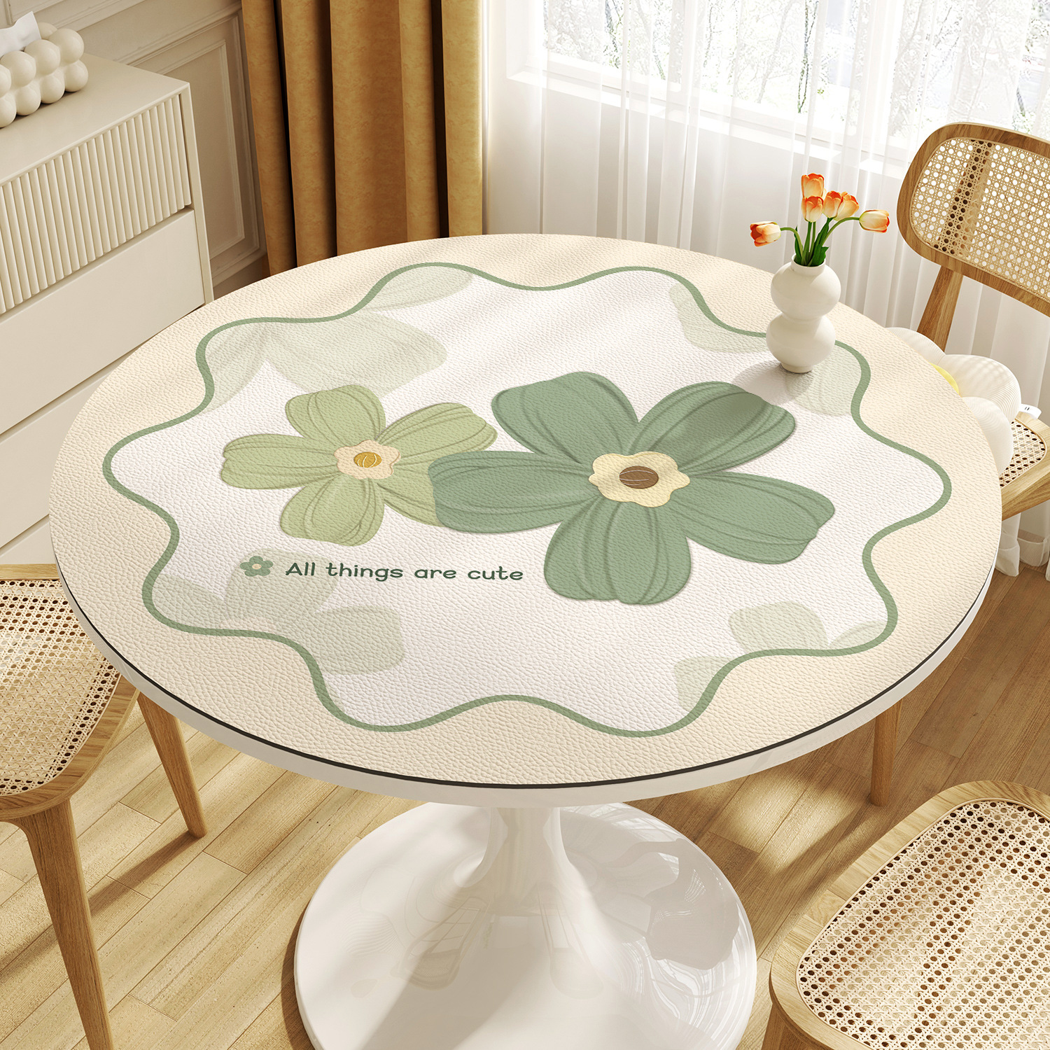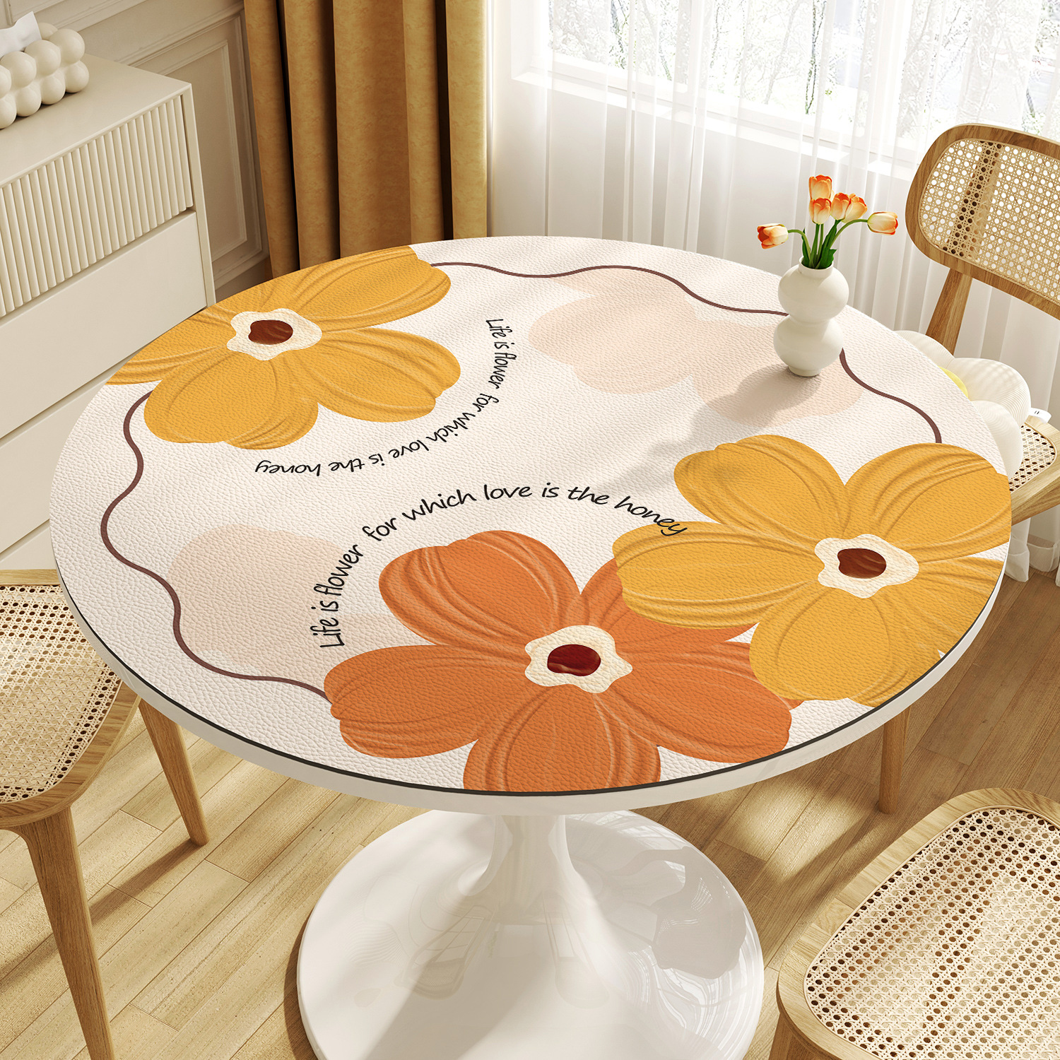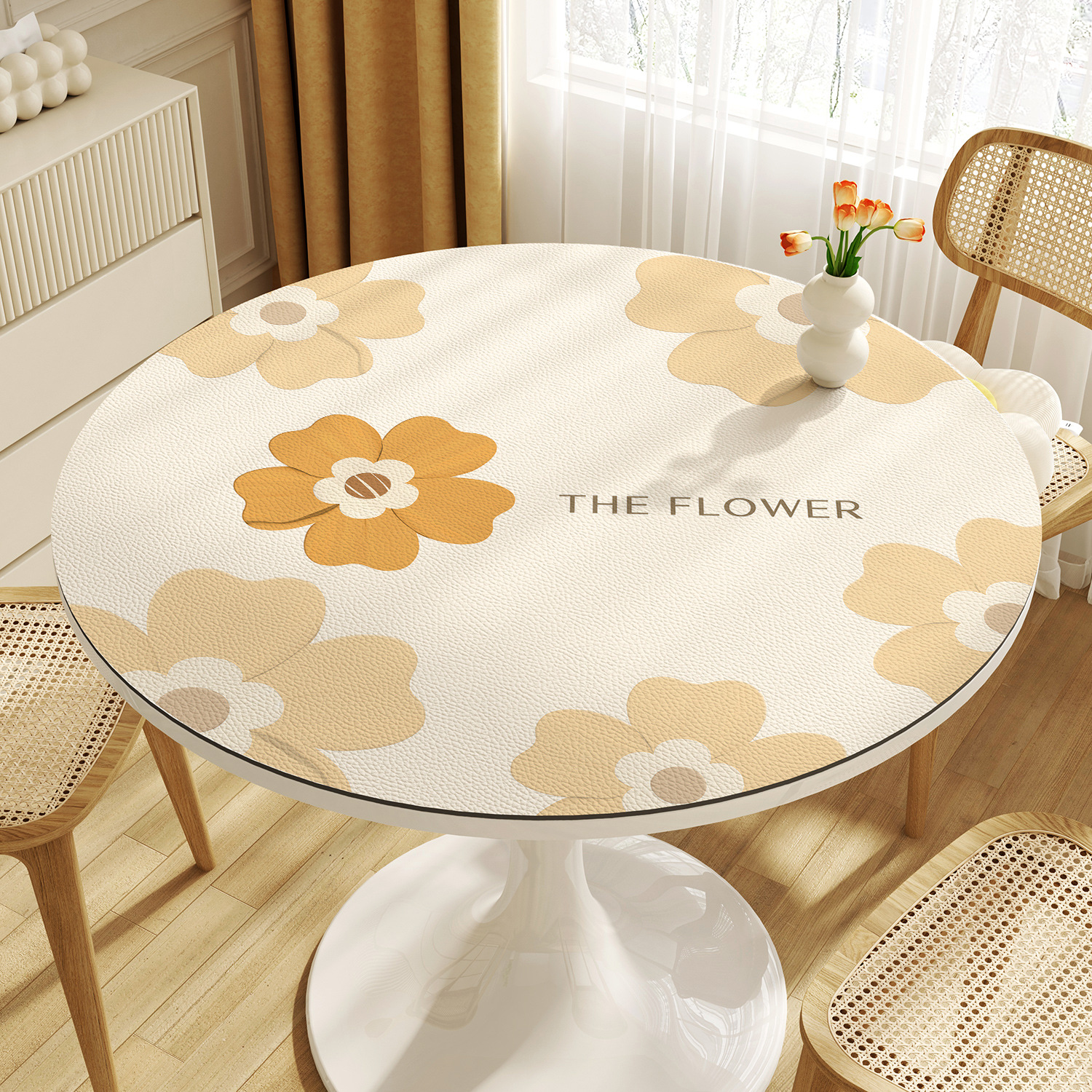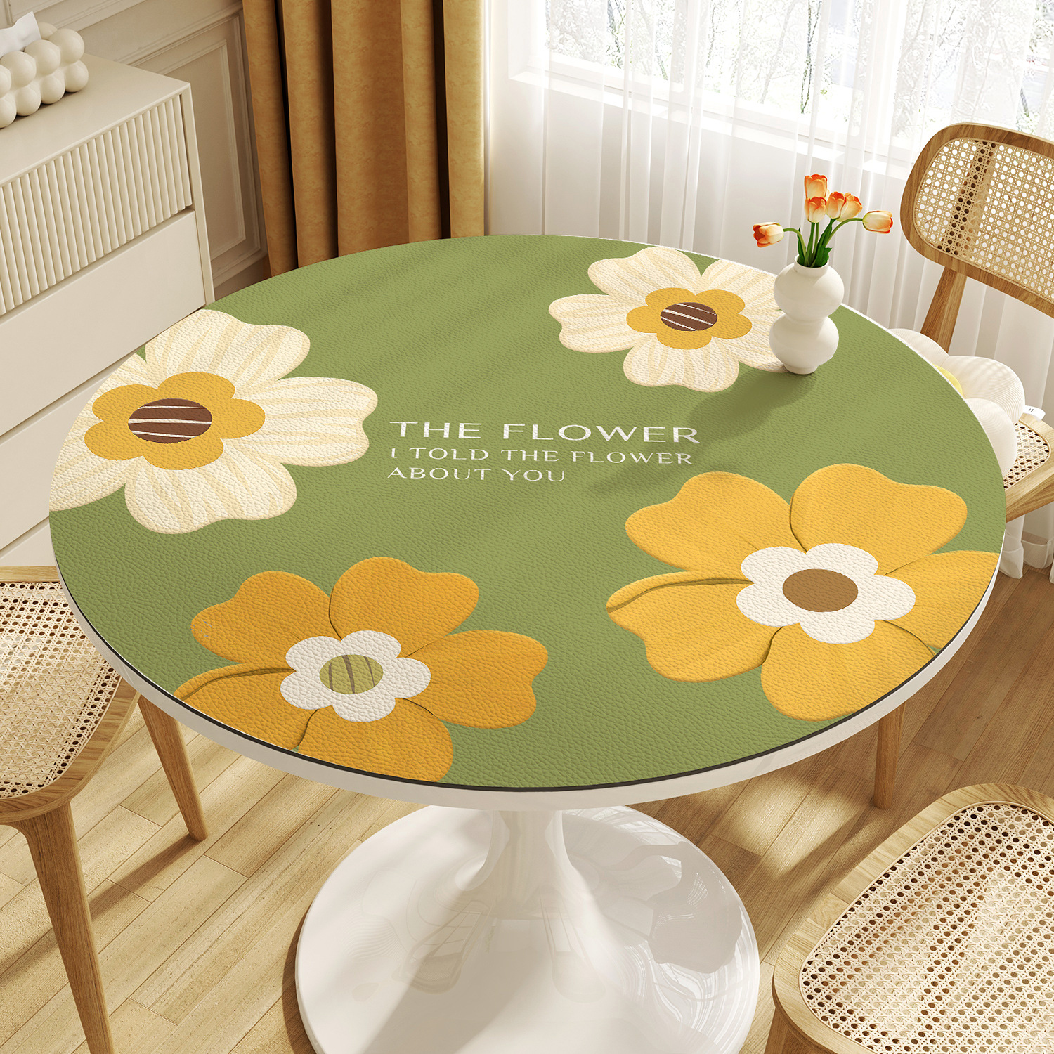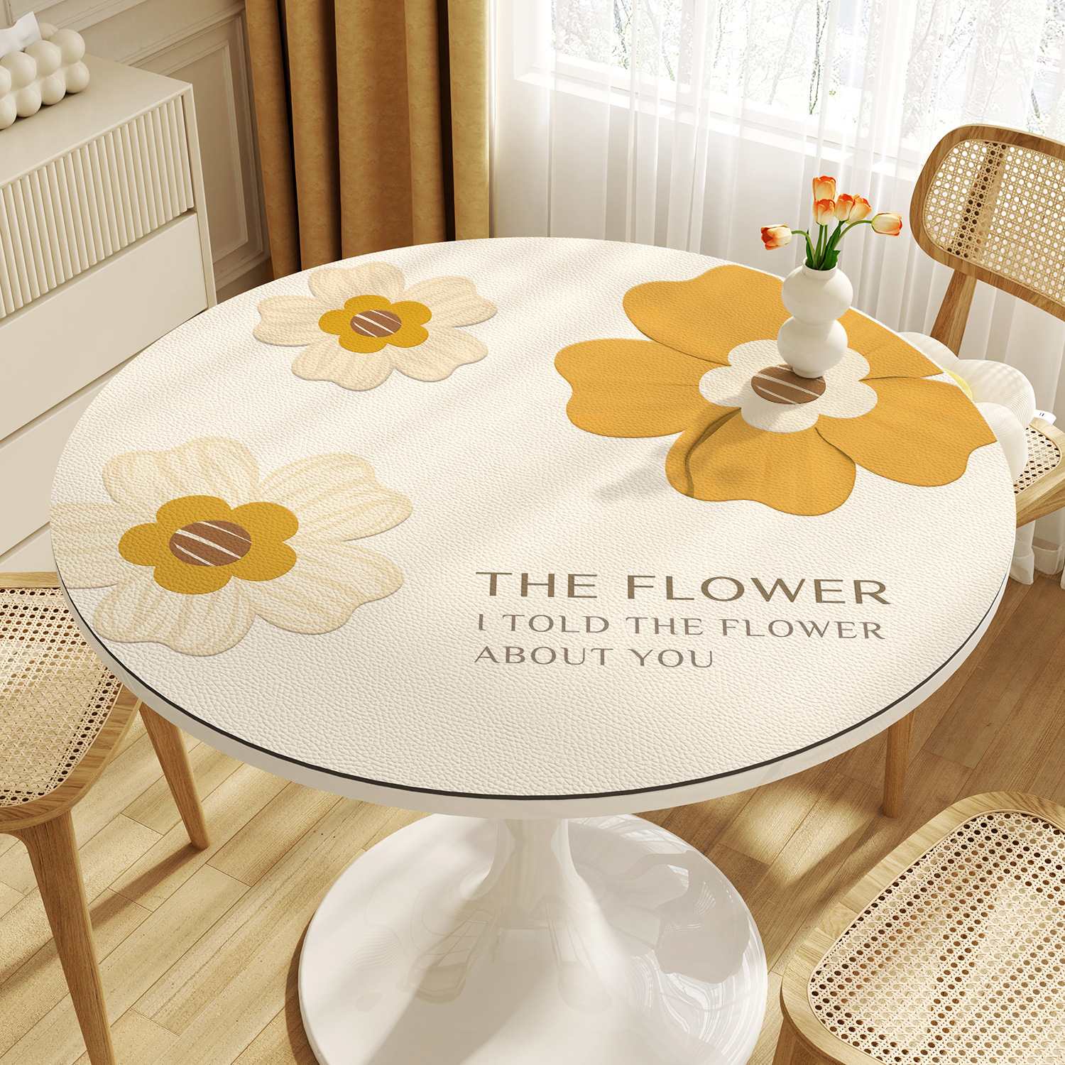 꽃 라운드 테이블 천 방수 오일 방지 세척 방지 가벼운 고급 고급 가정용 라운드 작은 커피 테이블 식탁 매트스토어 가기
