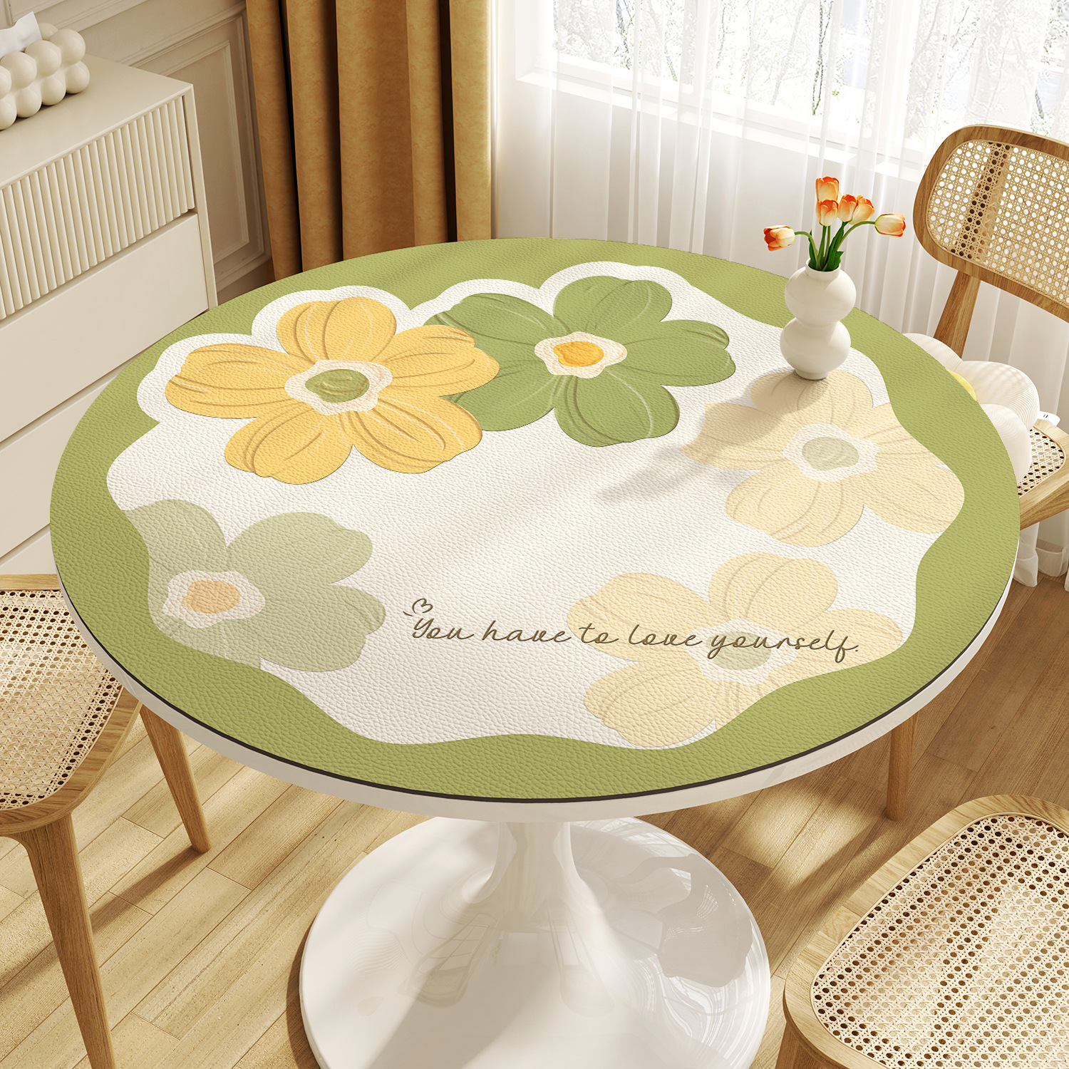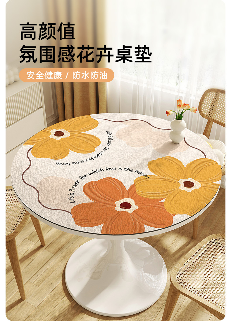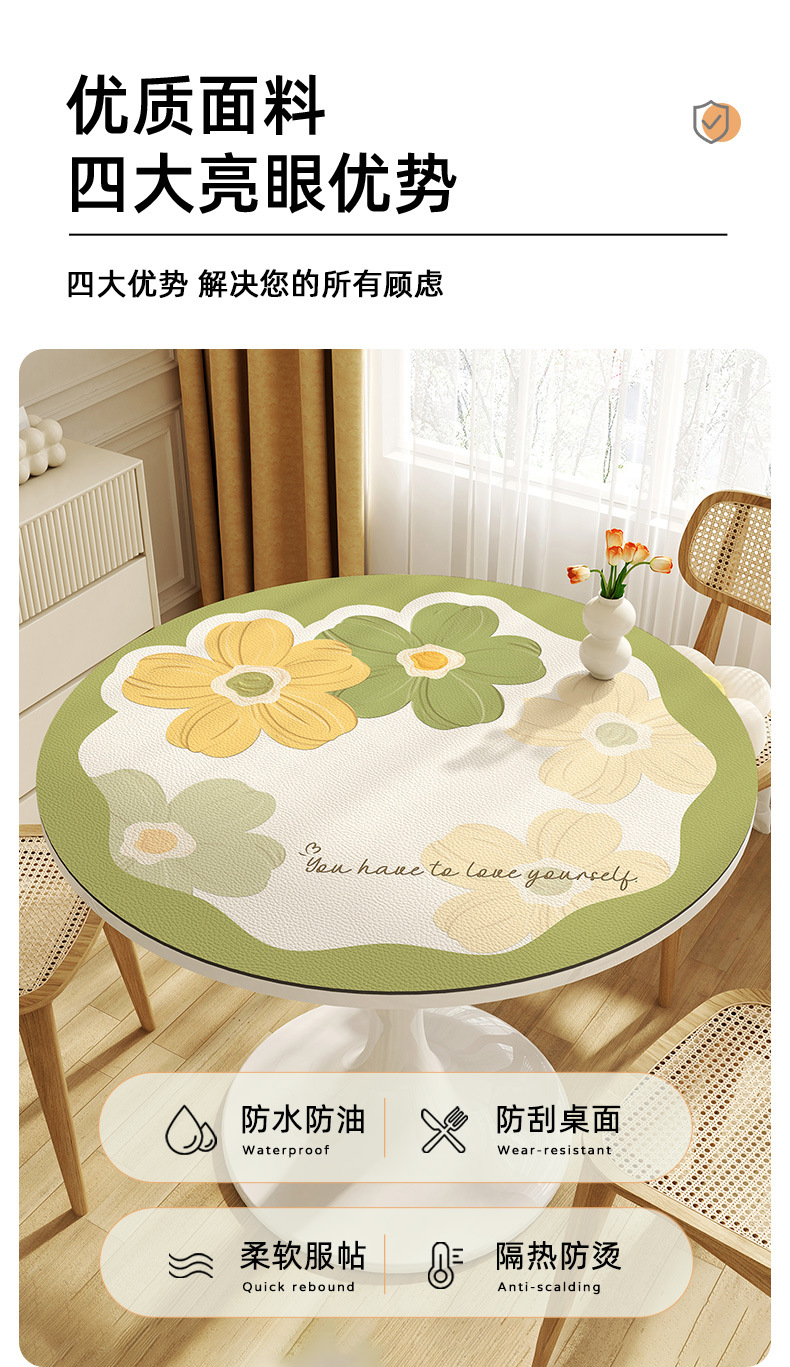 꽃 라운드 테이블 천 방수 오일 방지 세척 방지 가벼운 고급 고급 가정용 라운드 작은 커피 테이블 식탁 매트