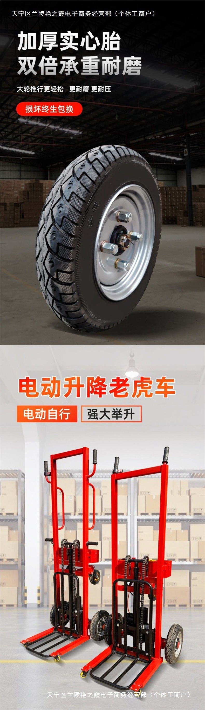 트럭 지게차를 가진 전기 호랑이 차 손 푸시 적재 및 하역 트럭 유압 리프팅 트럭 소형 트럭스토어 가기