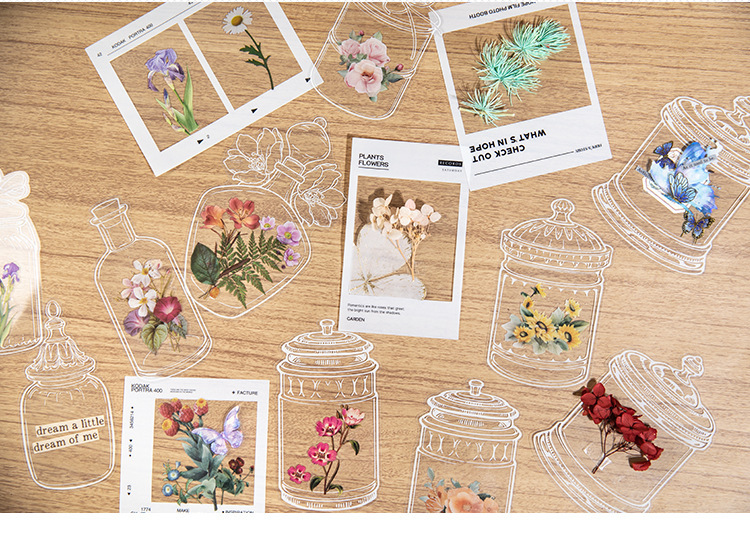 언어 무료 애완 동물 스티커 팩 라이브 낙서 시리즈 에 바람 테두리 병 diy 수제 말린 꽃 북마크 핸드북 스티커