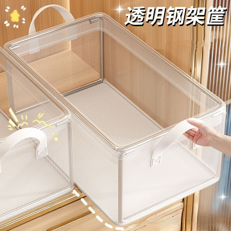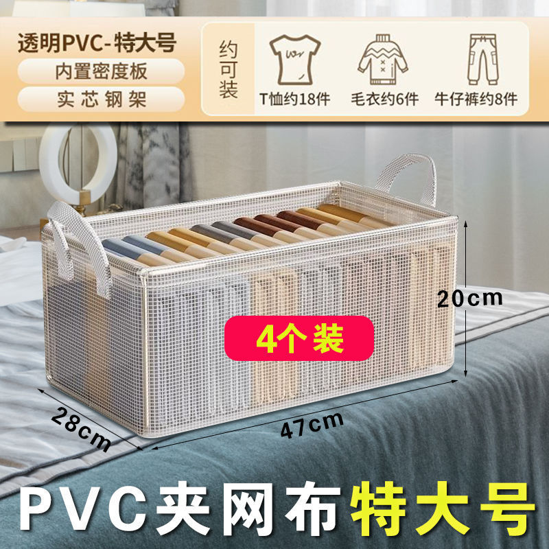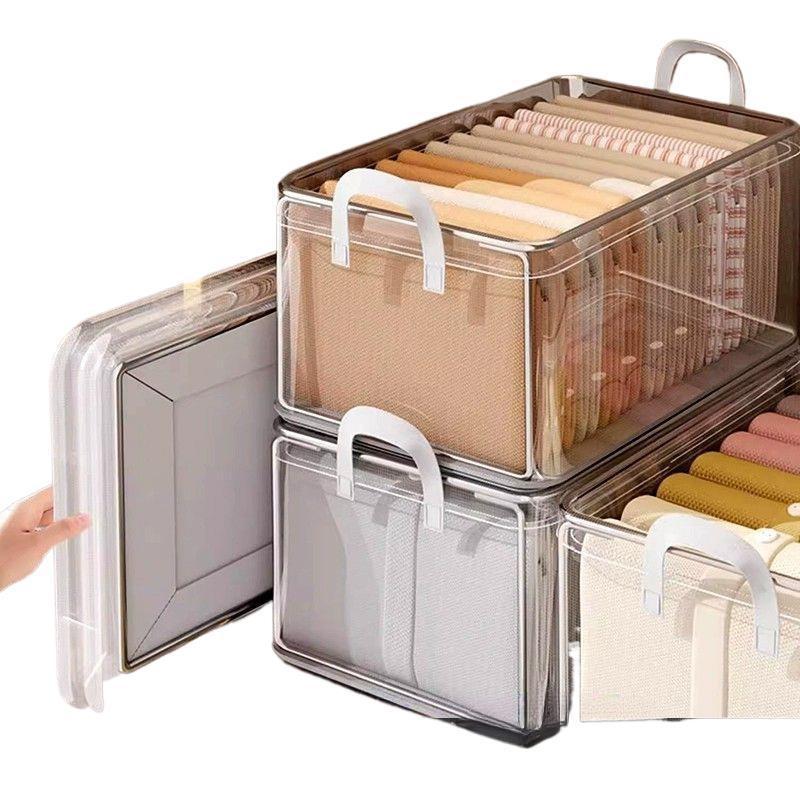투명한 옷 보관 상자 가정용 옷장 옷 바지 계층화 된 고정 상자 가을 및 겨울 접이식 보관 바구니스토어 가기