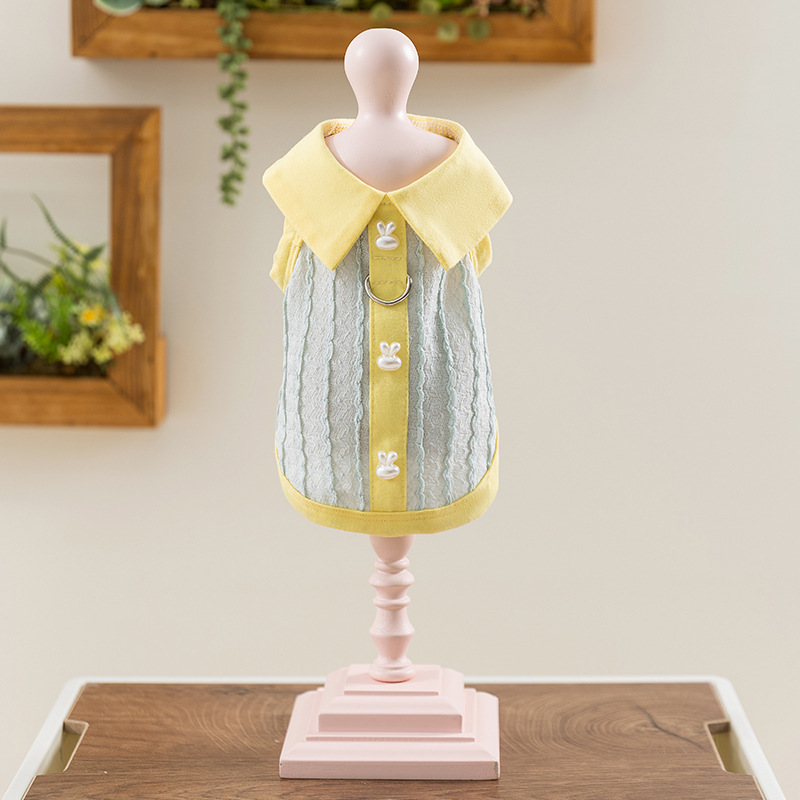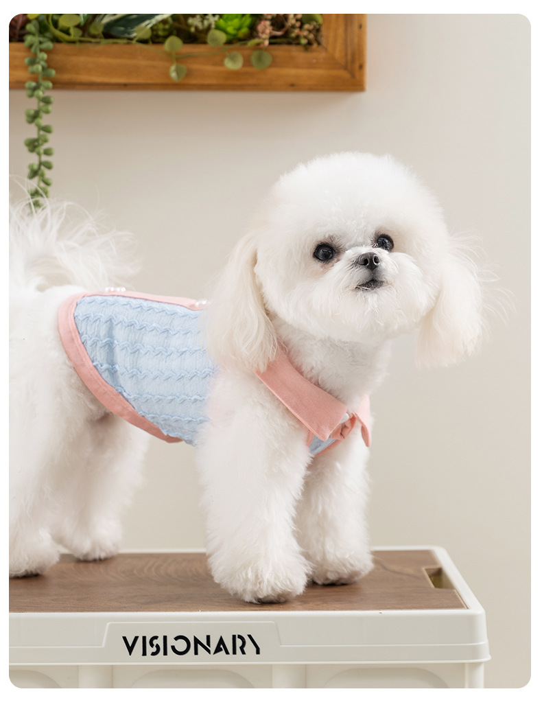 봄과 여름 개 얇은 통기성 자카드 니트 폴로 칼라 두 다리 조끼 중형 개와 고양이 애완 동물 옷