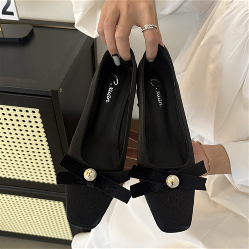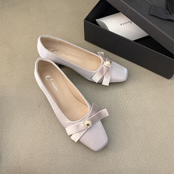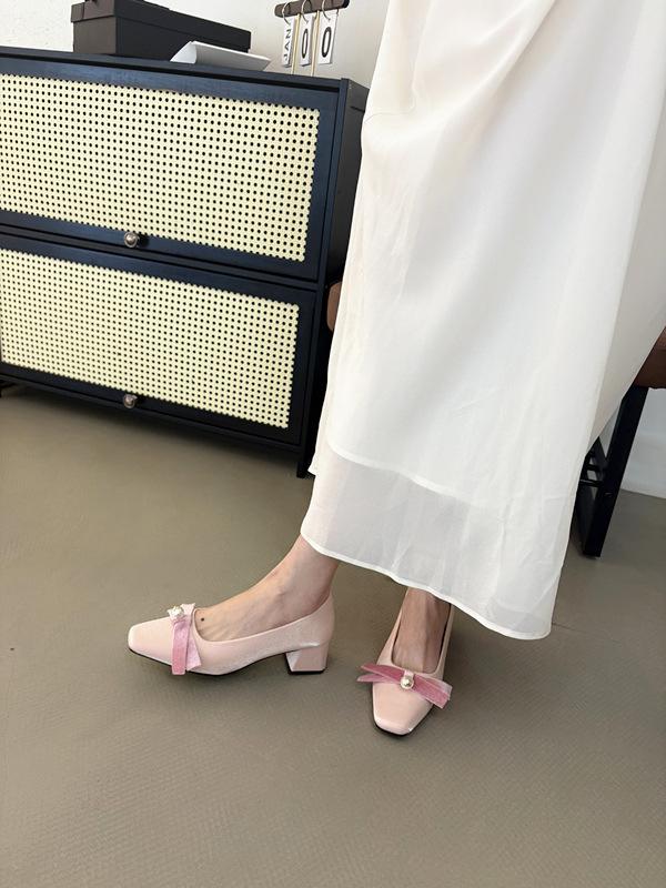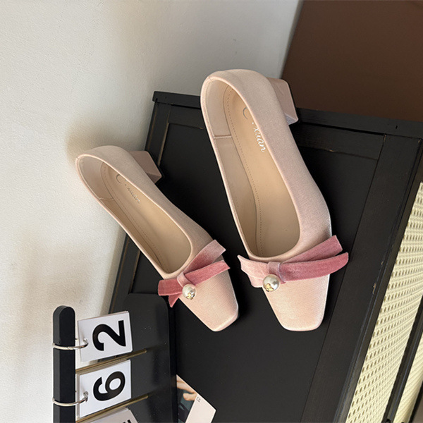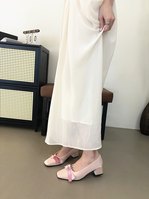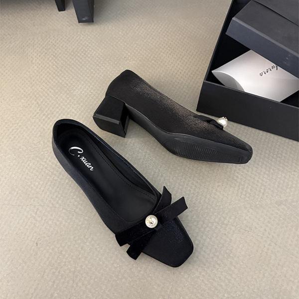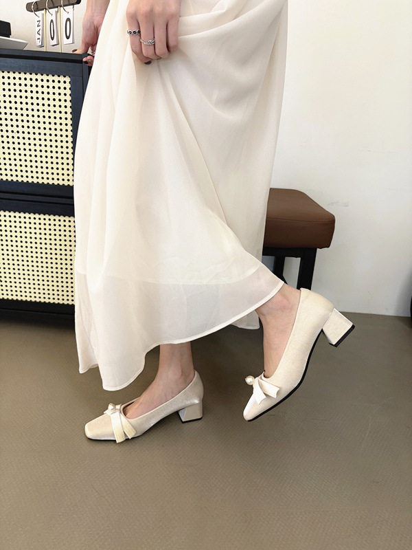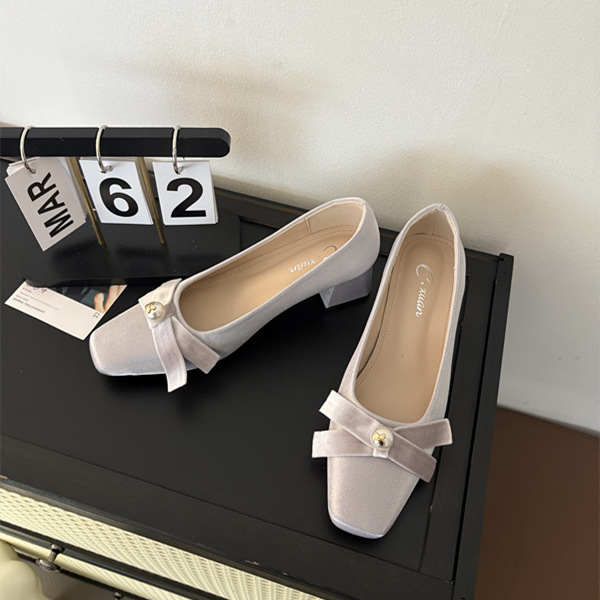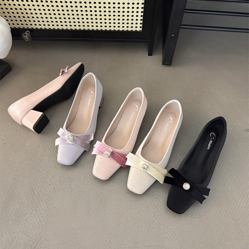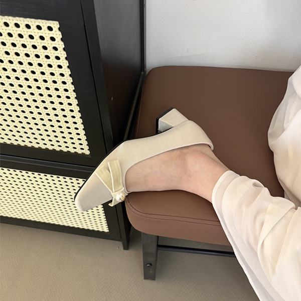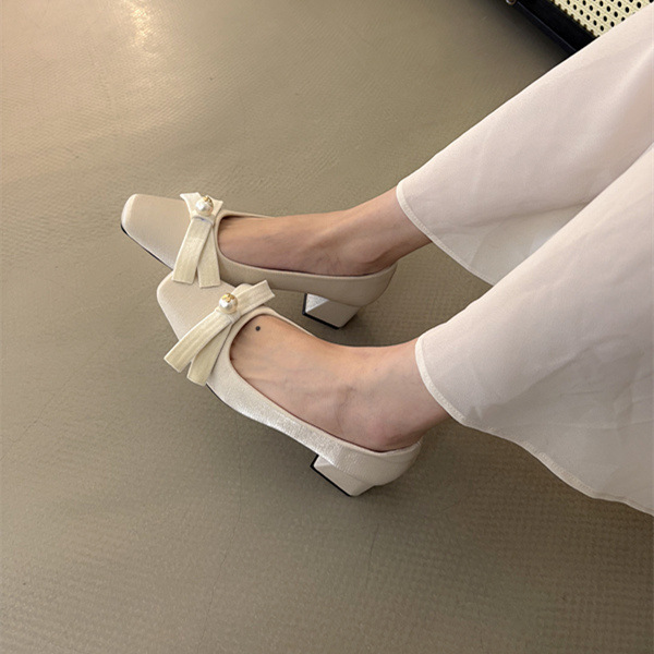 활 매듭 신발 프렌치 블록 힐 여성 신발 2025 새로운 봄 스커트 저녁 하이힐스토어 가기