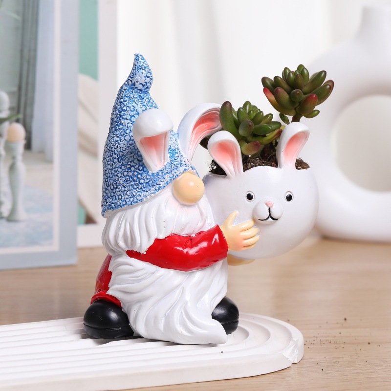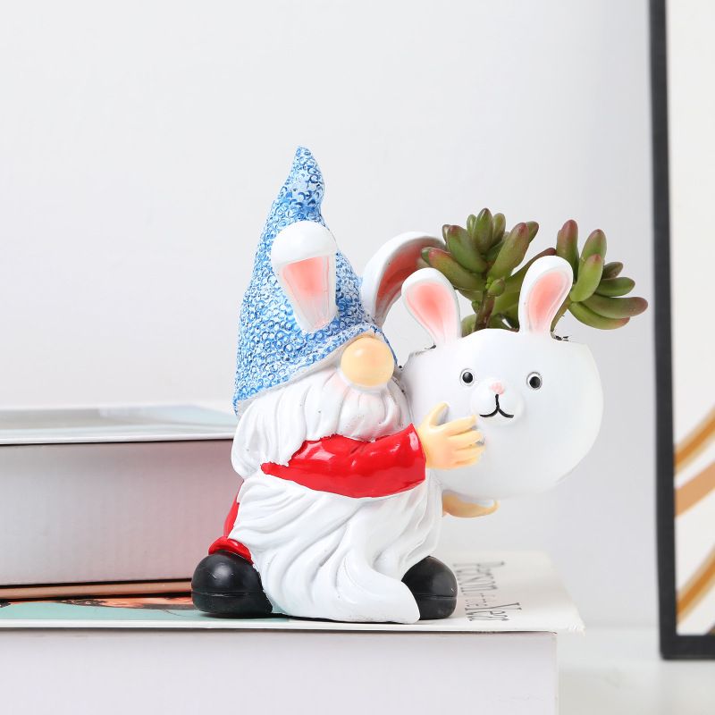육체 꽃 냄비 현관 장식 장식품을 들고 국경 간 토끼 난쟁이 야외 안뜰 난쟁이 수지 장식