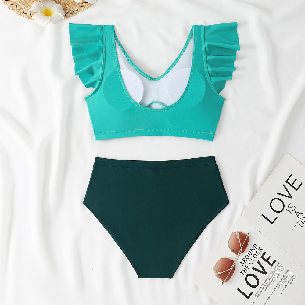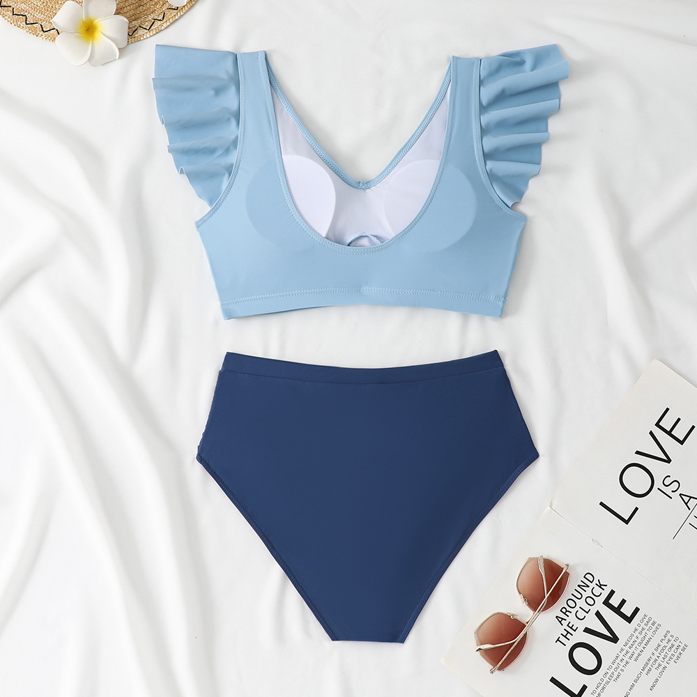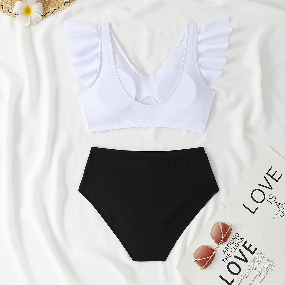 2025 새로운 유럽 및 미국 분할 Pleated Hollow 슬림 V 넥 대조 컬러 러플 스티칭 비키니 수영복 여성