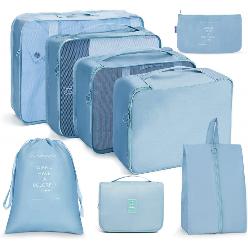 • 라이트 블루 럭셔리 8종 세트, 새 세면도구 가방