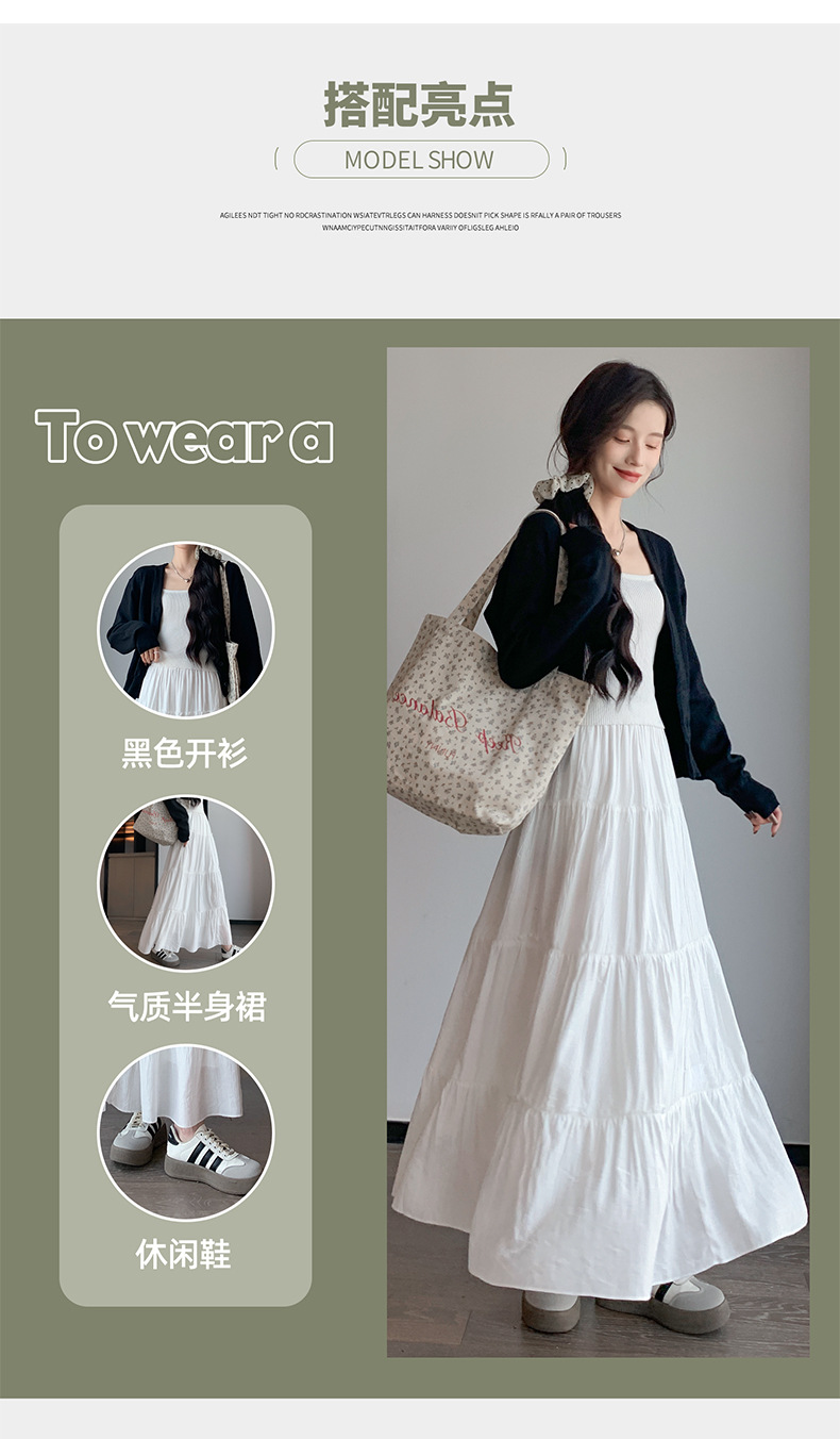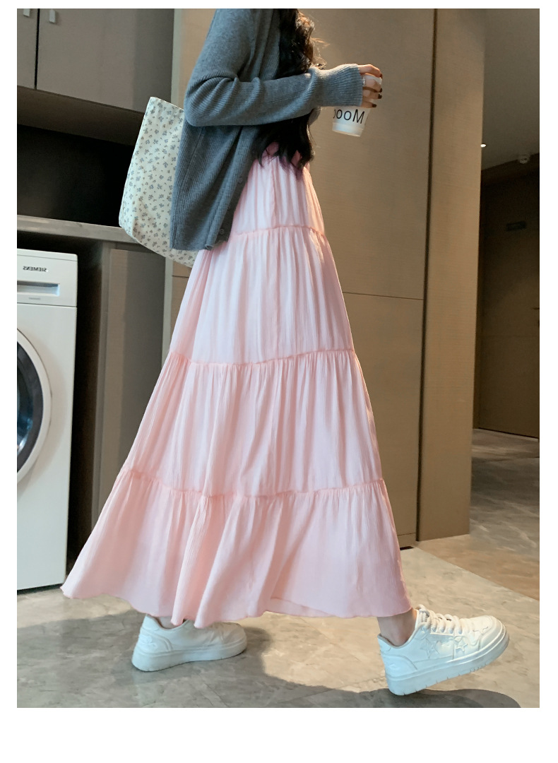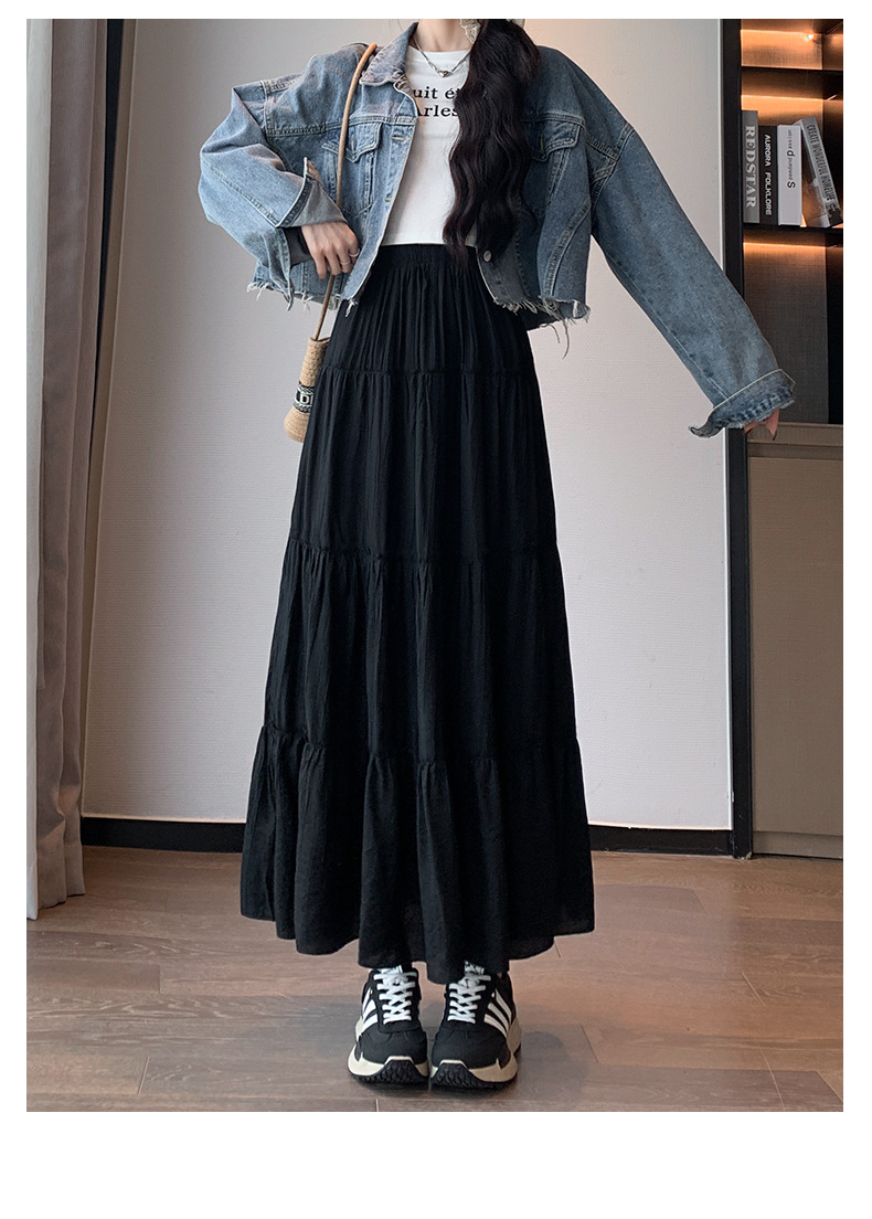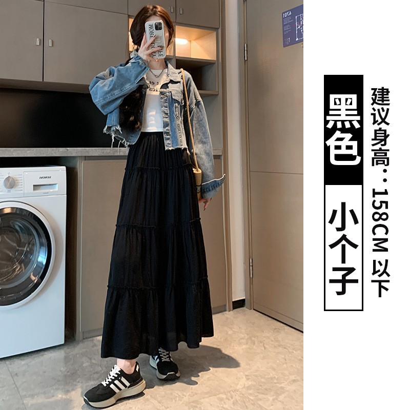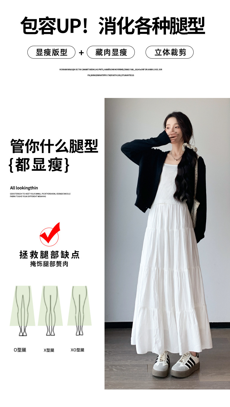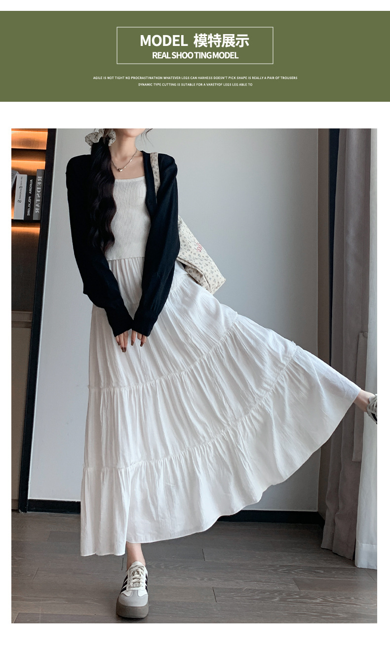 화이트 스커트 여성의 봄과 가을 2025 새로운 높은 허리 더미 A 모양의 중간 길이 스커트 작은 케이크 스커트스토어 가기
