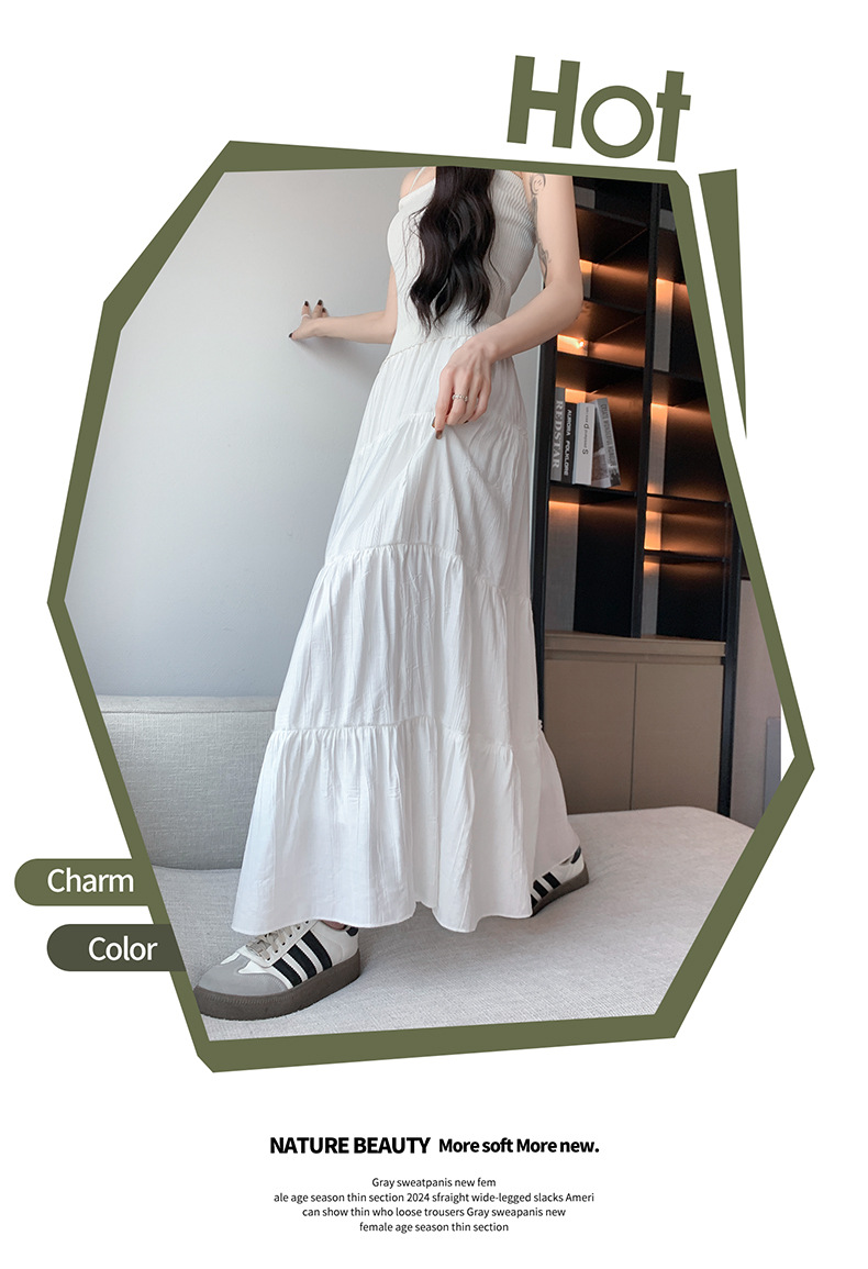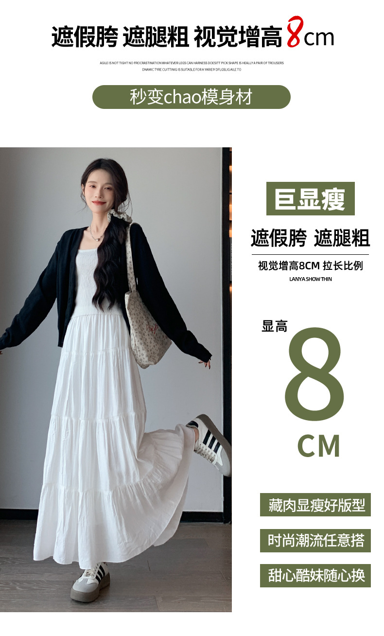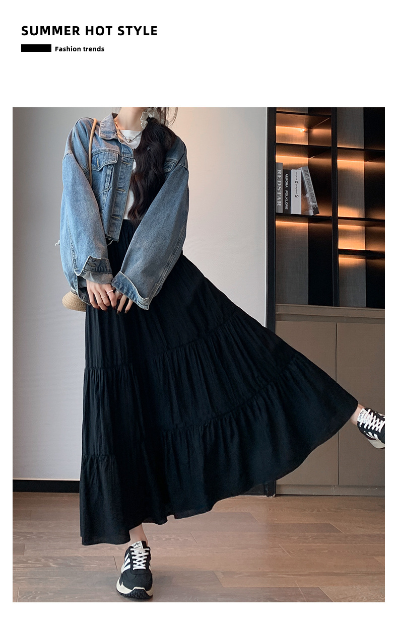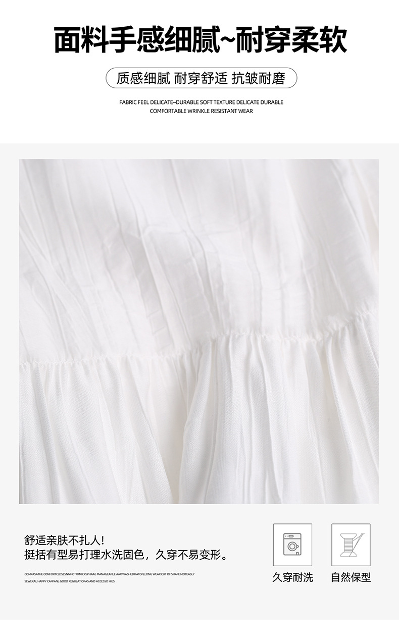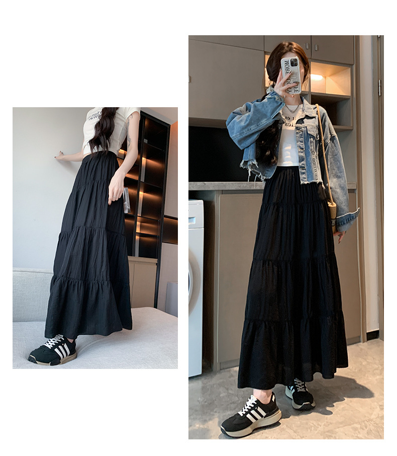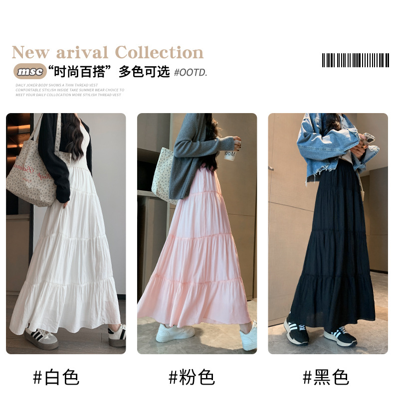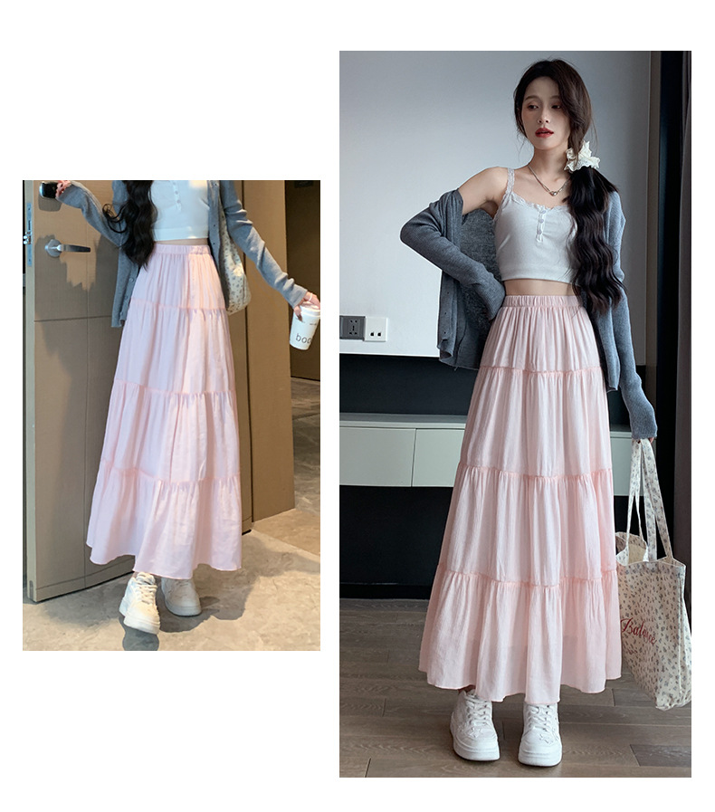 화이트 스커트 여성의 봄과 가을 2025 새로운 높은 허리 더미 A 모양의 중간 길이 스커트 작은 케이크 스커트스토어 가기
