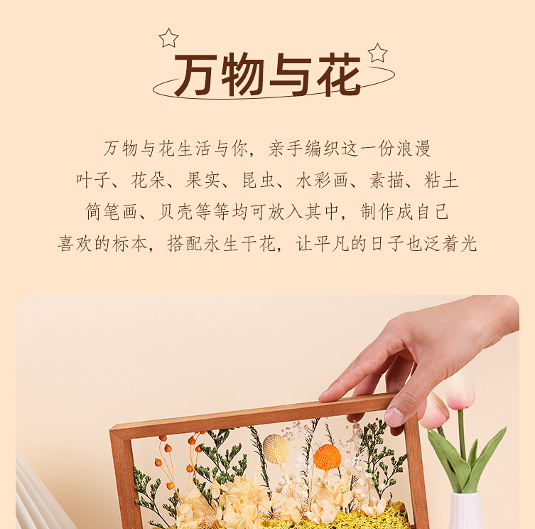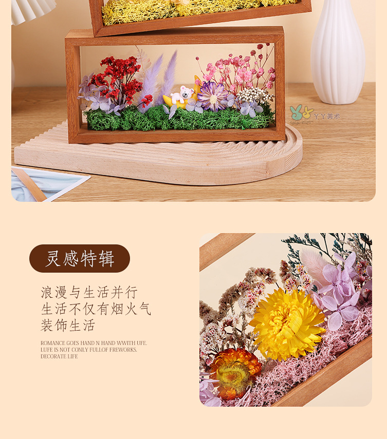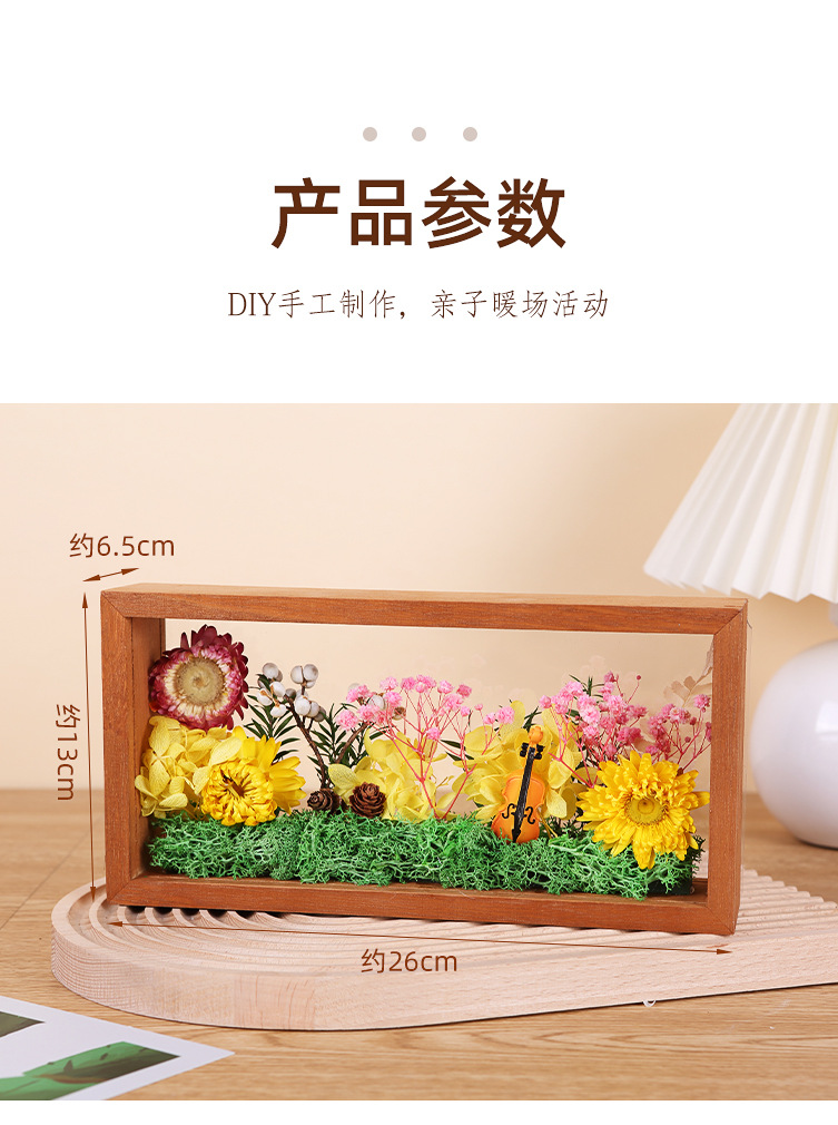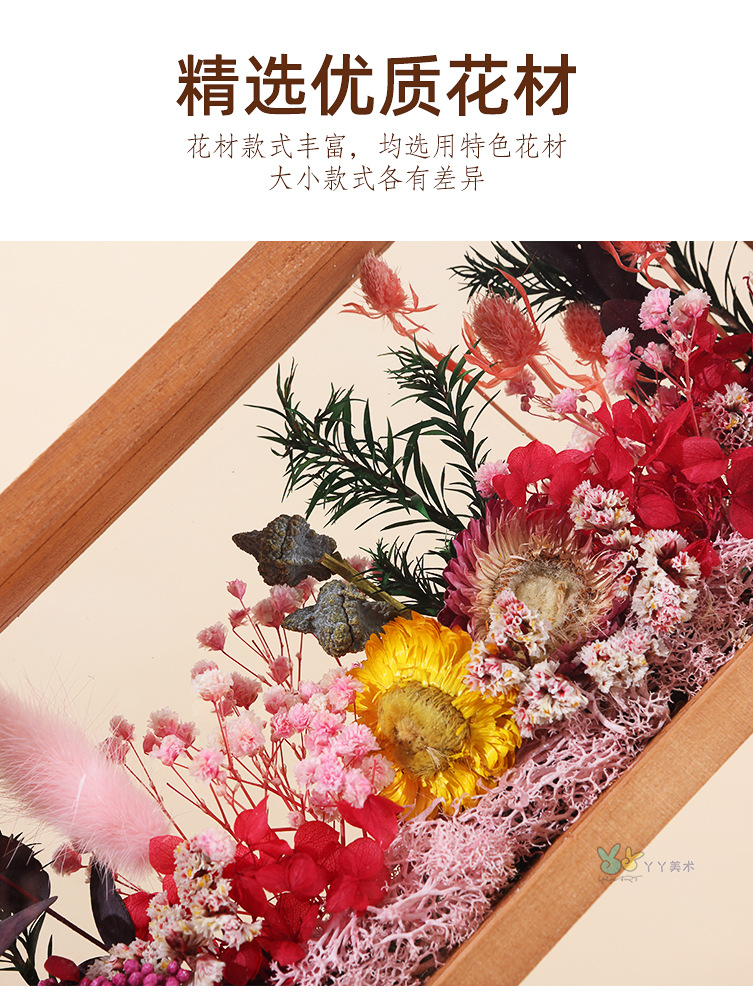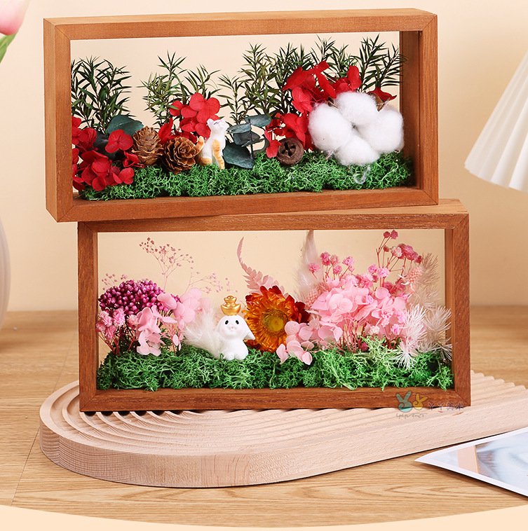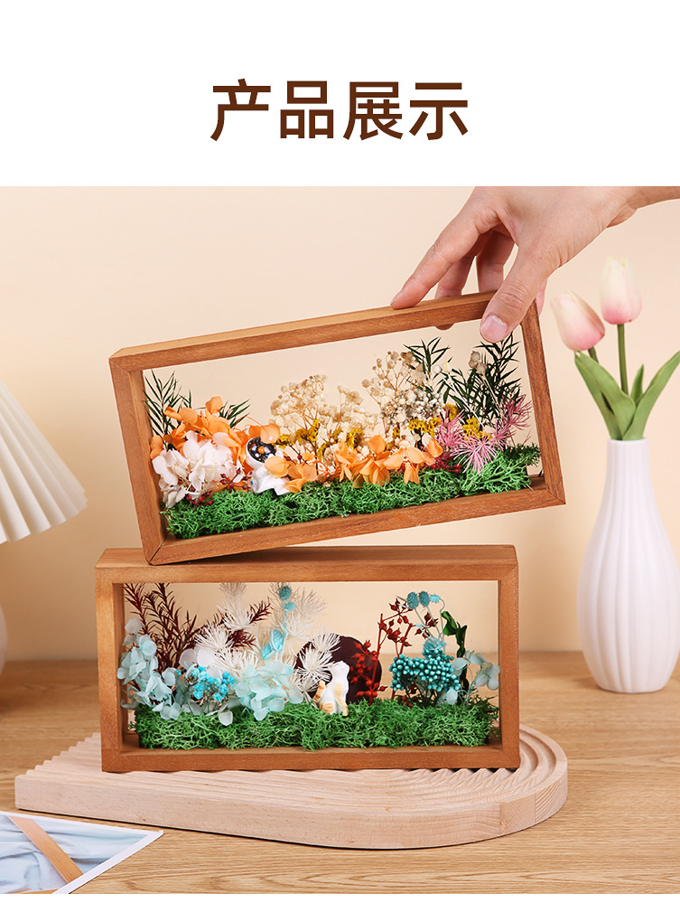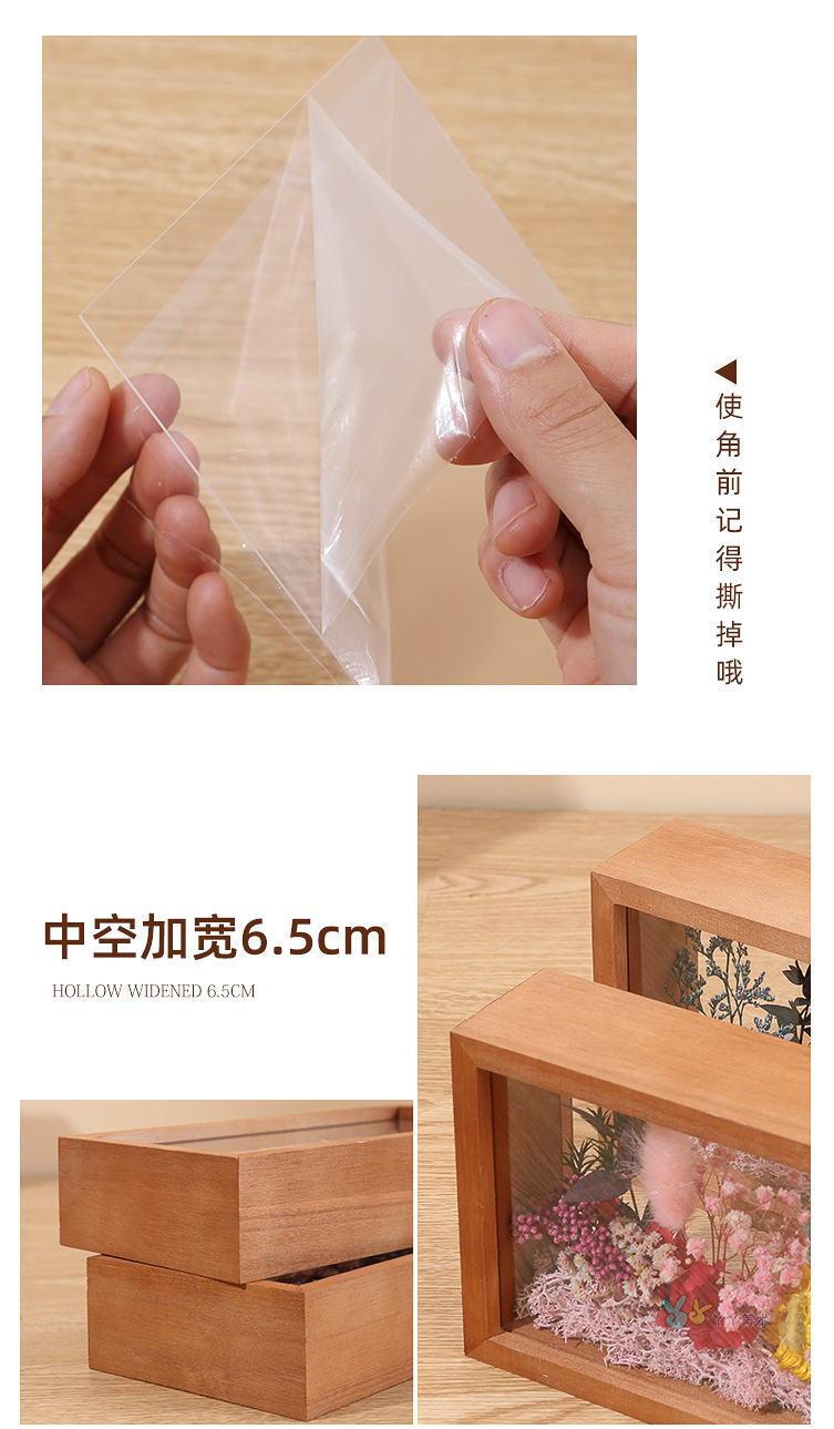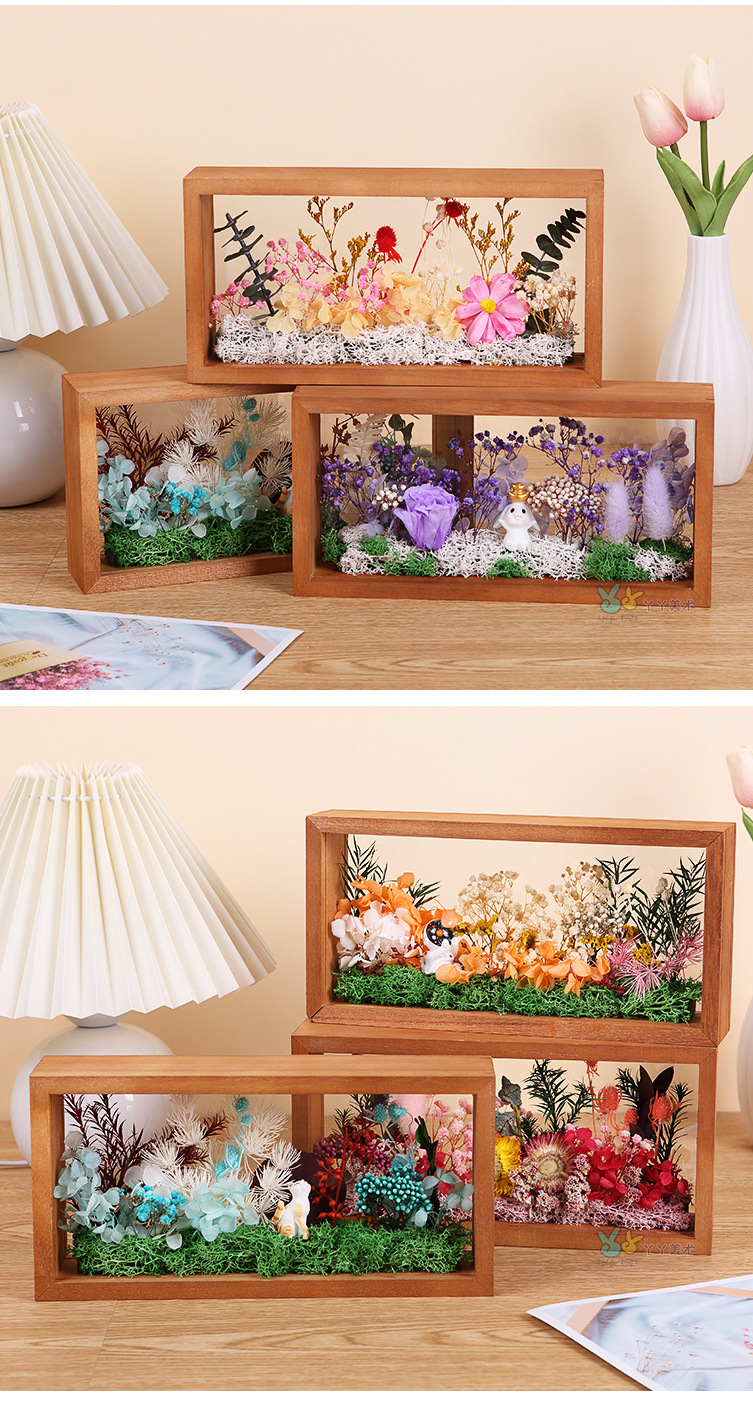 Xun DIY 수제 말린 꽃 사진 프레임 영원한 꽃 단단한 나무 그림 프레임 스테레오 중공 양면 아크릴 디스플레이 상자 세트 테이블스토어 가기
