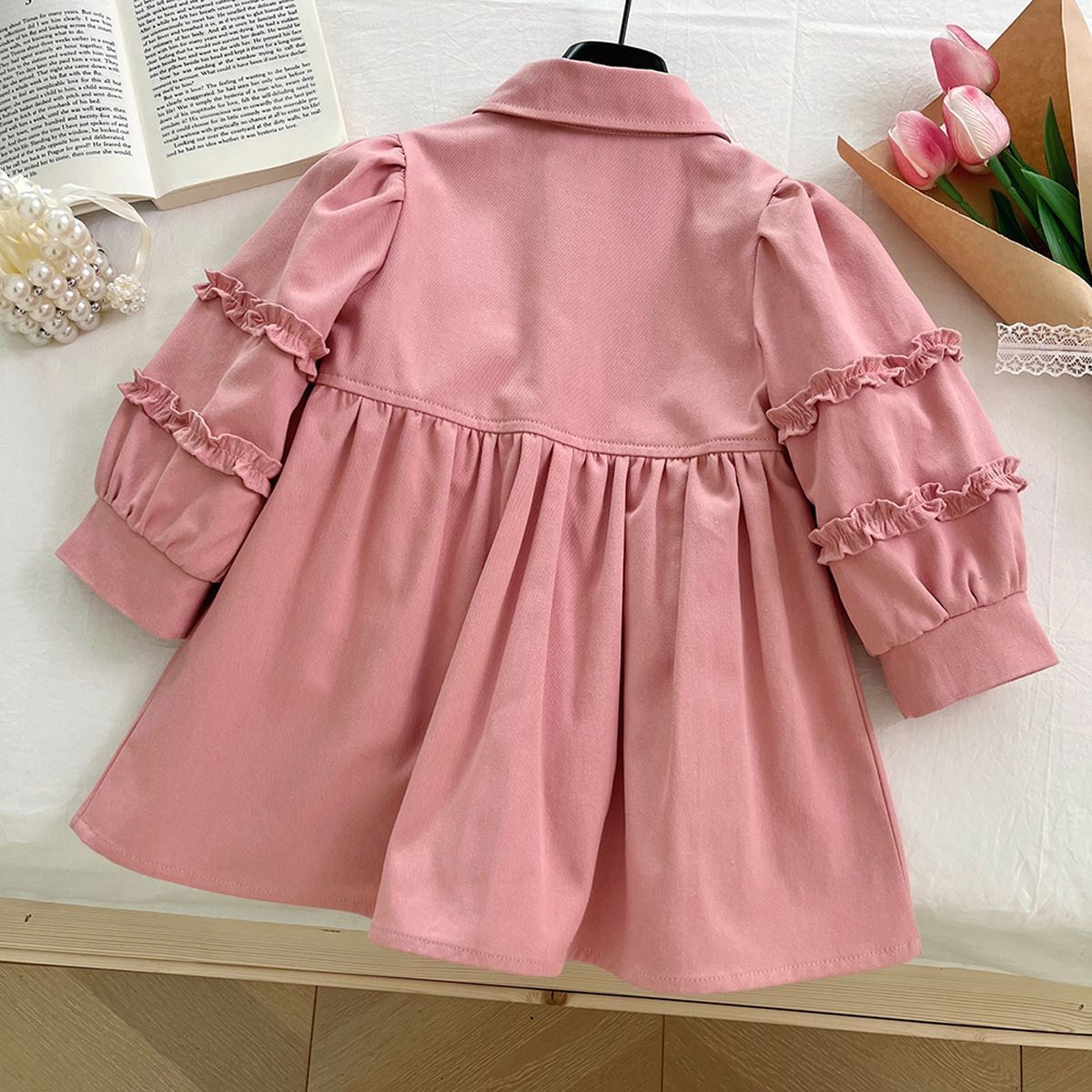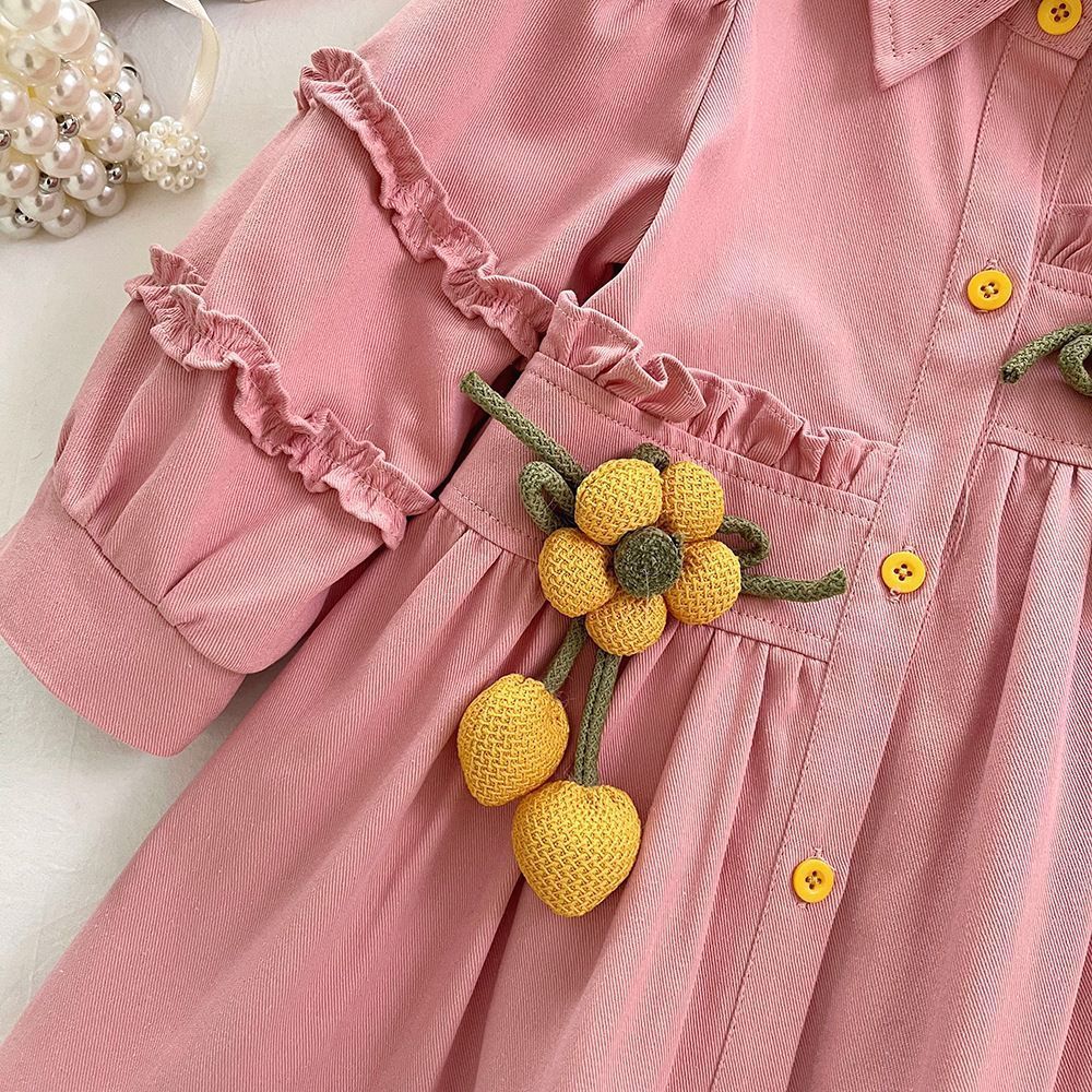 새로운 2025 봄 가을 한국 스타일 소녀 셔츠 원피스 소녀의 3 차원 해바라기 긴 소매 원피스 트렌디