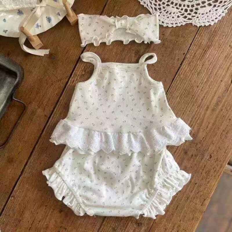 Ins Korean Style 여성의 보물 여름 부드러운 얇은 꽃 슬링 세트 올 매치 레이스 바느질 공주 조끼 투피스 세트스토어 가기