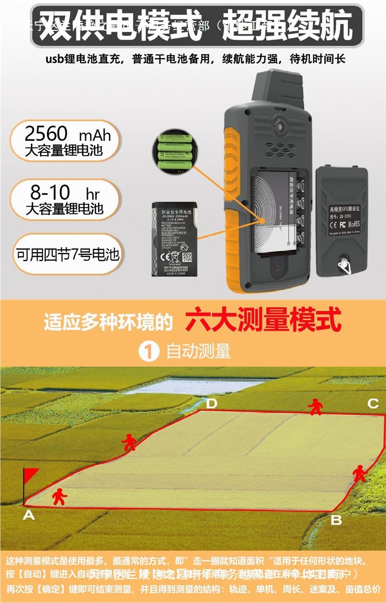 2023 새로운 고정밀 6 성급 자동 차량 장착 핸드 헬드 GPS 랜드 뮤 지역 측정기