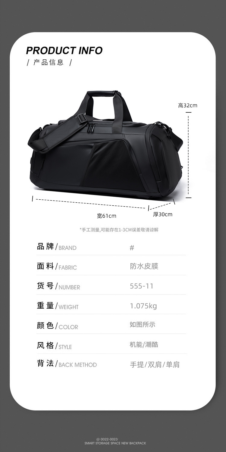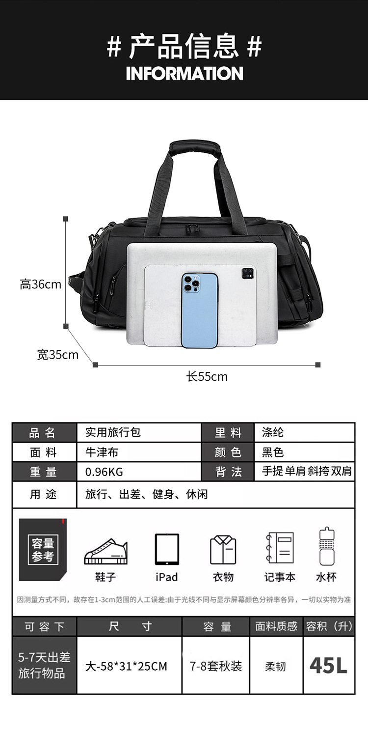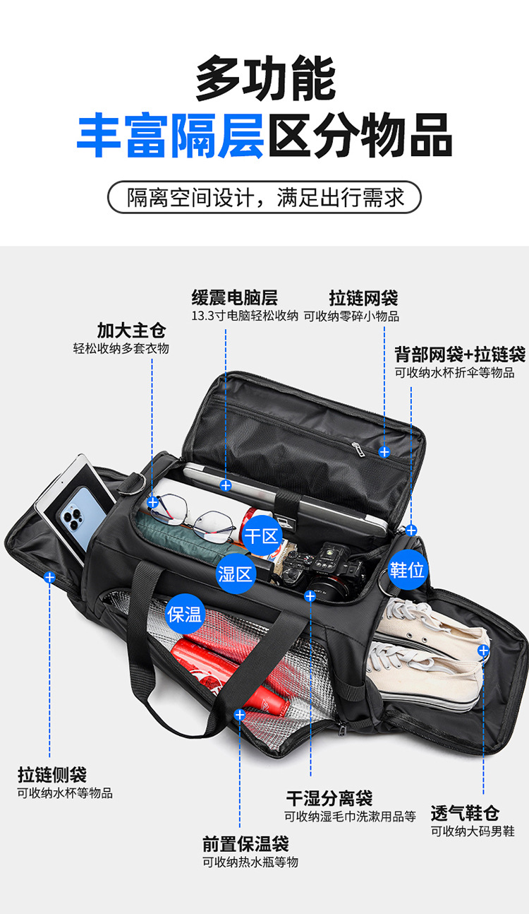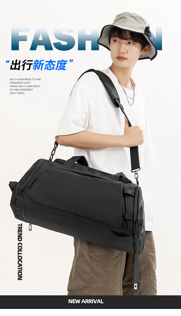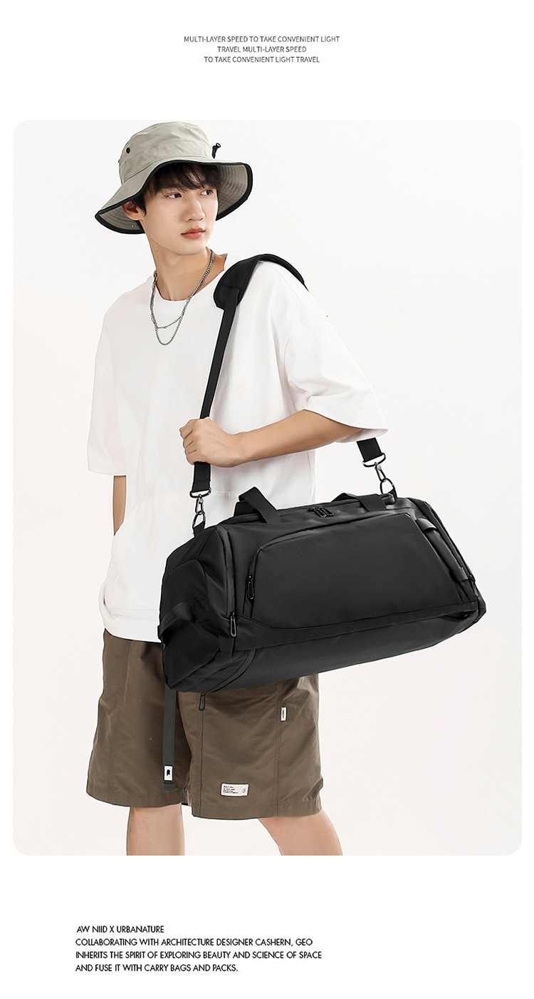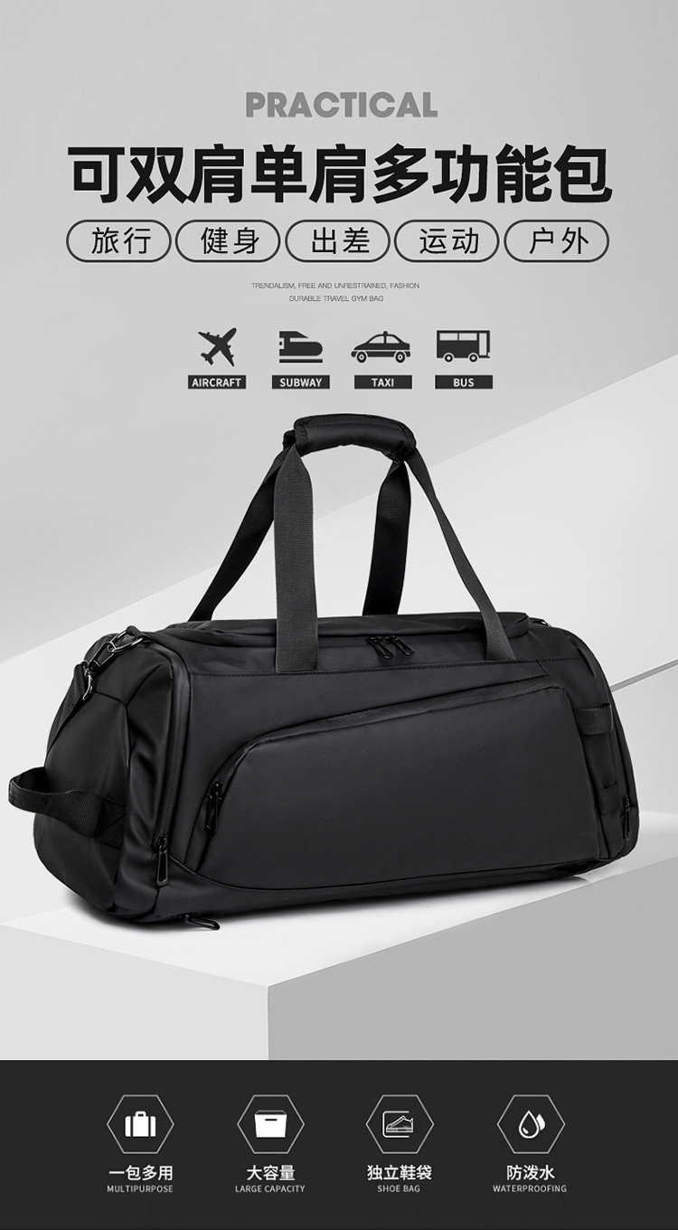 옥스포드 천 대용량 여행 가방 남자의 검은 다기능 배낭 수하물 가방 휴대용 체육관 가방 건조하고 젖은 분리스토어 가기