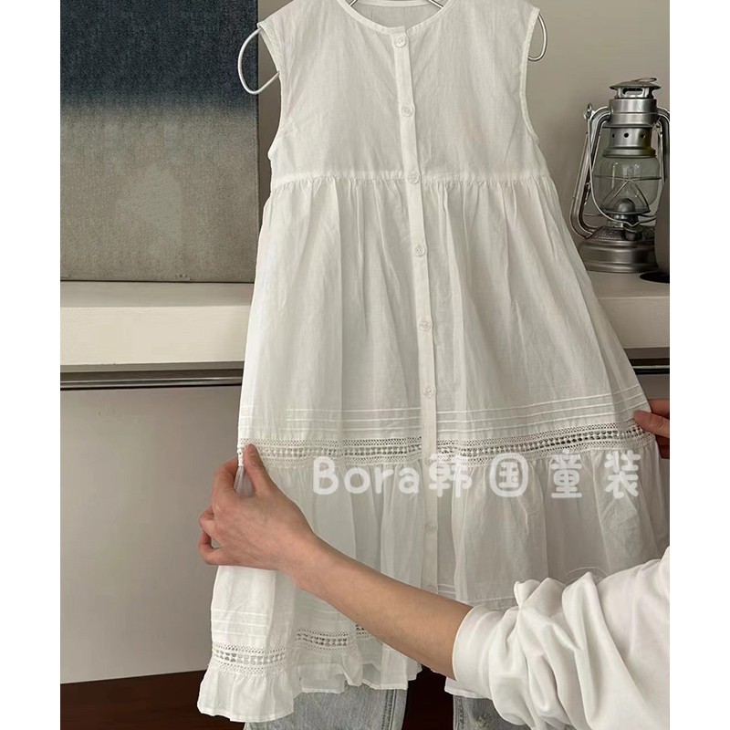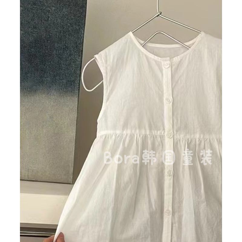 여아 드레스 2025 신상 봄 여름 흰색 스커트 중대형 아동복, 패셔너블한 단색 캐주얼 조끼 롱 스커트스토어 가기