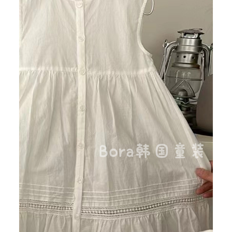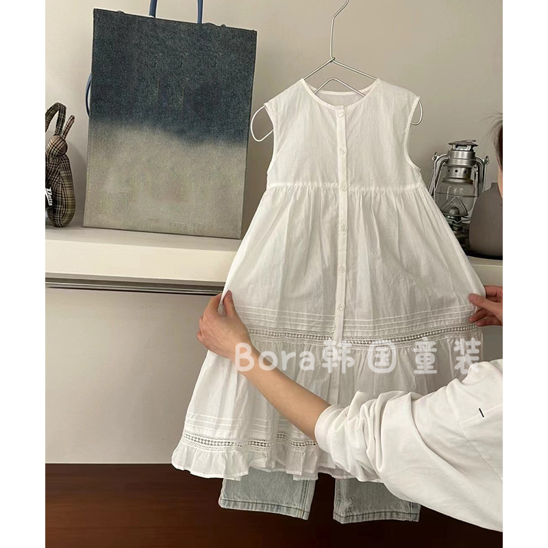여아 드레스 2025 신상 봄 여름 흰색 스커트 중대형 아동복, 패셔너블한 단색 캐주얼 조끼 롱 스커트