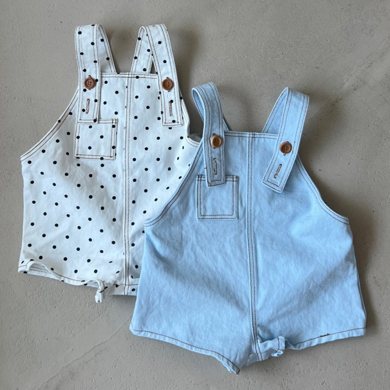 아동복 한국 스타일 여름옷 신상 점프수트 ins 스타일리쉬 패션 물방울 무늬 남아 여아 데님 멜빵바지 반바지