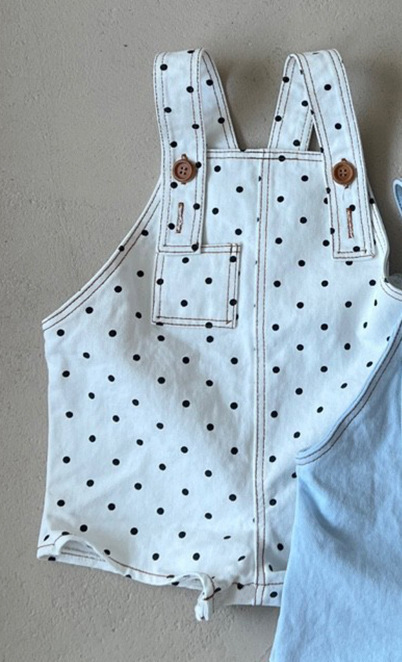 아동복 한국 스타일 여름옷 신상 점프수트 ins 스타일리쉬 패션 물방울 무늬 남아 여아 데님 멜빵바지 반바지스토어 가기