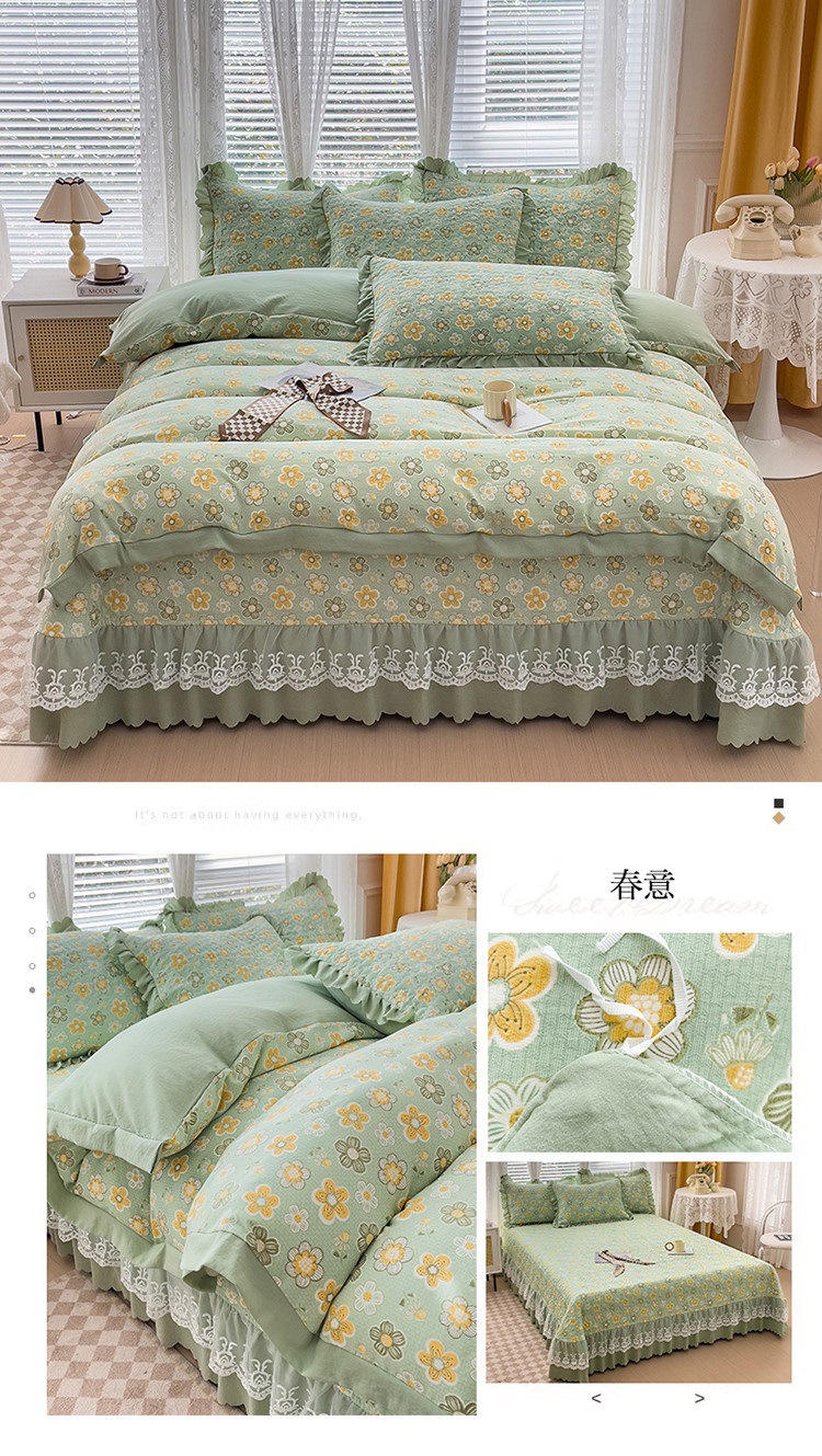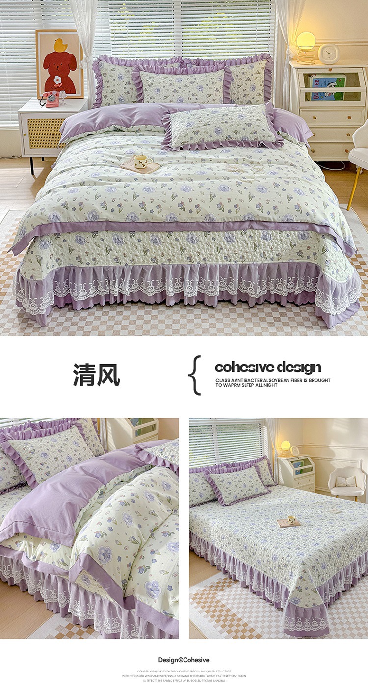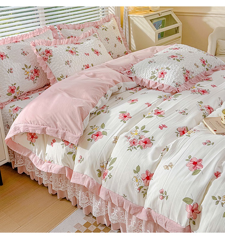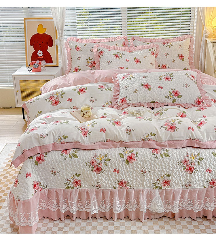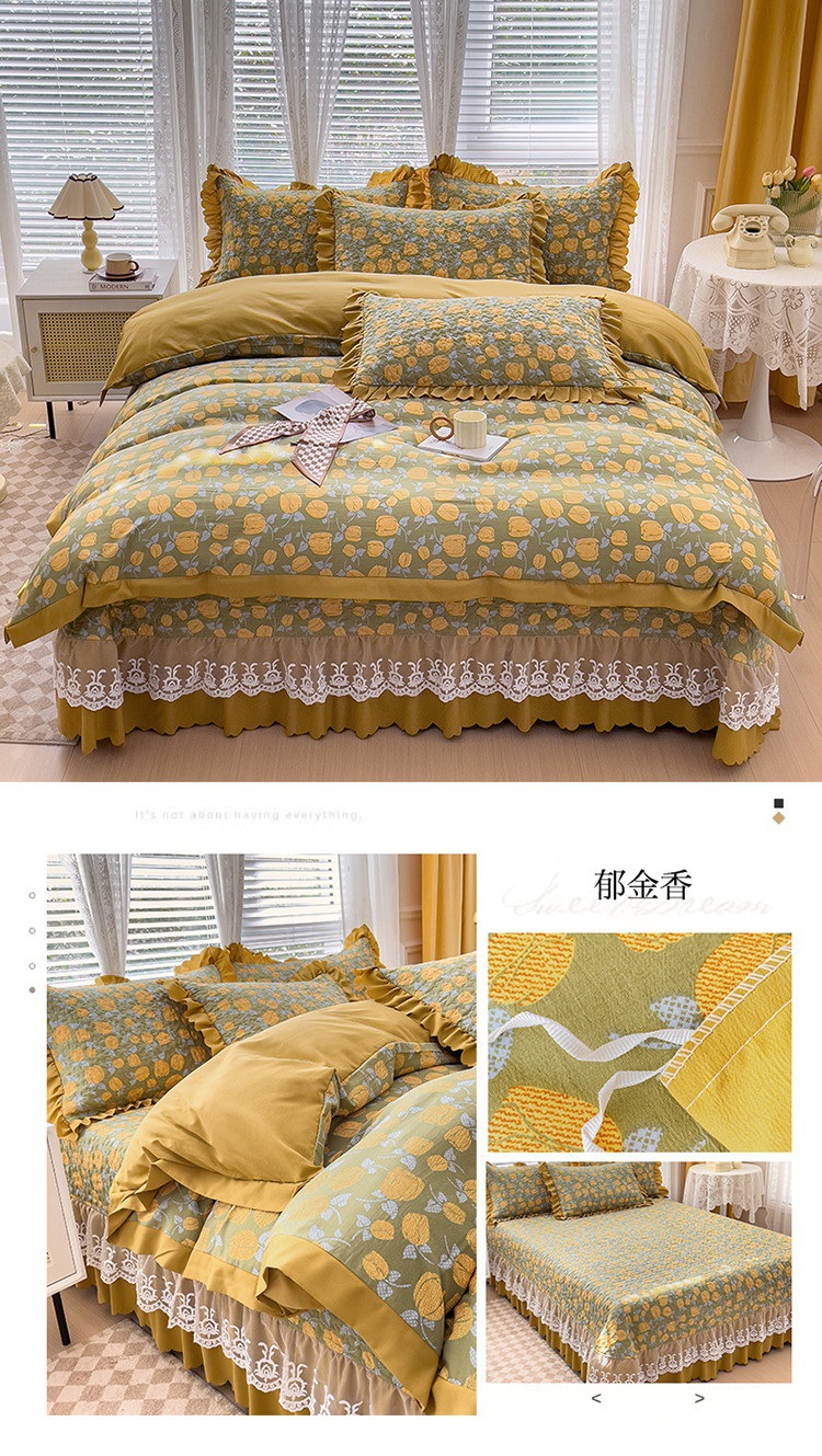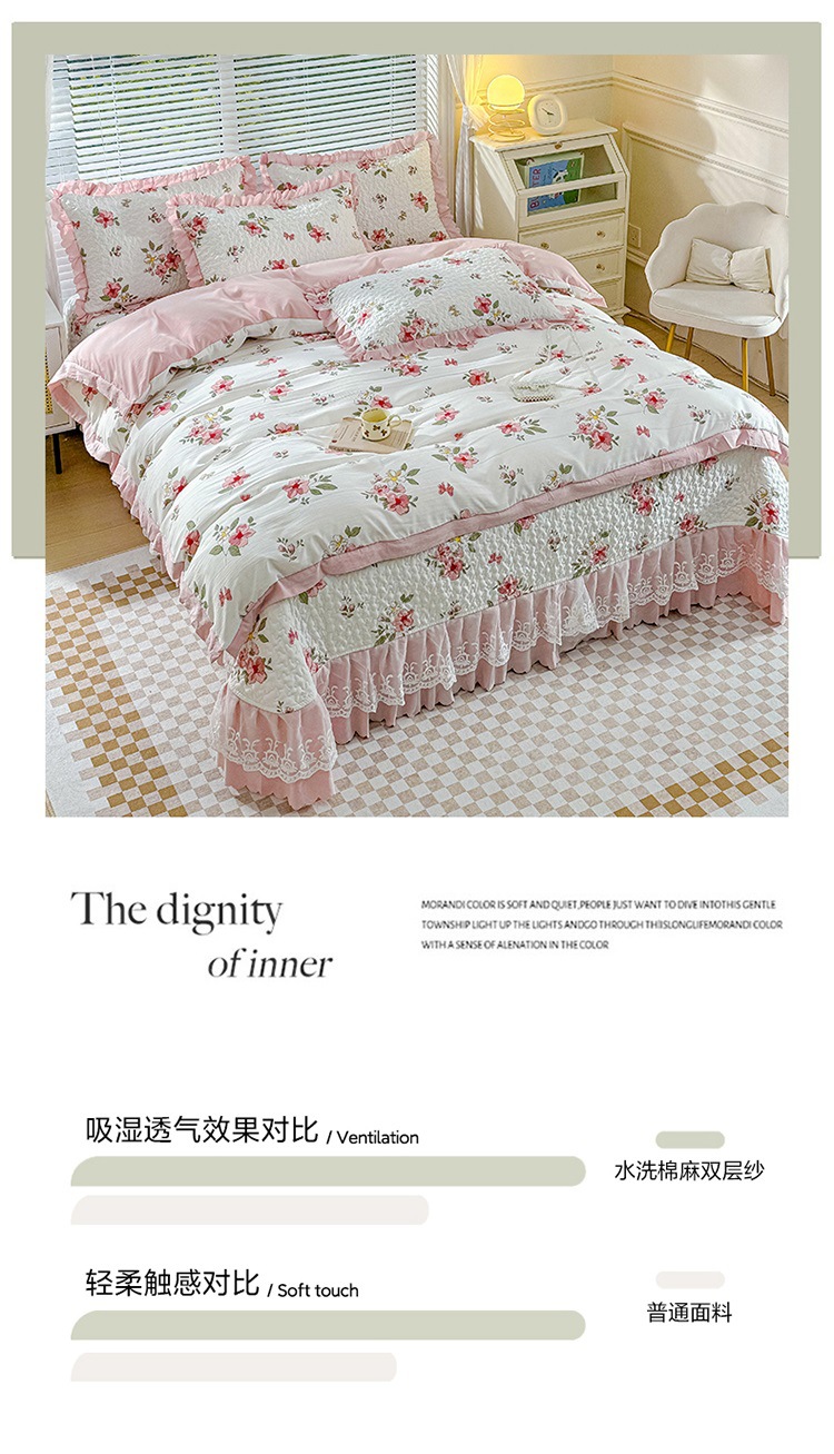 (종합) Baishite 202 더블 레이어 원사 세척 면 및 린넨 침대 커버 4 피스 세트 면 인쇄 레이스 침대 커버