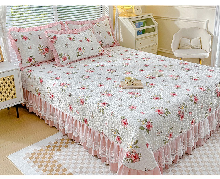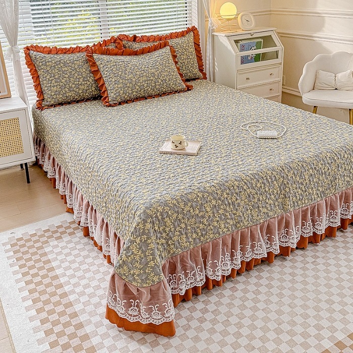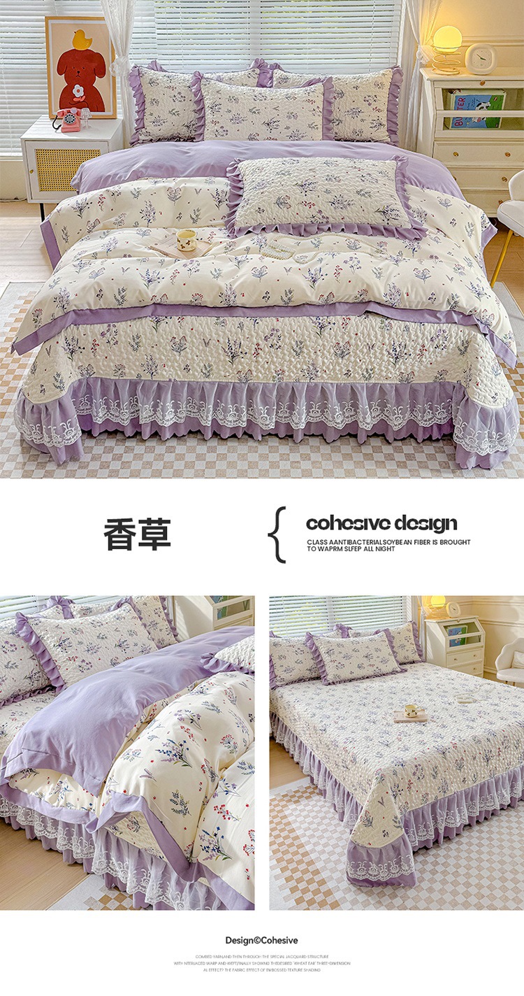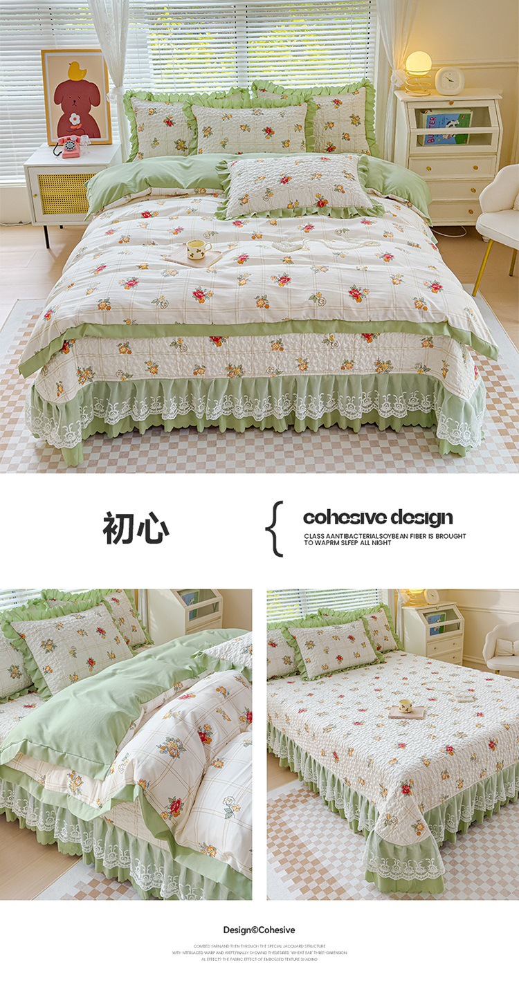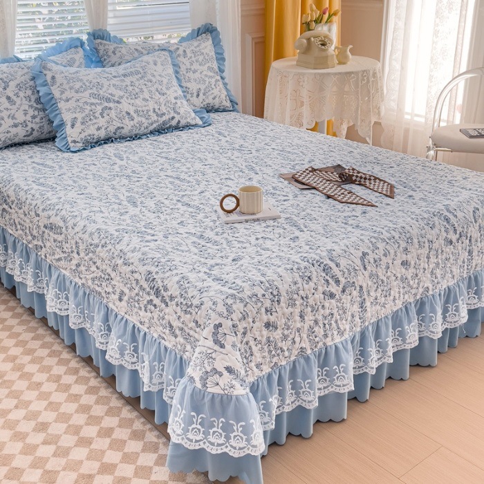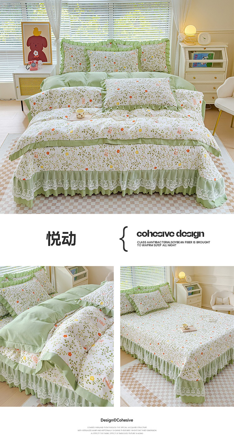 (종합) Baishite 202 더블 레이어 원사 세척 면 및 린넨 침대 커버 4 피스 세트 면 인쇄 레이스 침대 커버