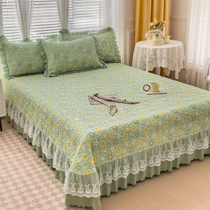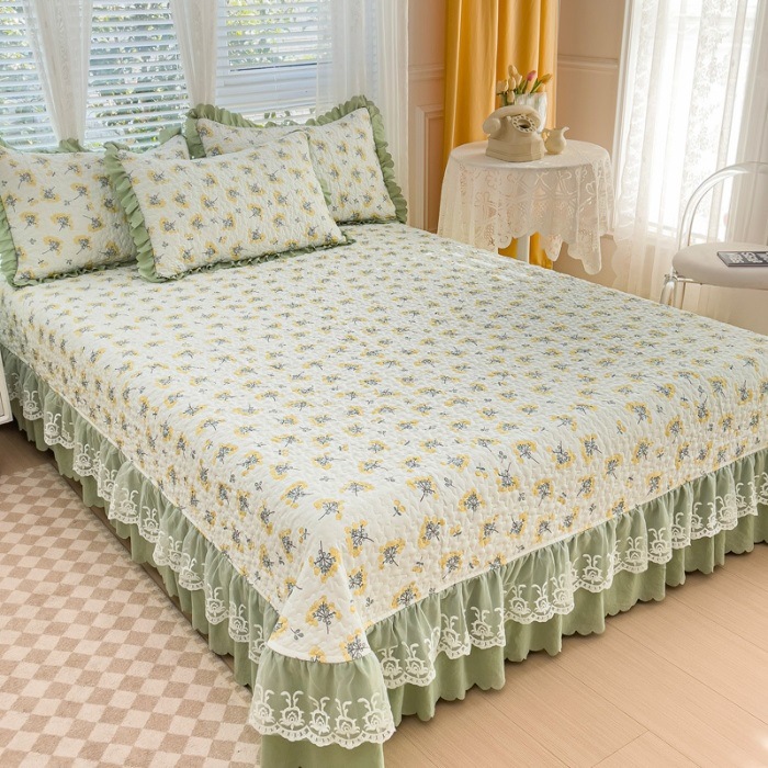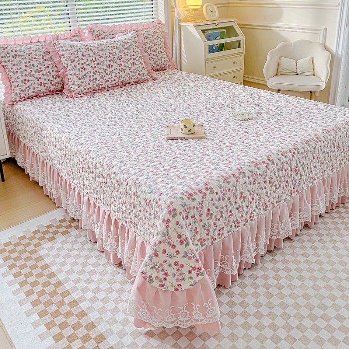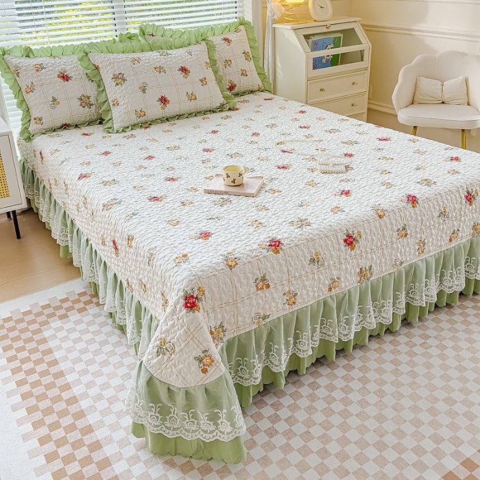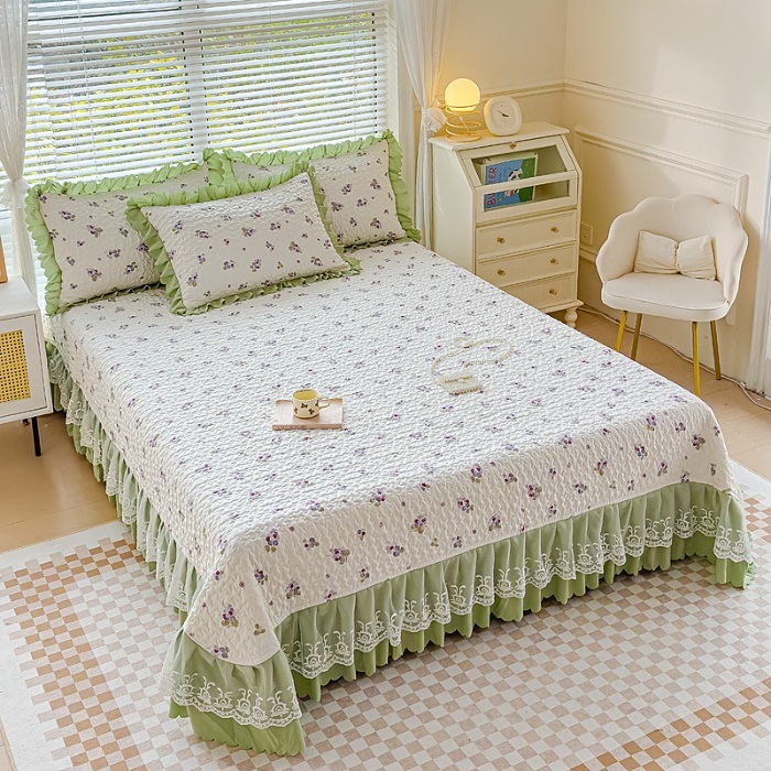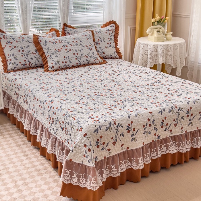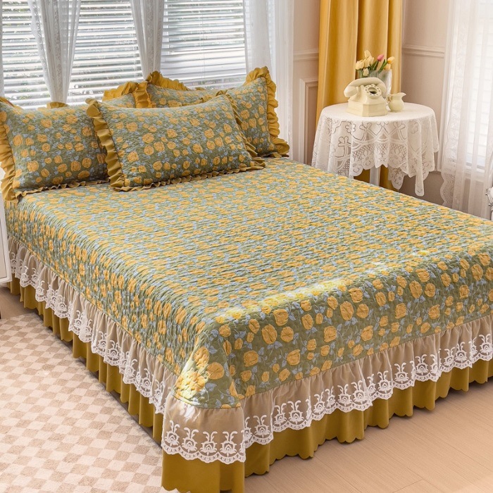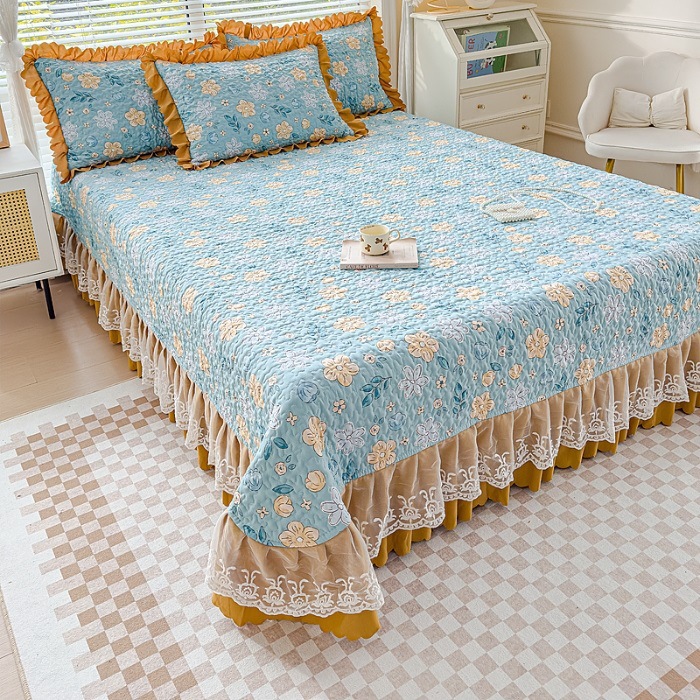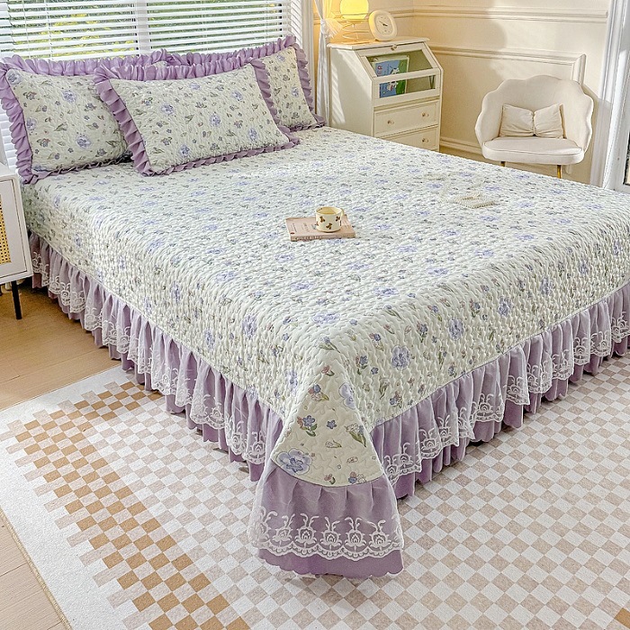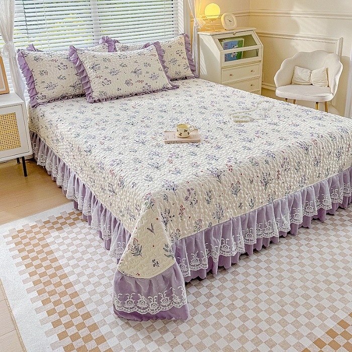 (종합) Baishite 202 더블 레이어 원사 세척 면 및 린넨 침대 커버 4 피스 세트 면 인쇄 레이스 침대 커버
