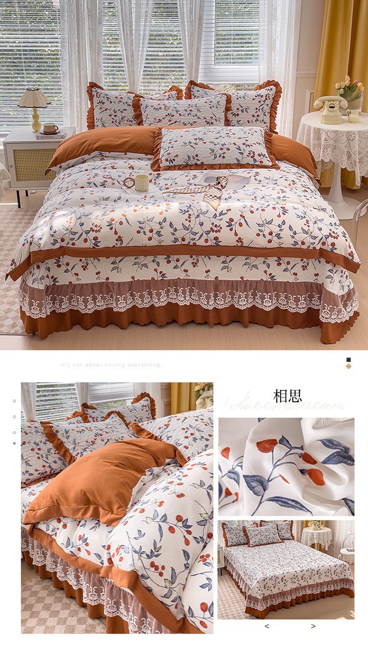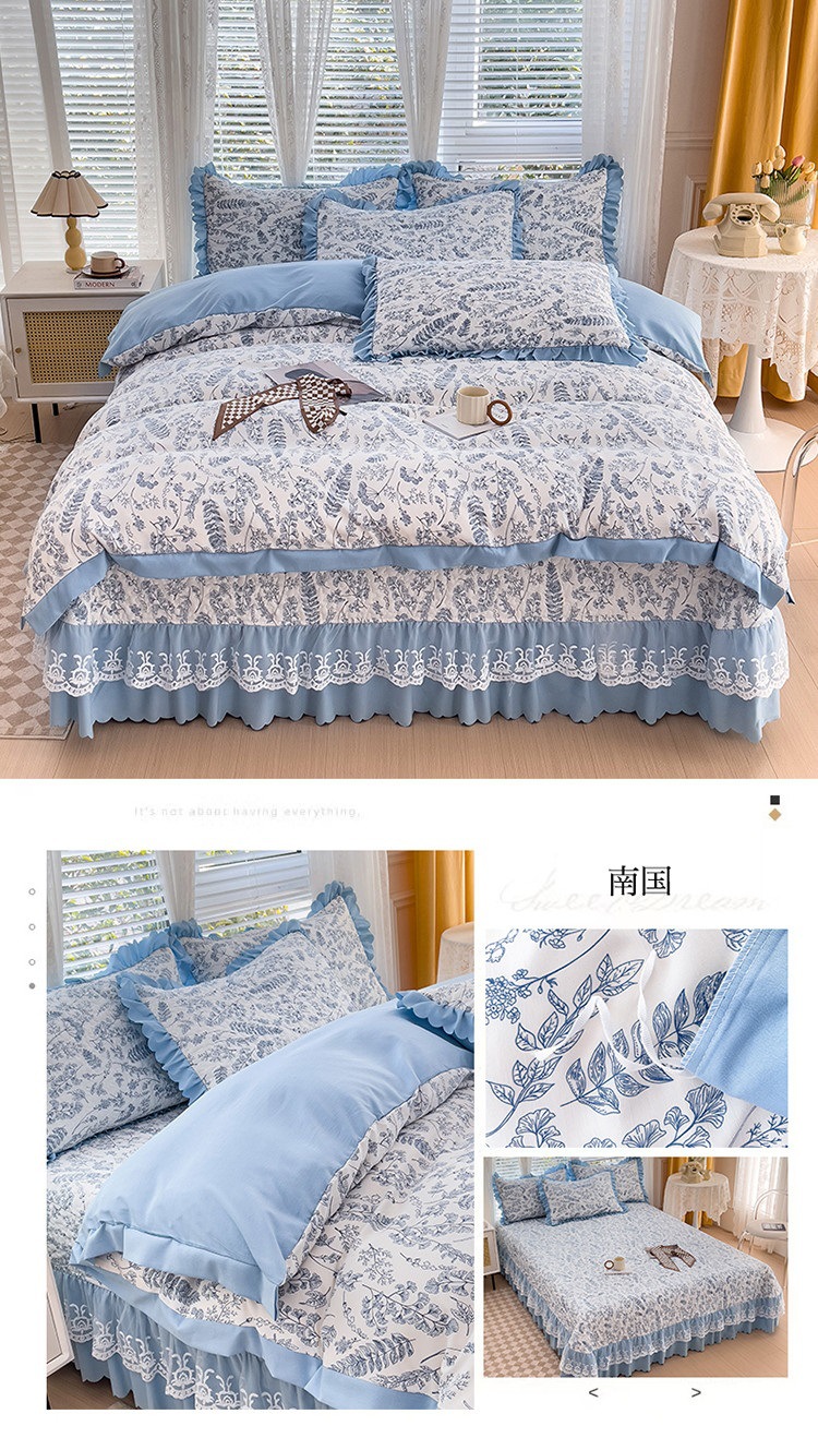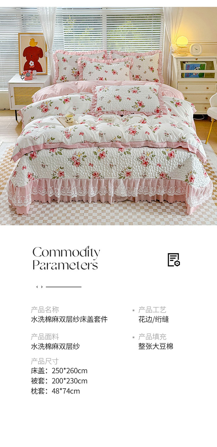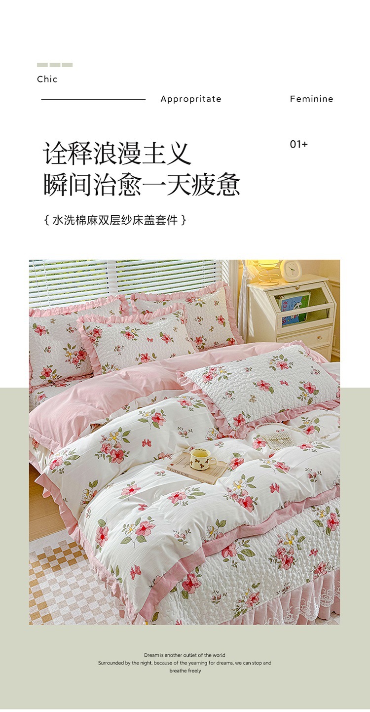 (종합) Baishite 202 더블 레이어 원사 세척 면 및 린넨 침대 커버 4 피스 세트 면 인쇄 레이스 침대 커버스토어 가기