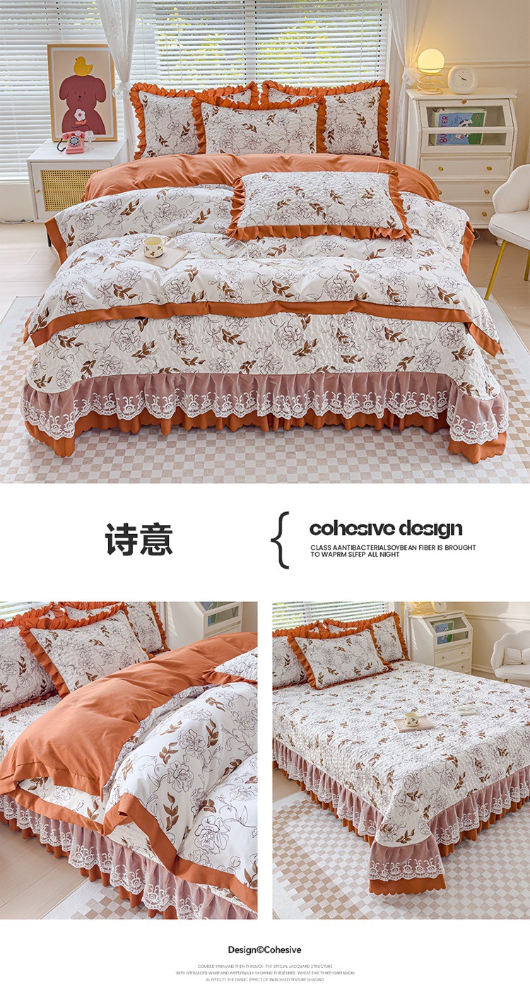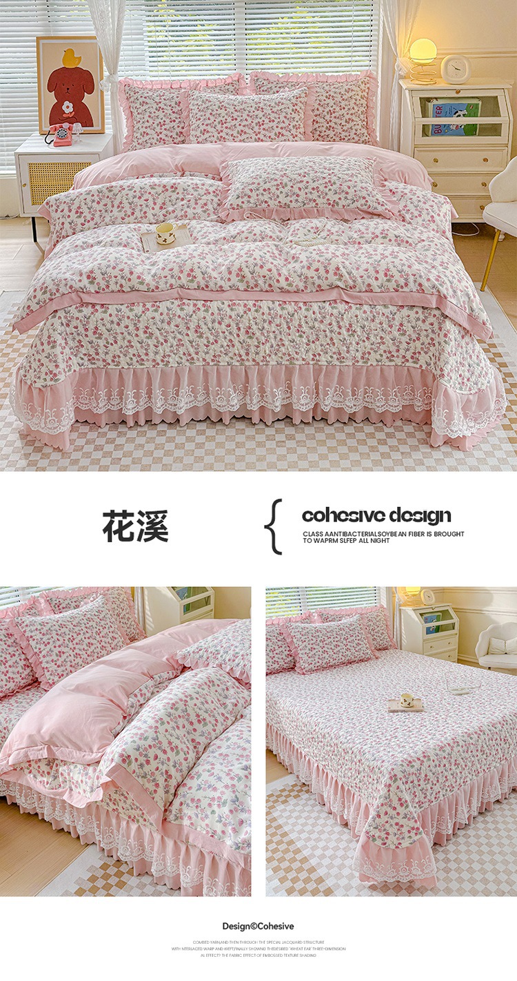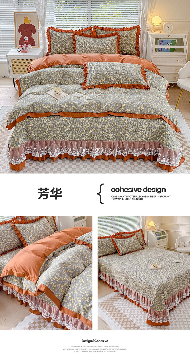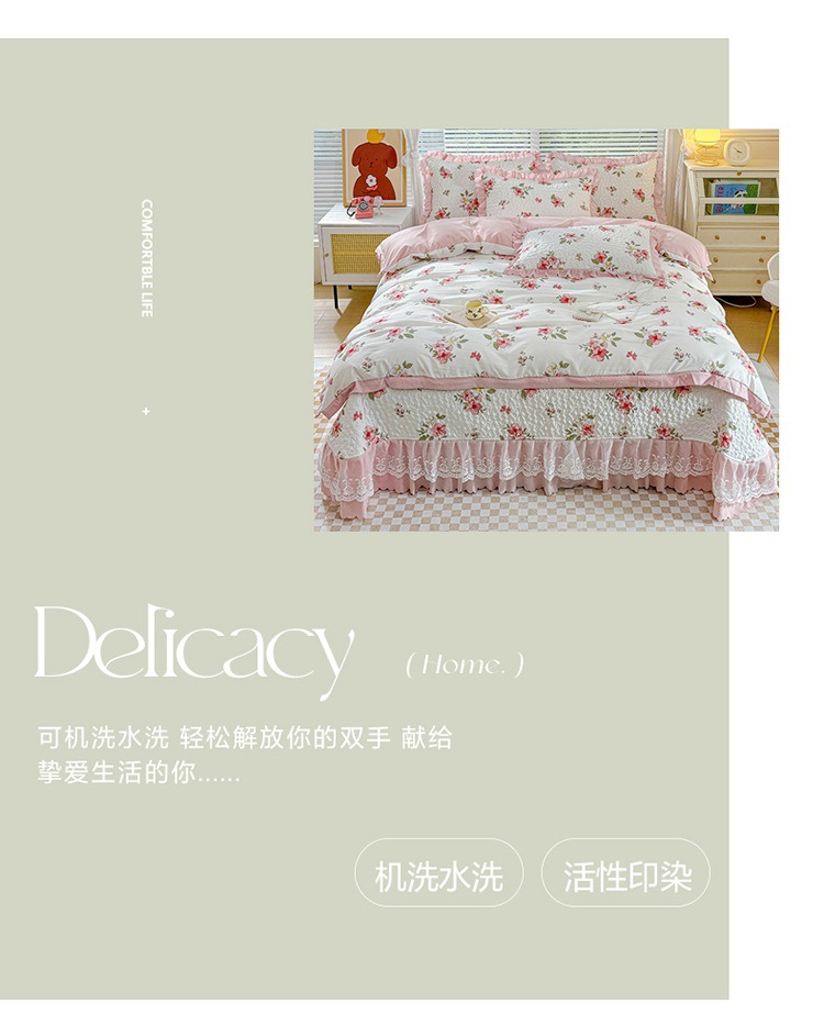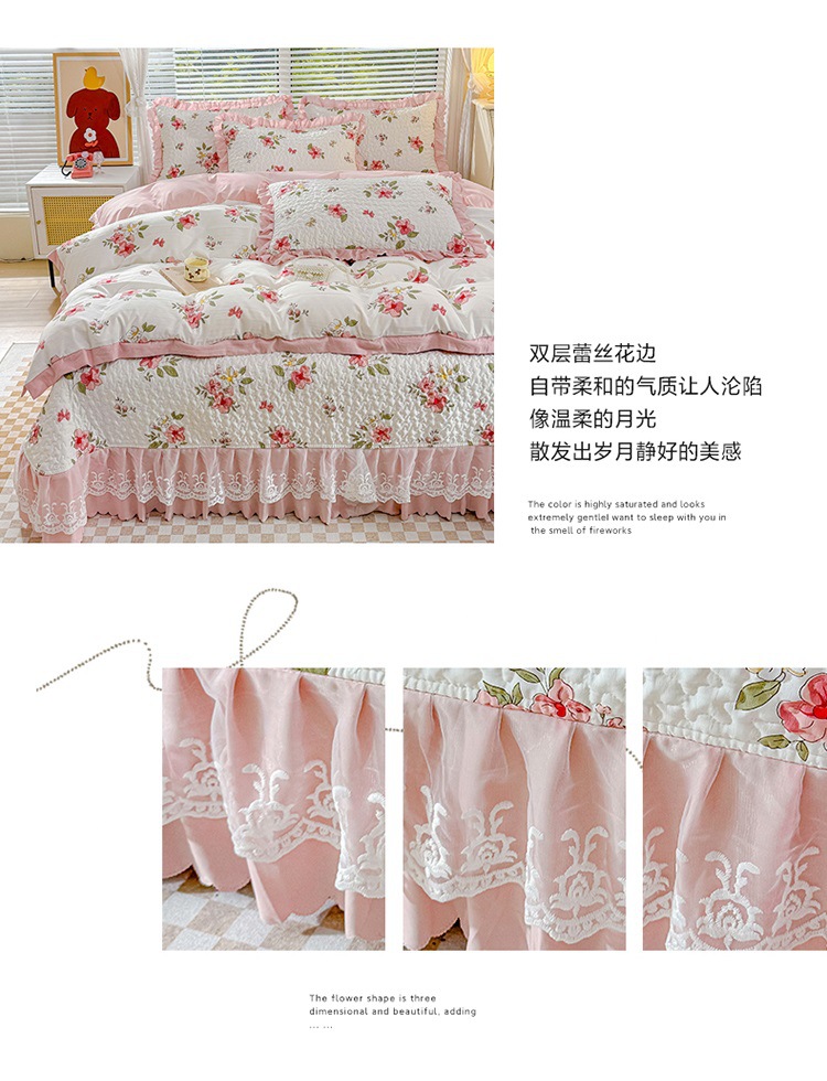 (종합) Baishite 202 더블 레이어 원사 세척 면 및 린넨 침대 커버 4 피스 세트 면 인쇄 레이스 침대 커버스토어 가기