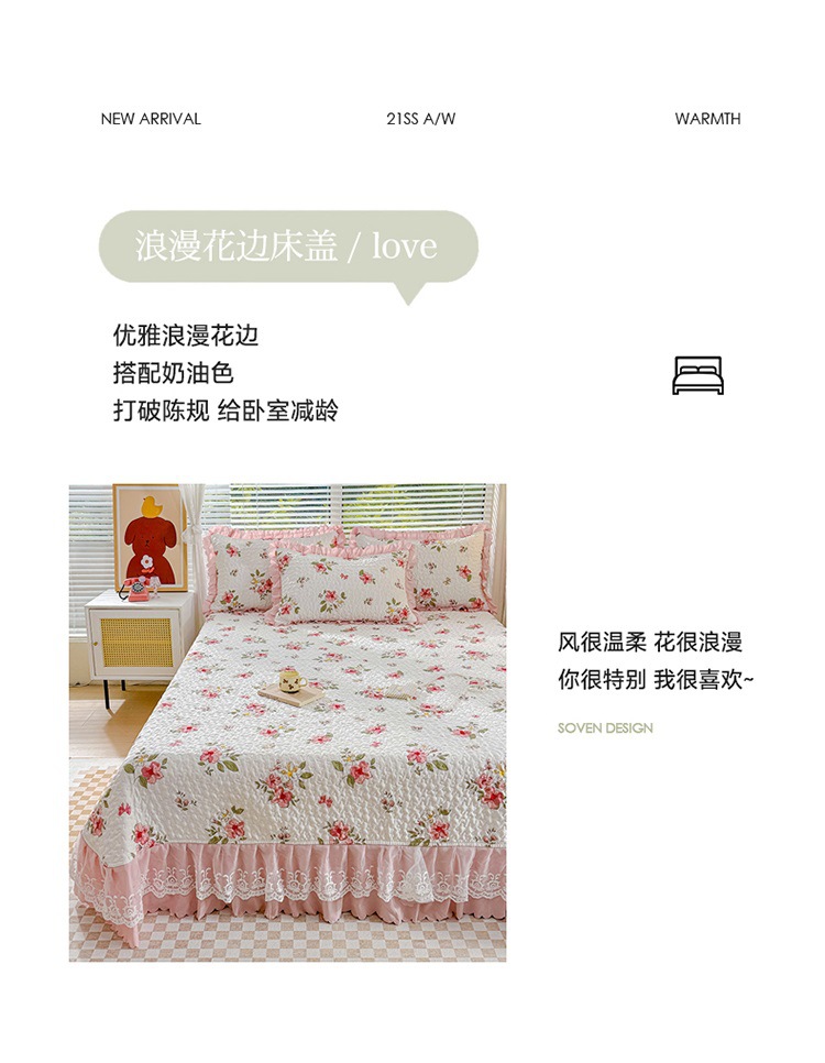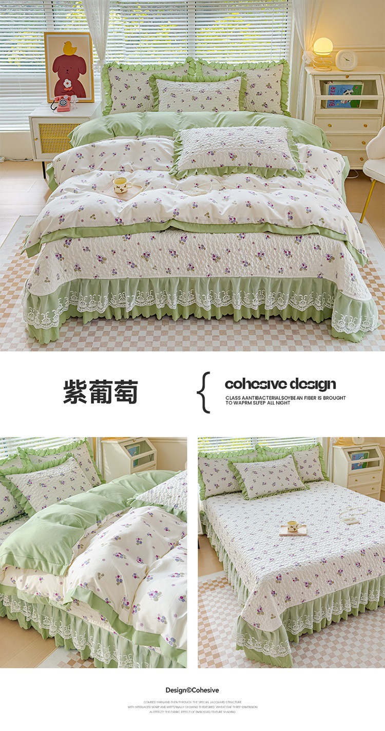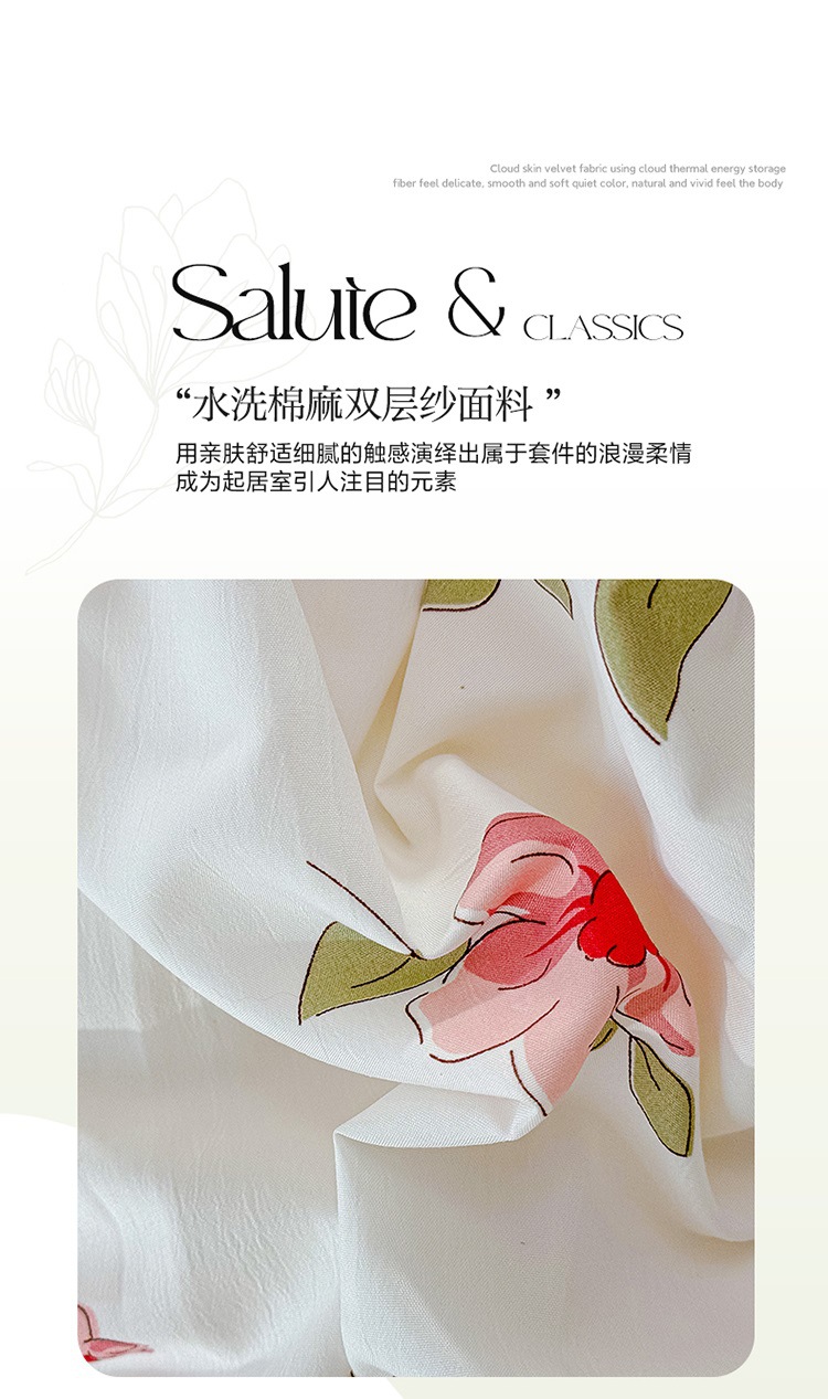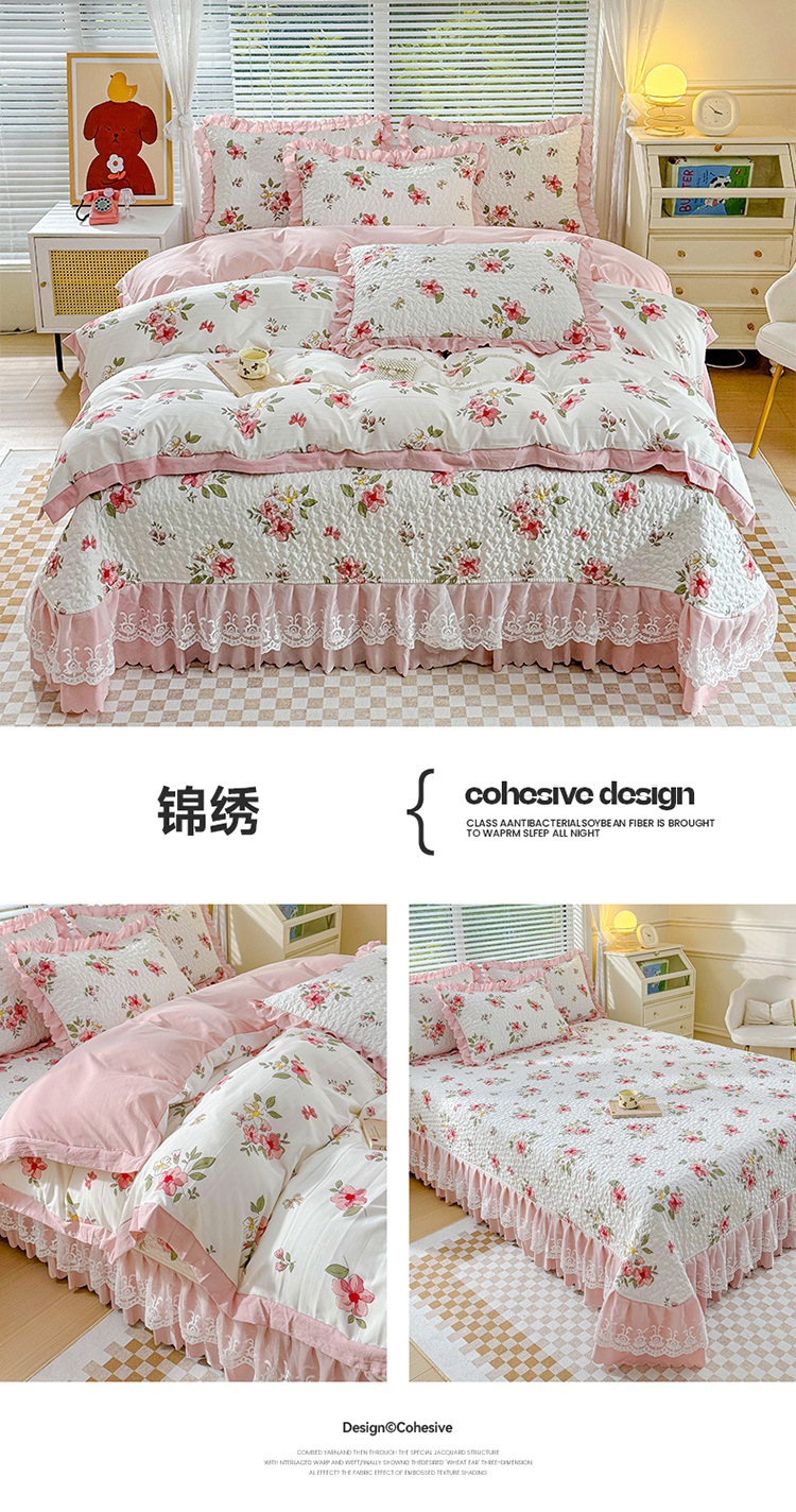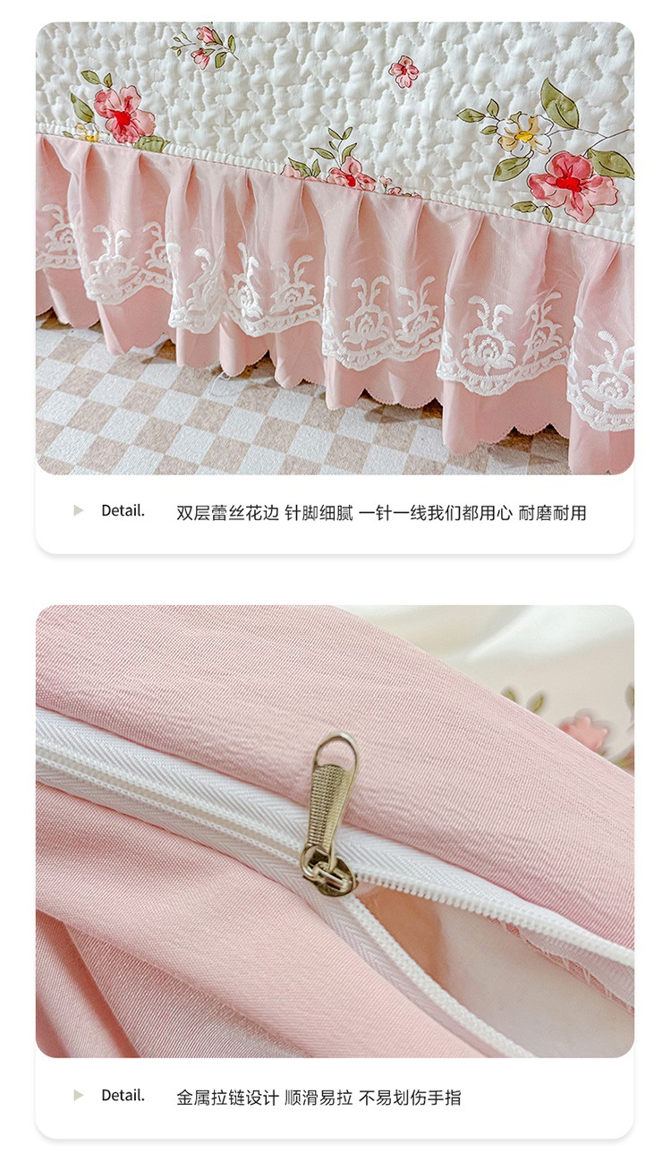 (종합) Baishite 202 더블 레이어 원사 세척 면 및 린넨 침대 커버 4 피스 세트 면 인쇄 레이스 침대 커버스토어 가기