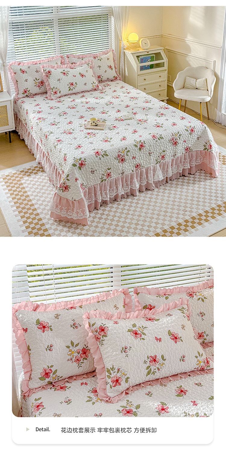 2025형 이중 거즈 워시드 코튼 린넨 침대 커버 4종 세트, 누빔 프린트 레이스 침대 커버스토어 가기