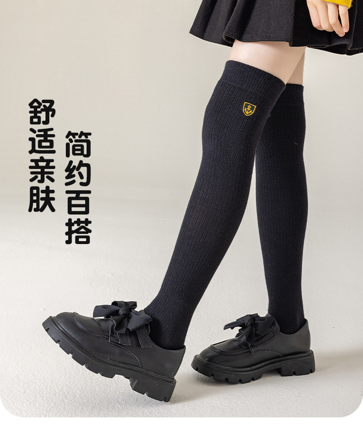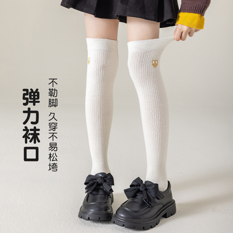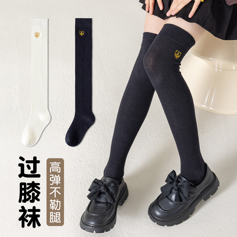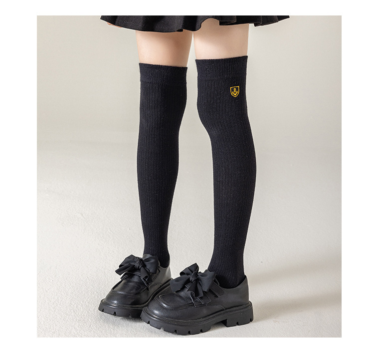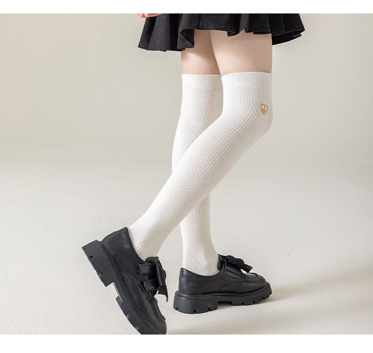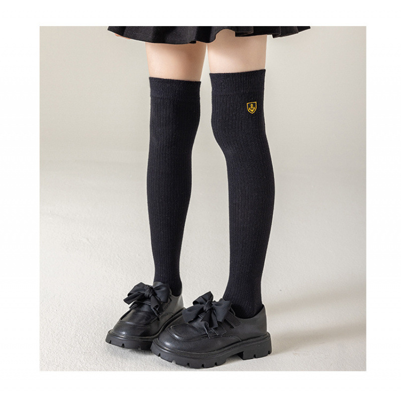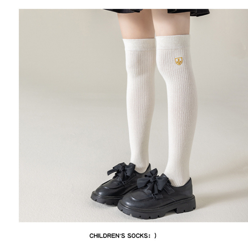 어린이 무릎 양말 봄과 가을 자수 스타킹 영어 스타일의 높은 높이 무릎 양말 초등학생을위한 흑백 양말