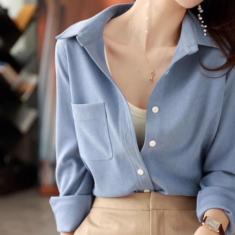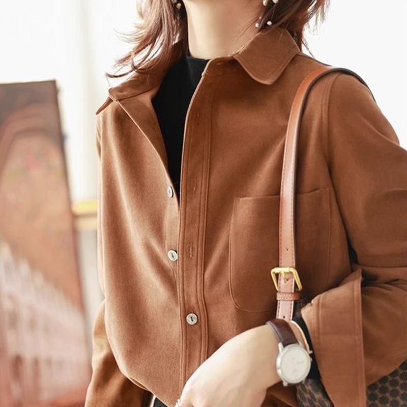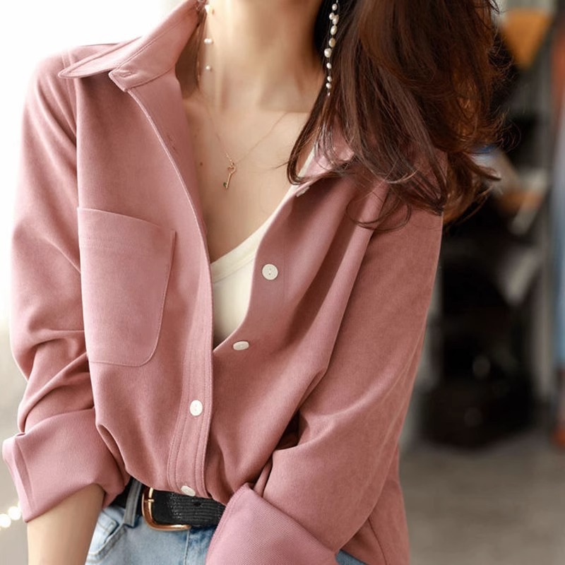슈퍼 아름다운 독특한 아름다운 상단 접힌 셔츠 디자인 감각 틈새 코듀로이 긴 소매 셔츠 트렌디 한 여성 A3135