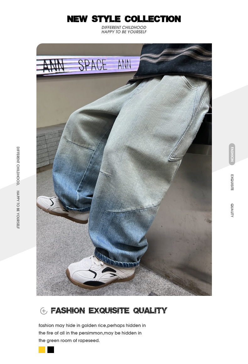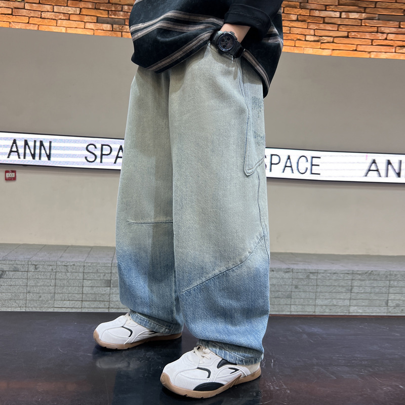 소년의 그라디언트 컬러 청바지 2025 봄 새로운 도착 소년 바지 어린이 봄과 가을 느슨한 스트레이트 바지