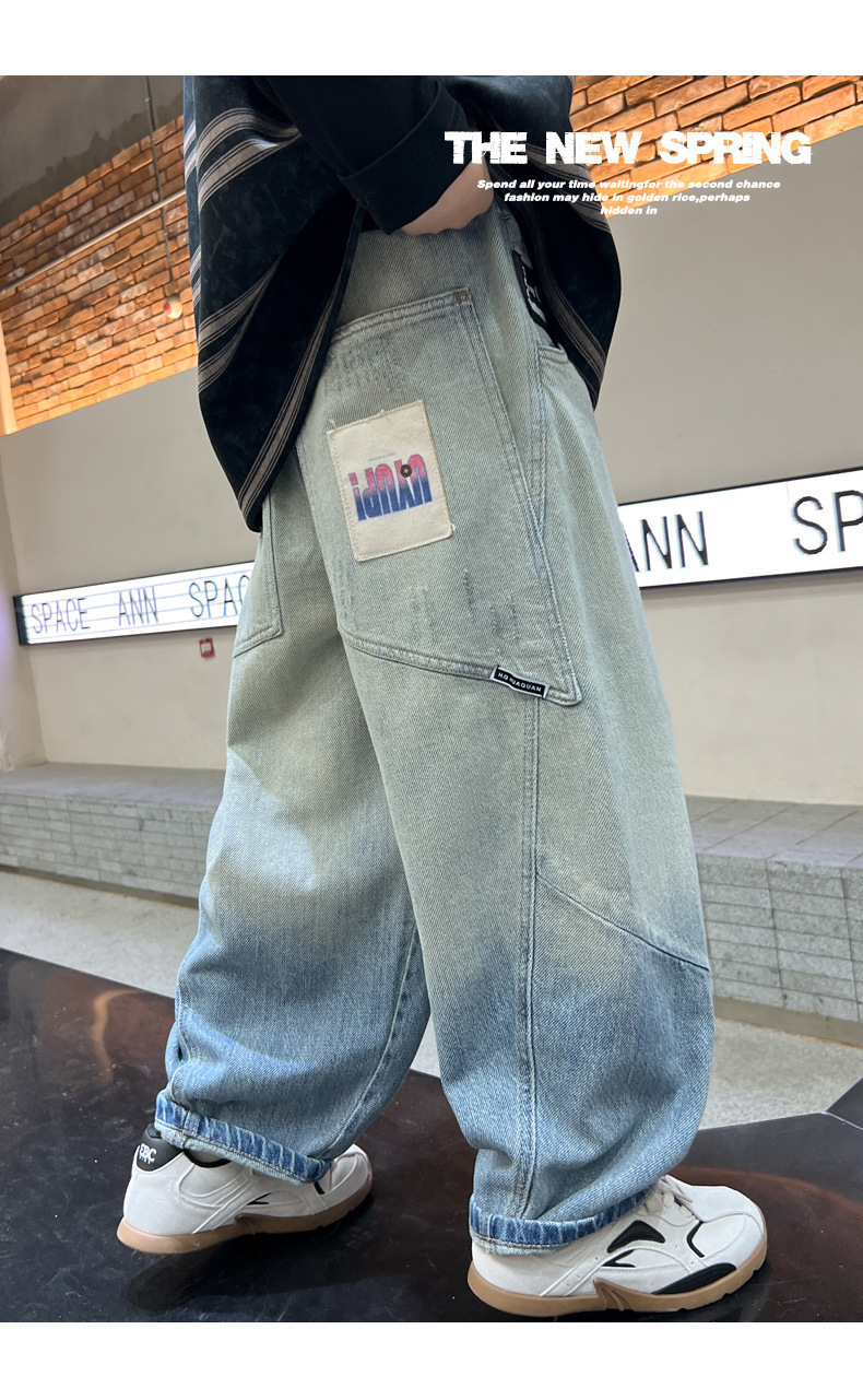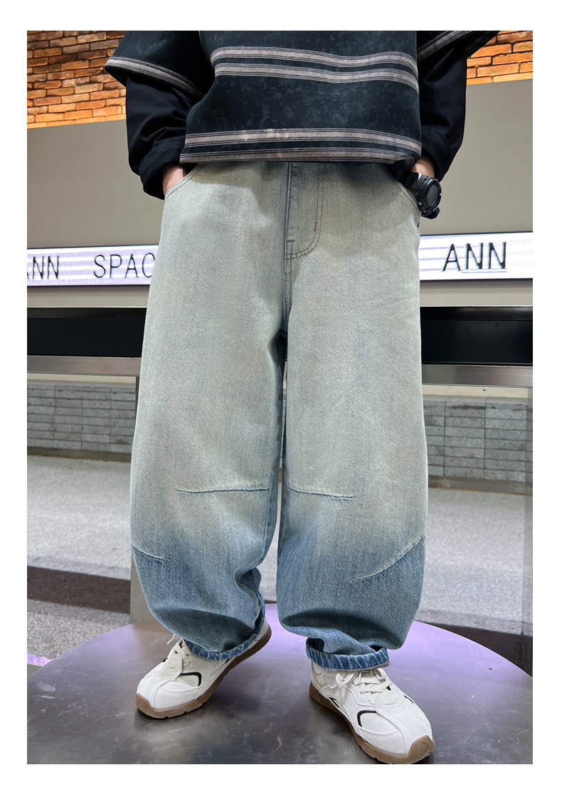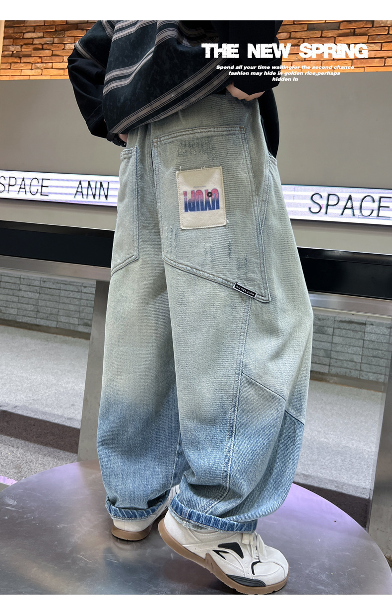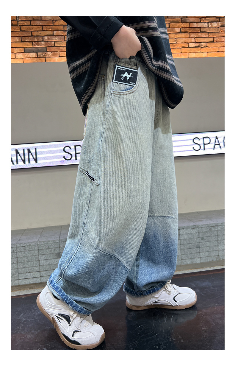 소년의 그라디언트 컬러 청바지 2025 봄 새로운 도착 소년 바지 어린이 봄과 가을 느슨한 스트레이트 바지스토어 가기