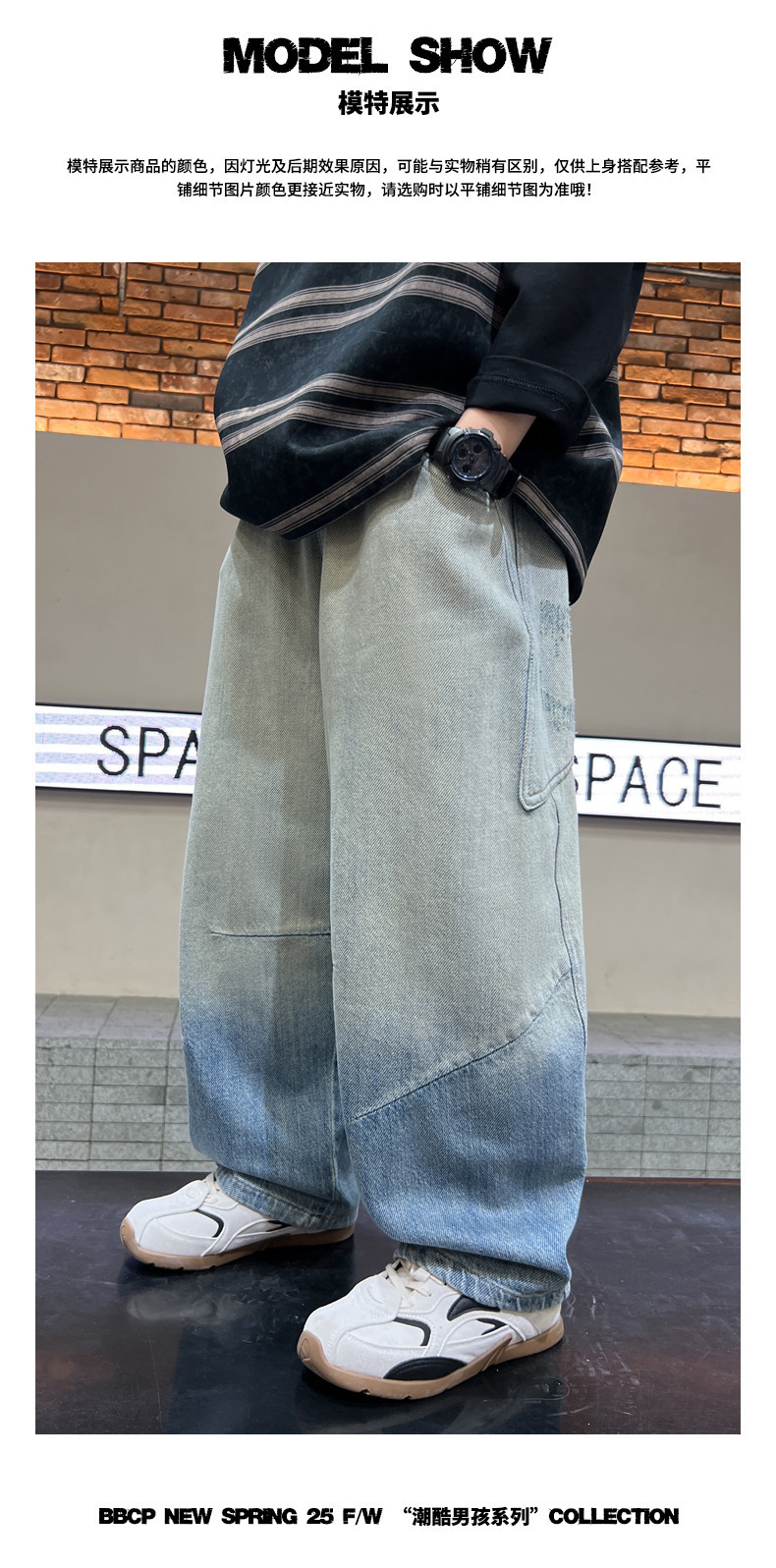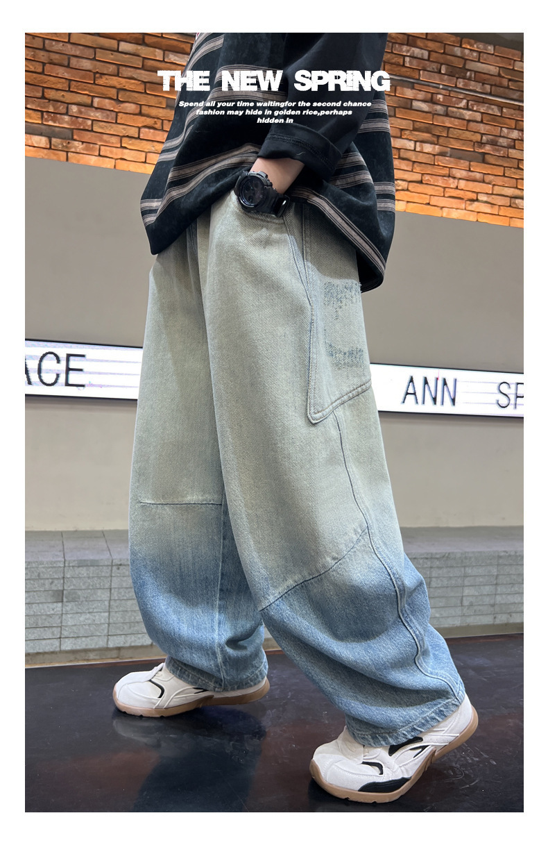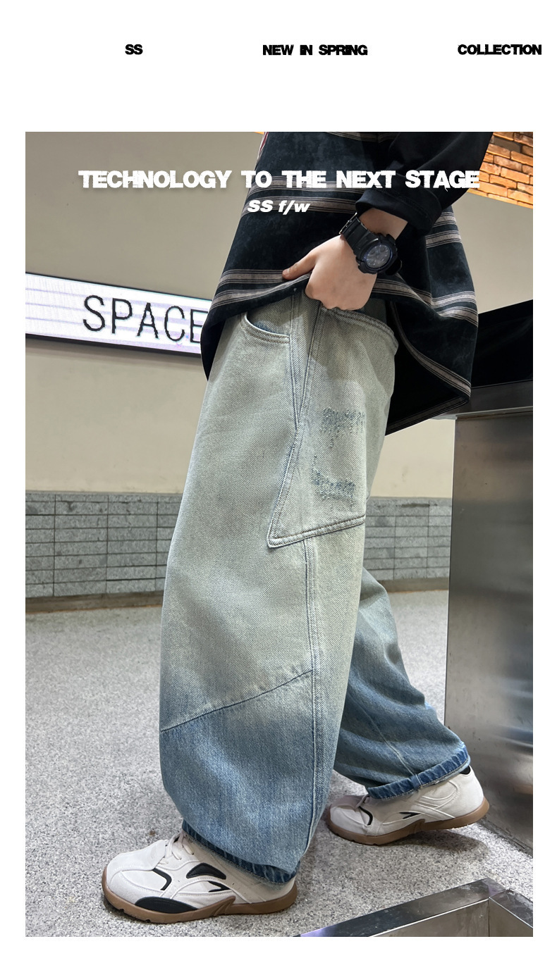 소년의 그라디언트 컬러 청바지 2025 봄 새로운 도착 소년 바지 어린이 봄과 가을 느슨한 스트레이트 바지스토어 가기