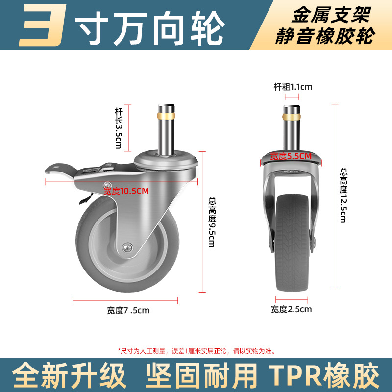 • 3inch 다이닝 카트 브레이크 고무 범용 휠