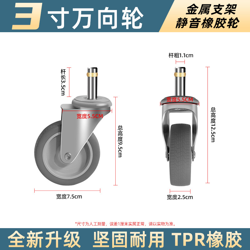 3 인치 4 인치 다이닝 휠 무음 휠 브레이크 휠 호텔 3 층 카트 유니버설 휠 서클 클립 고무 휠 캐스터