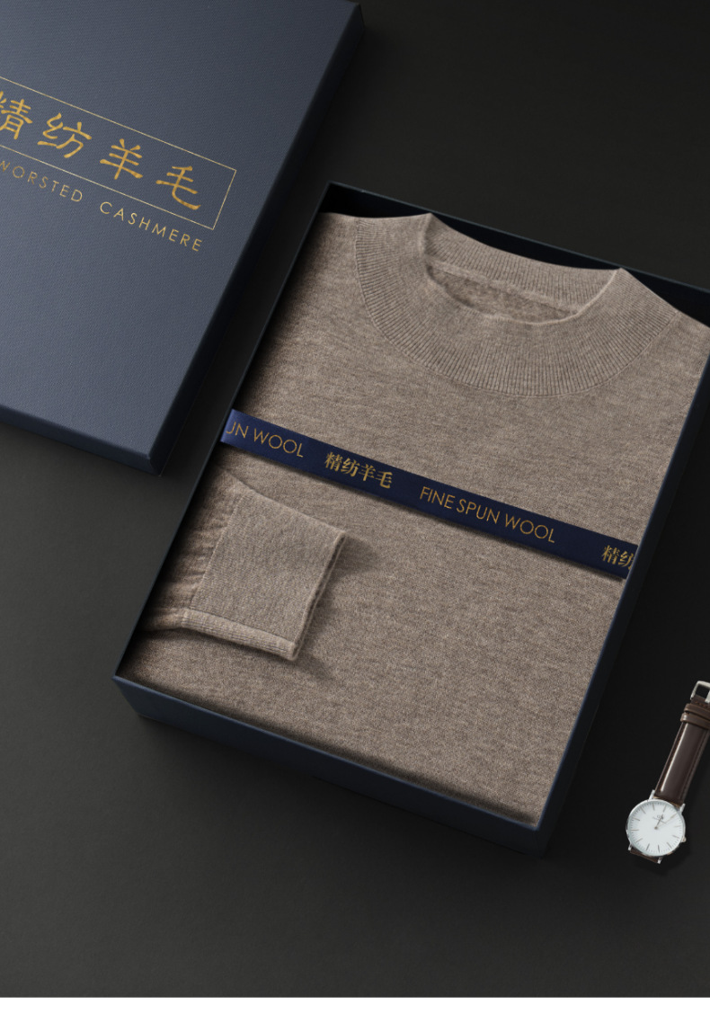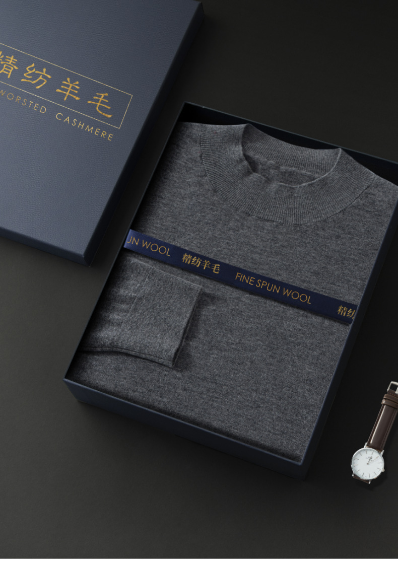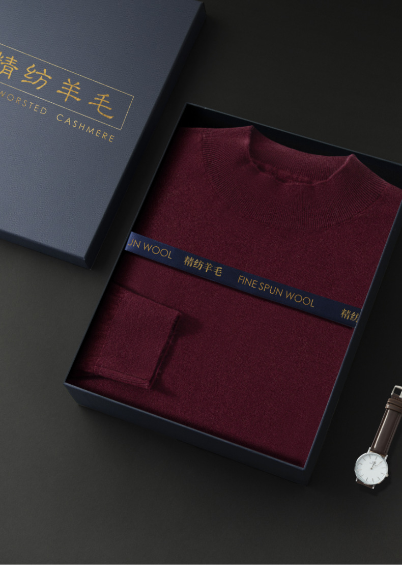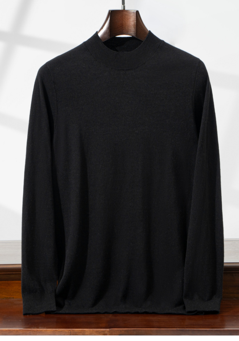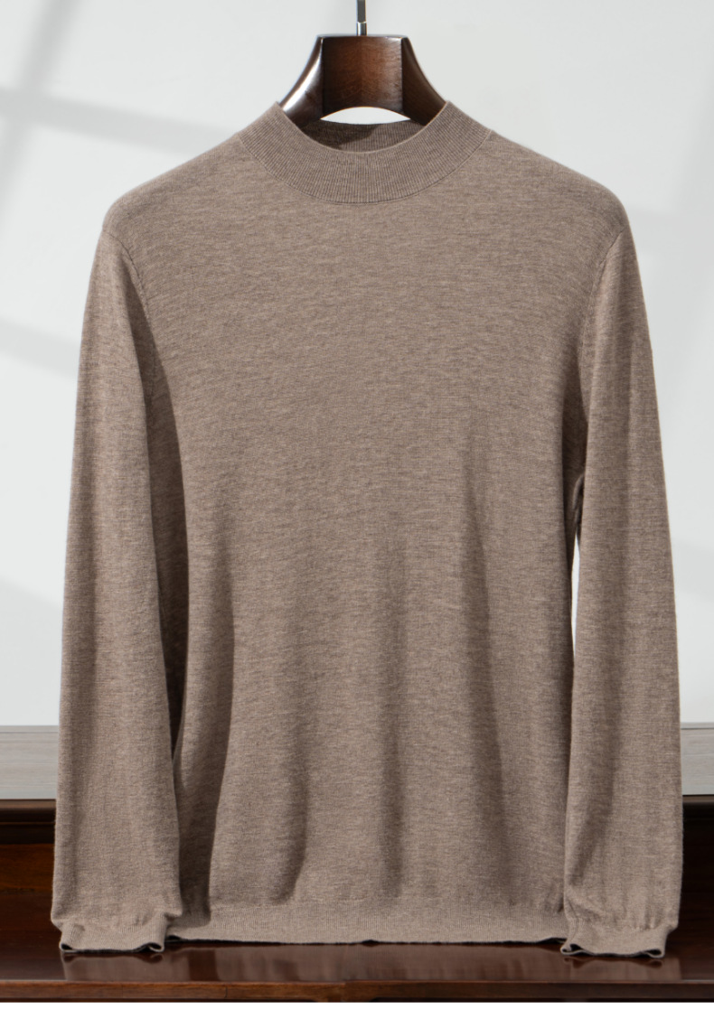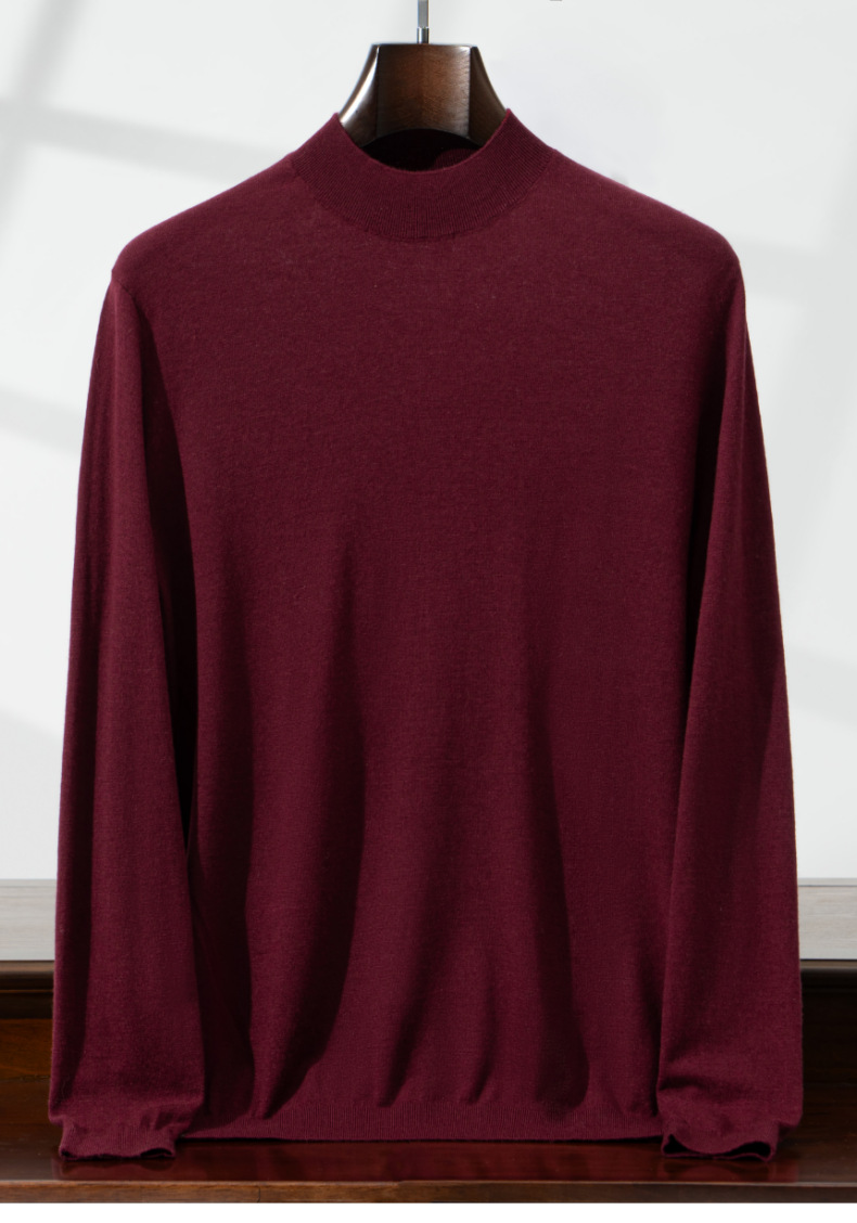 봄과 가을 새로운 남성 모의 높은 칼라 순수 양모 니트웨어 비즈니스 캐주얼 풀오버 솔리드 컬러 스웨터 루즈베이스 셔츠
