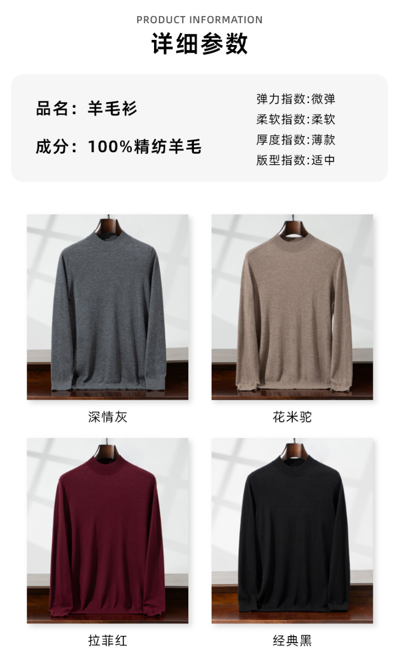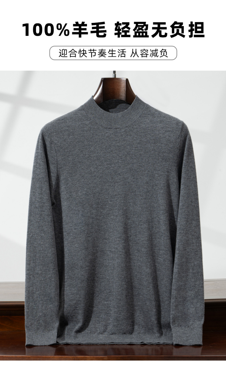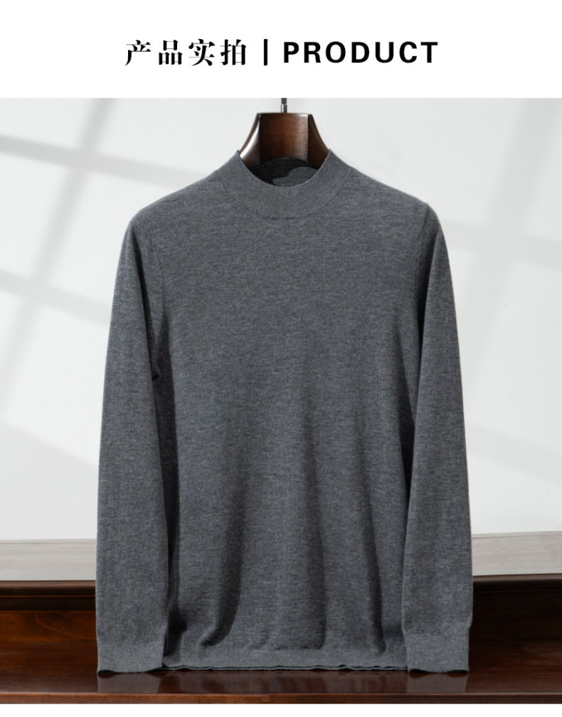 봄과 가을 새로운 남성 모의 높은 칼라 순수 양모 니트웨어 비즈니스 캐주얼 풀오버 솔리드 컬러 스웨터 루즈베이스 셔츠스토어 가기