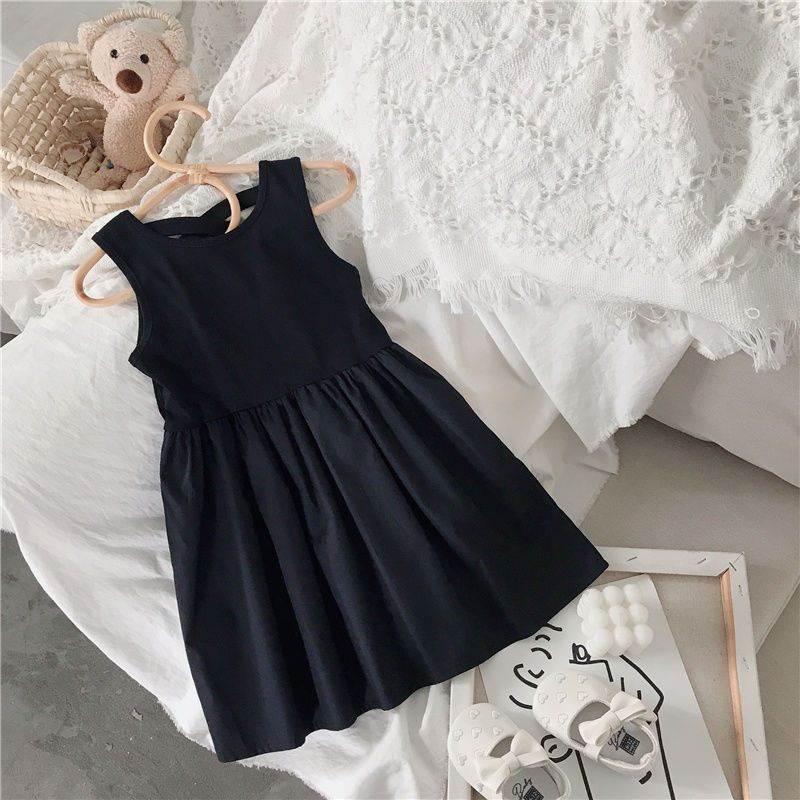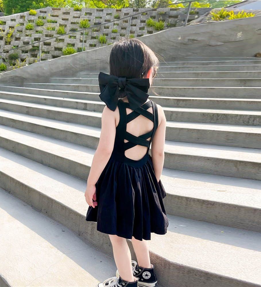 여자 여름 원피스 원피스 아기 세련된 어린이 맞춤형 유행 브랜드 한국 스타일 유행 블랙 백리스 공주 조끼 원피스스토어 가기