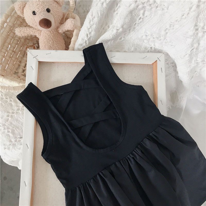 여자 여름 원피스 원피스 아기 세련된 어린이 맞춤형 유행 브랜드 한국 스타일 유행 블랙 백리스 공주 조끼 원피스