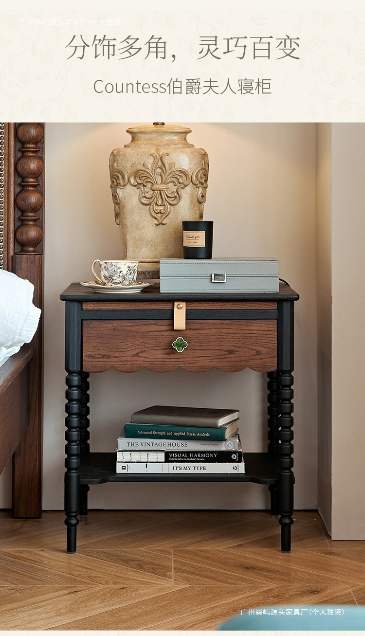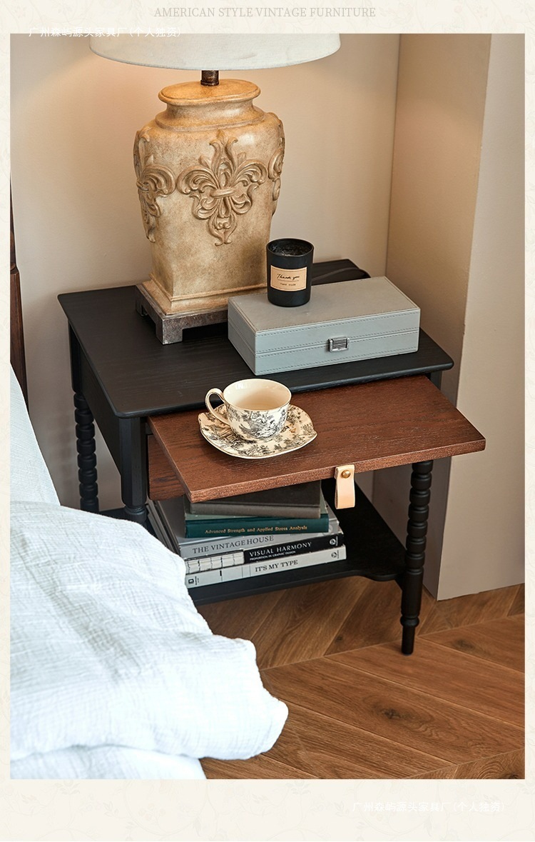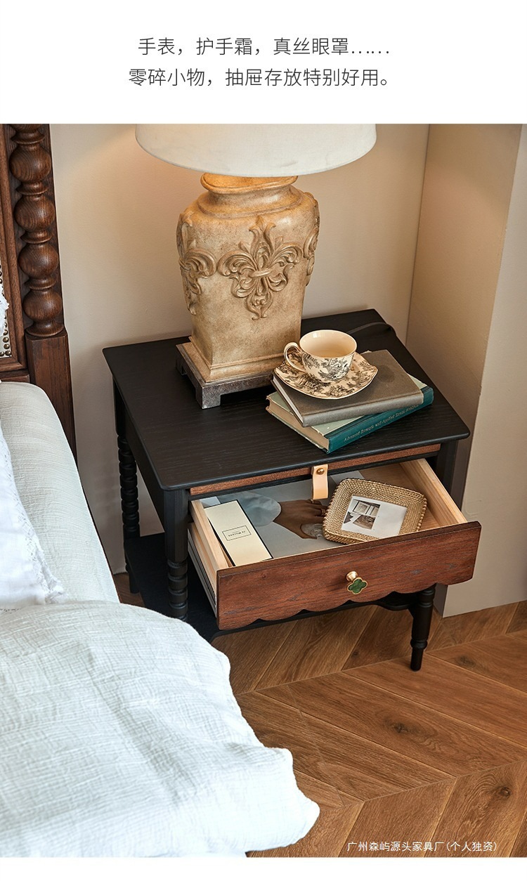 2025 새로운 프랑스 복고풍 거실 사이드 테이블 소파 코너 테이블 미국 단단한 나무 침대 옆 테이블 전체 단단한 나무 북미 도매스토어 가기