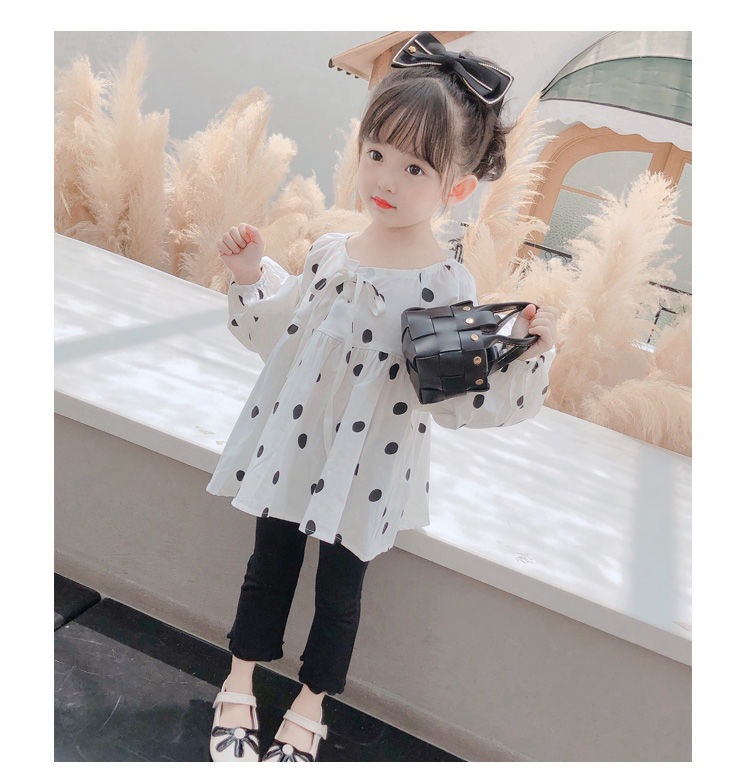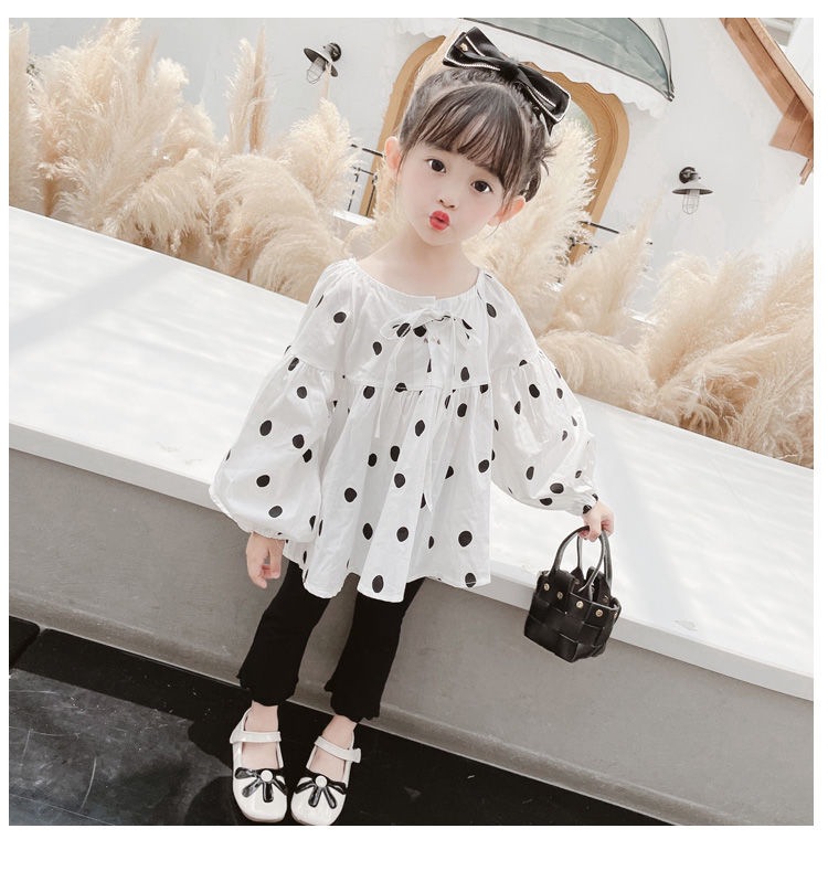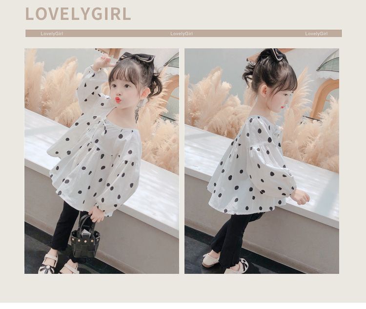 봄과 가을 여성 아동복 셔츠 아기의 서양식 어린이 맞춤형 트렌디 브랜드 한국 스타일 스위트 웨이브 닷 화이트 퍼프 슬리브 셔츠