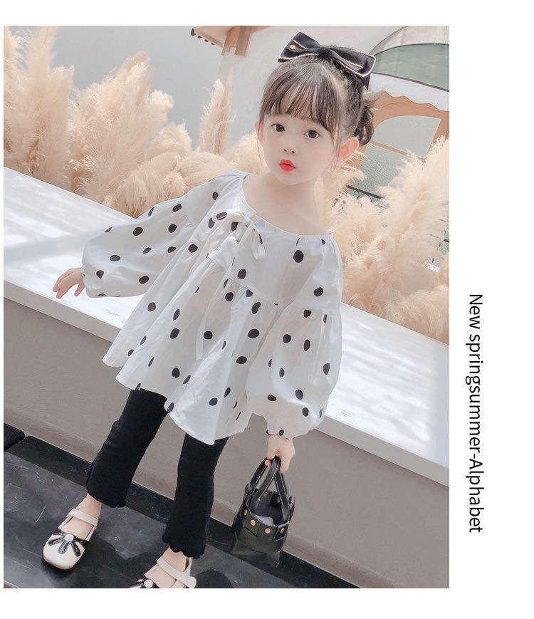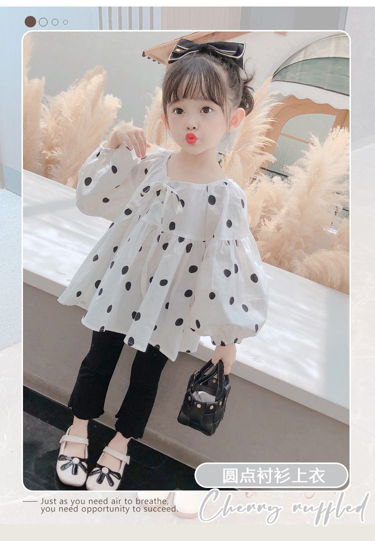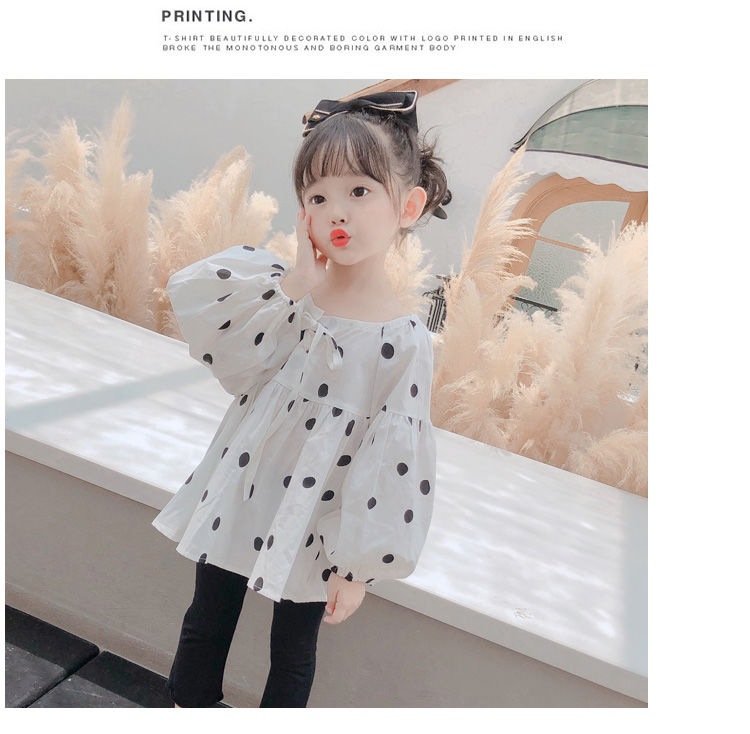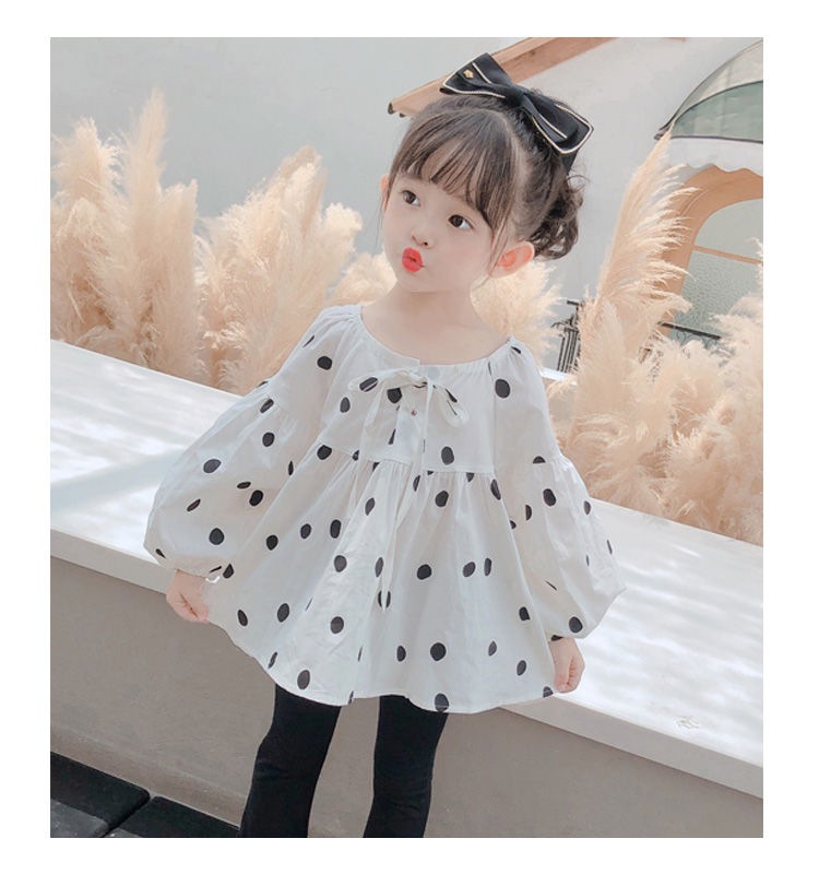 봄과 가을 여성 아동복 셔츠 아기의 서양식 어린이 맞춤형 트렌디 브랜드 한국 스타일 스위트 웨이브 닷 화이트 퍼프 슬리브 셔츠스토어 가기